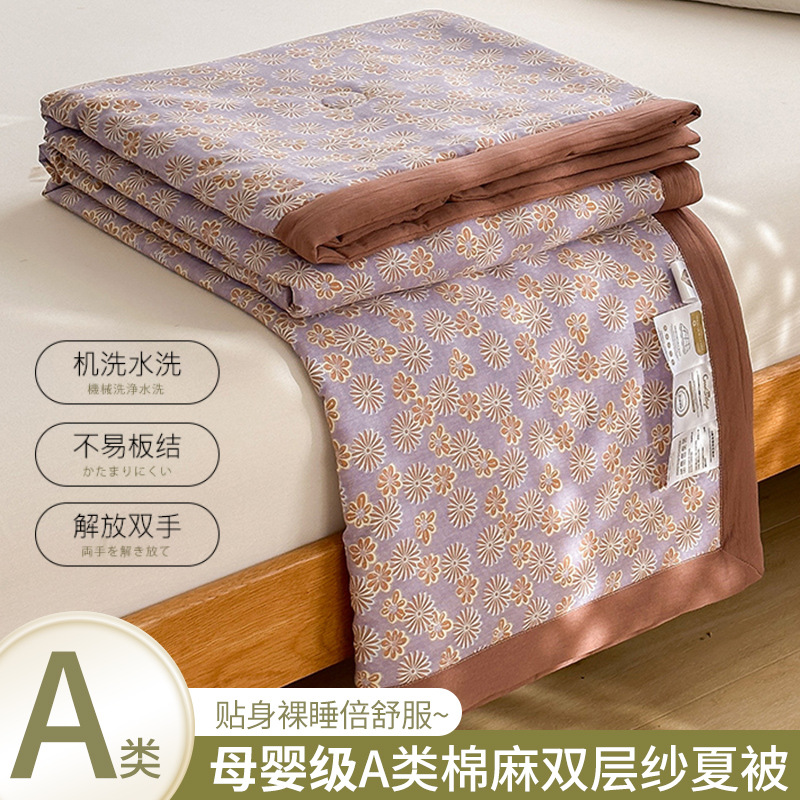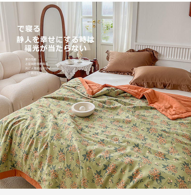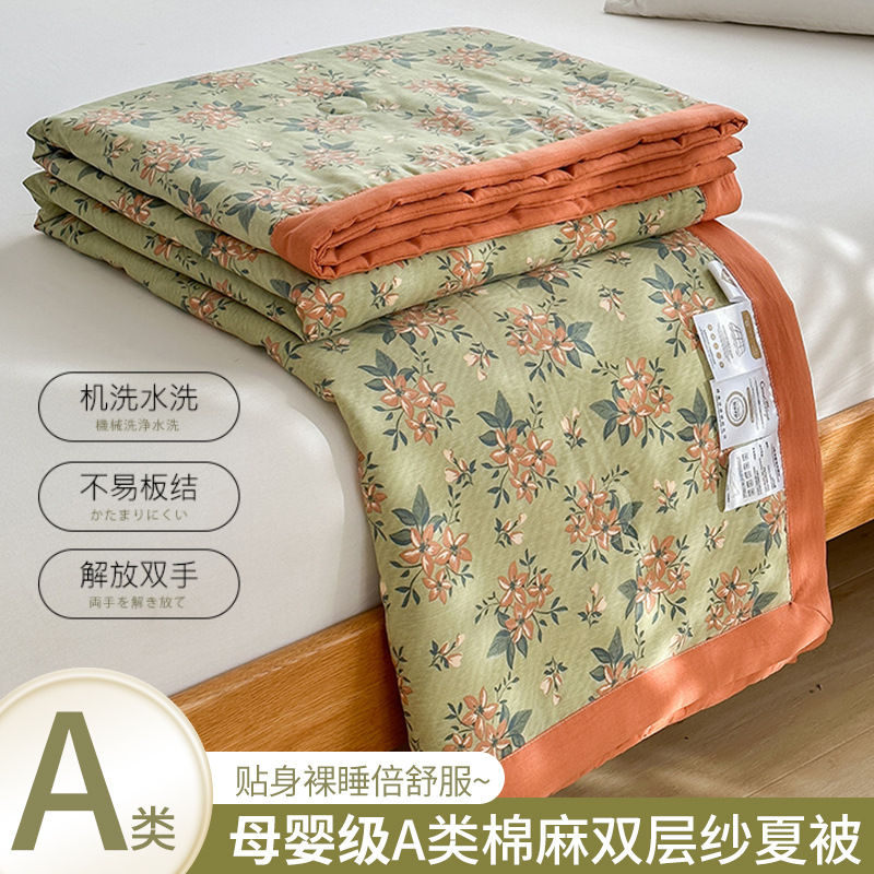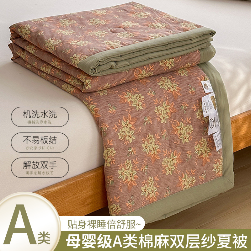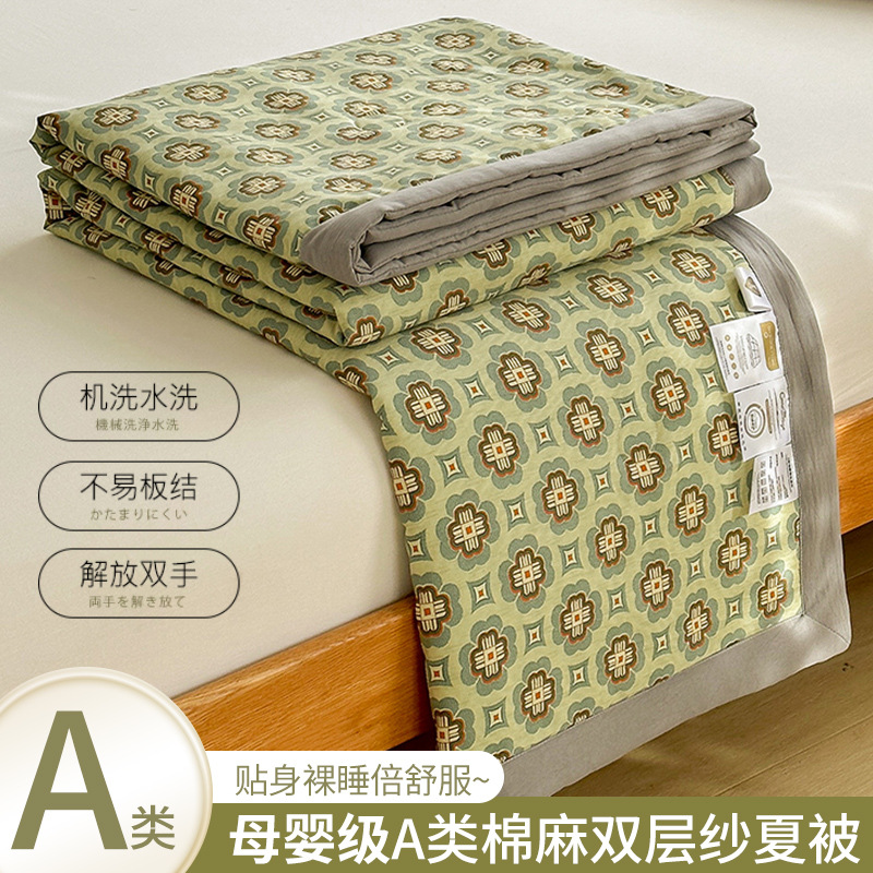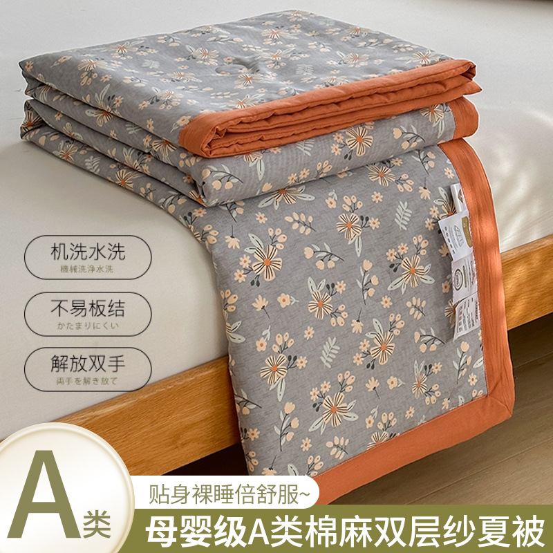 일본식 면 및 린넨 더블 레이어 거즈 여름 이불 여름 시원한 이불 싱글 더블 기계 세탁 가능한 에어컨 이불 여름 얇은 이불 도매스토어 가기