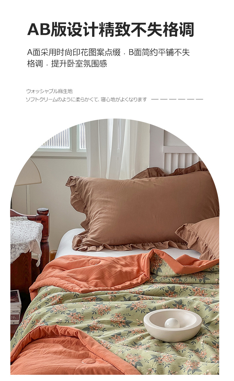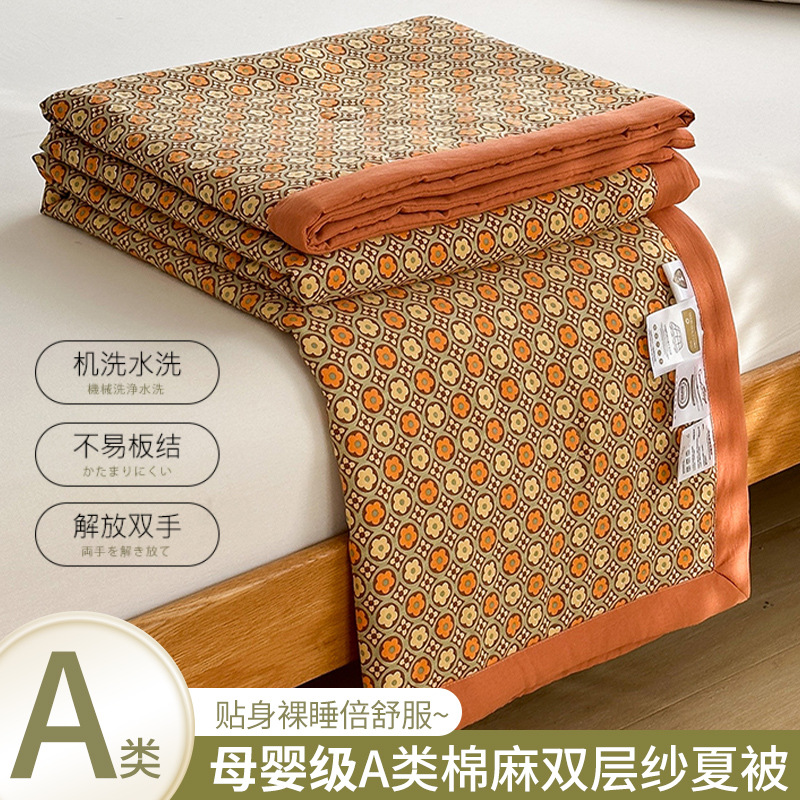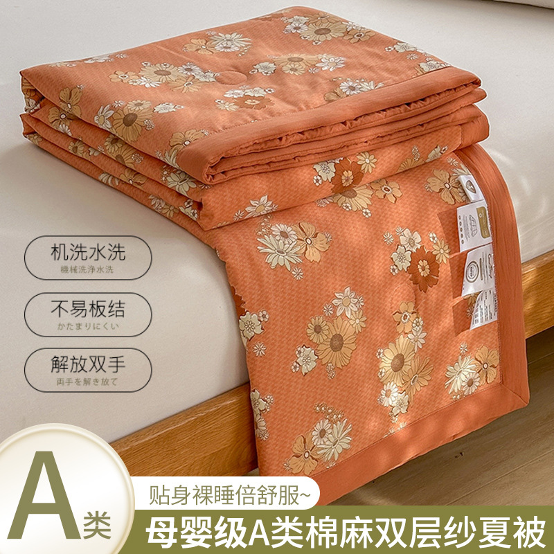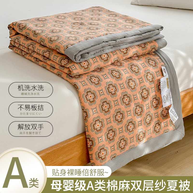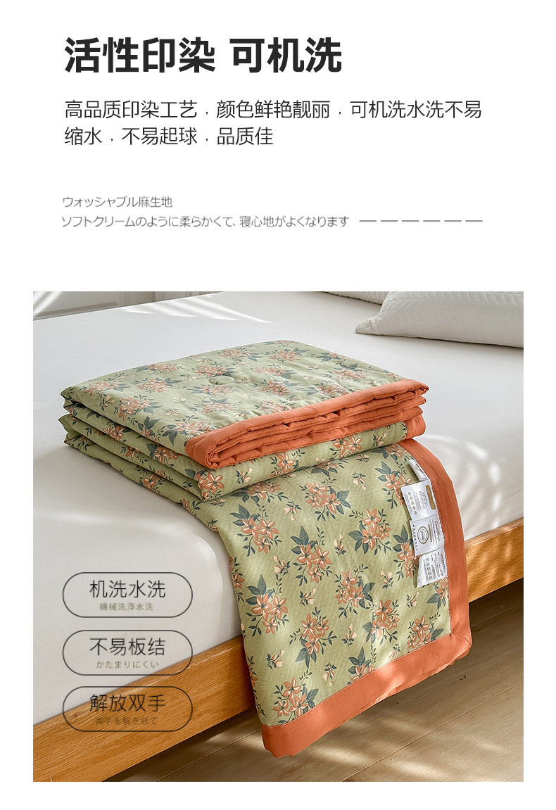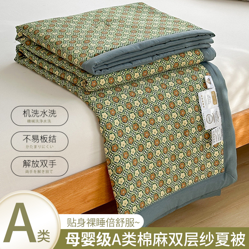 일본식 면 및 린넨 더블 레이어 거즈 여름 이불 여름 시원한 이불 싱글 더블 기계 세탁 가능한 에어컨 이불 여름 얇은 이불 도매스토어 가기
