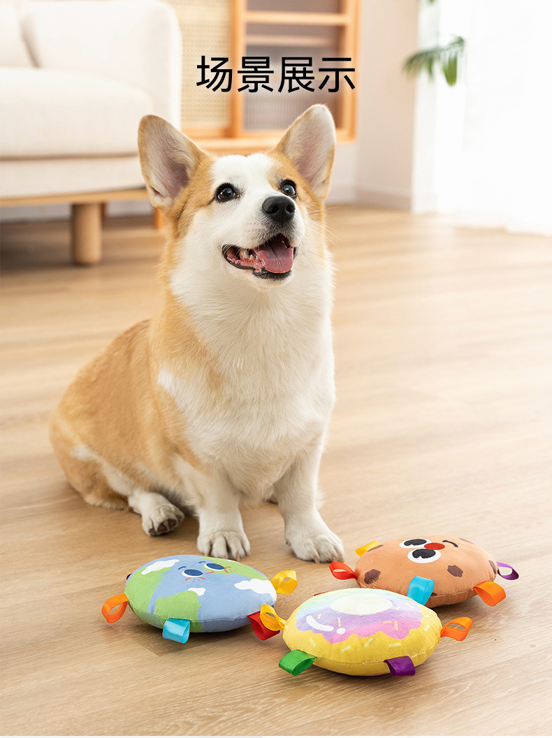 애완 동물 벨 사운드 장난감 만화 봉제 프리스비 작은 개 홈 대화 형 훈련 애완 동물 장난감 용품