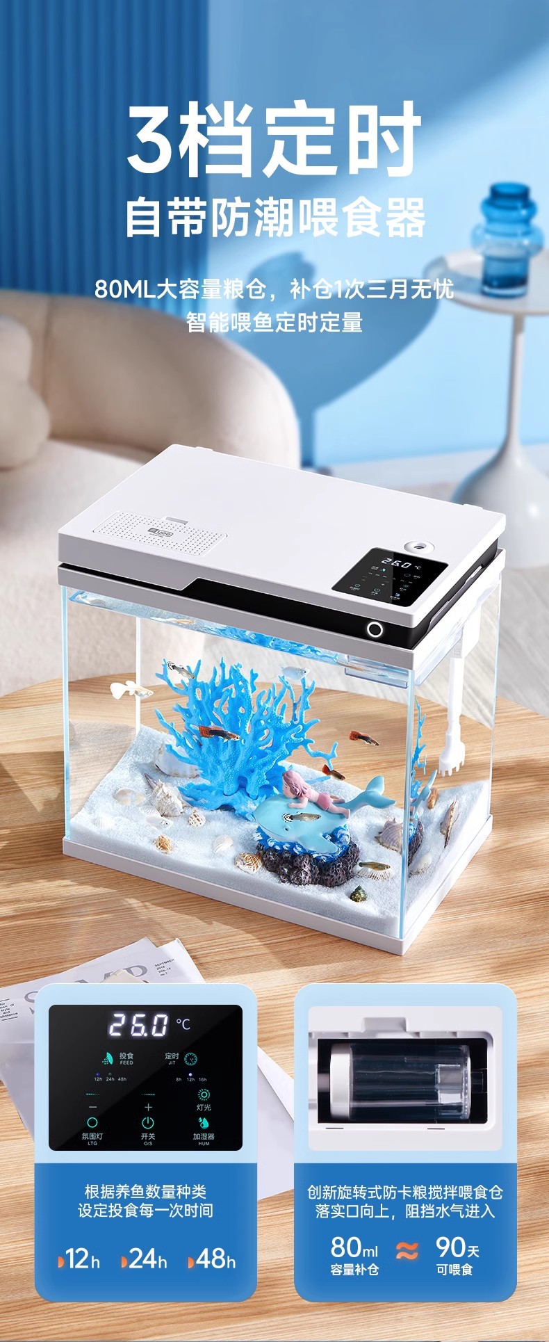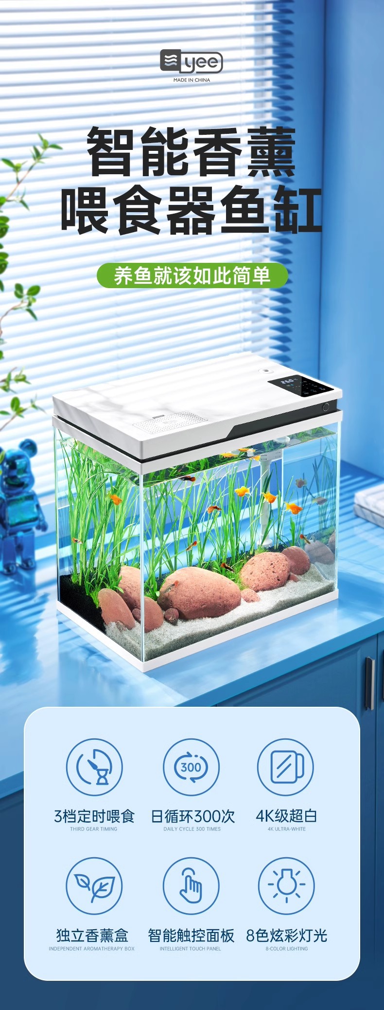 이지 스마트 데스크탑 어항 소형 거실용 데스크탑 초백유리 수족관 물갈이 필요 없는 생태 어항