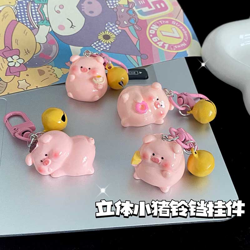 3 차원 귀여운 돼지 벨 키 체인 핑크 소녀 심장 학생 여자 친구 생일 선물 만화 Schoolbag 매달려 장식품