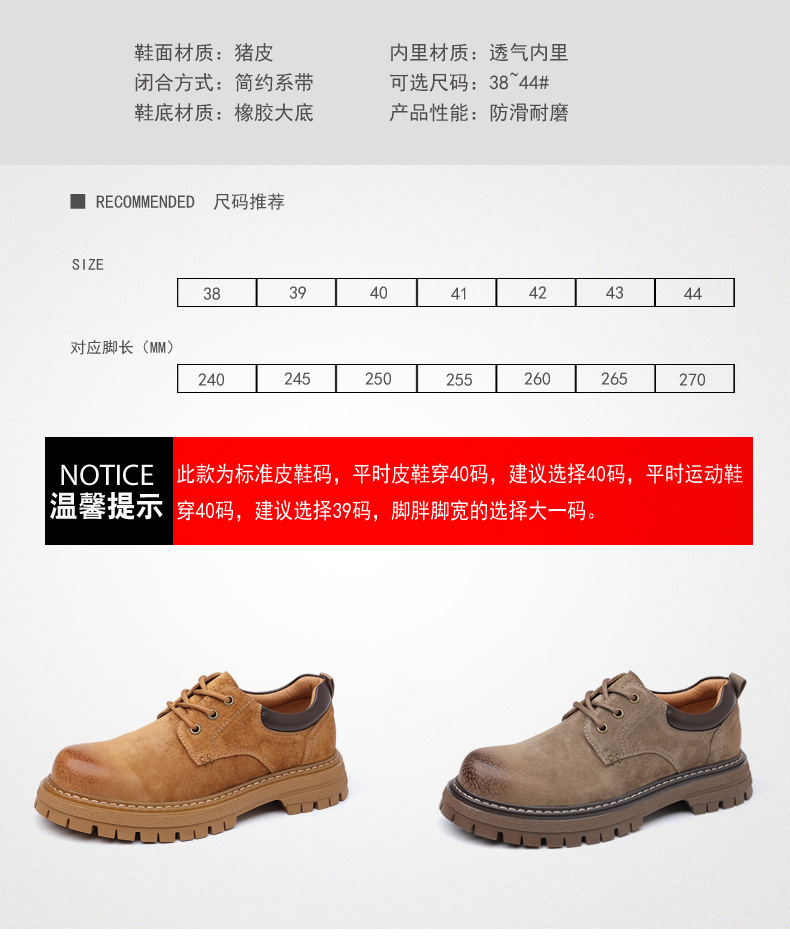 작업복 신발 남성 신발 돼지 통기성 캐주얼 신발 두꺼운 바닥 둥근 머리 편안한 조커 패션 신발 하이킹 신발 헤어 세대스토어 가기