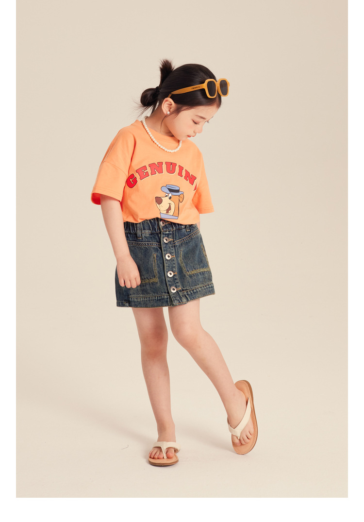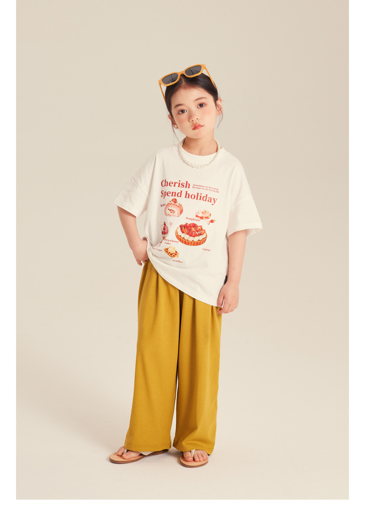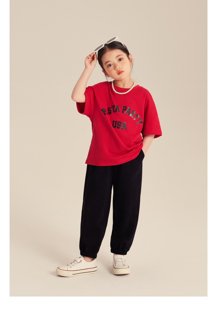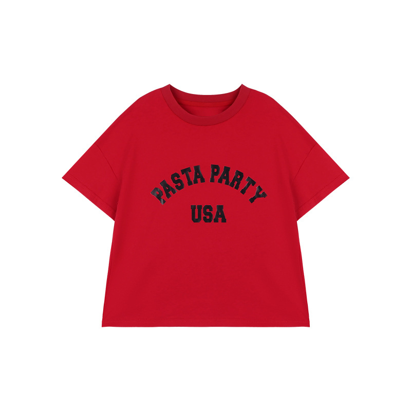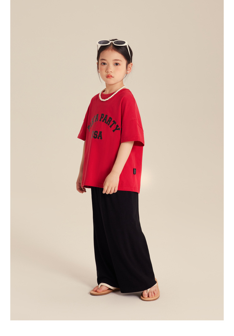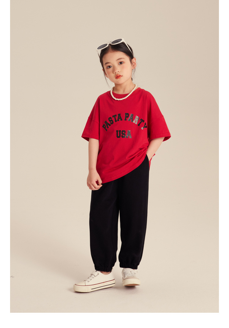 Amybaby 소녀 반팔 티셔츠 2024 새로운 어린이 봄과 여름 유행 편지 인쇄 탑스토어 가기