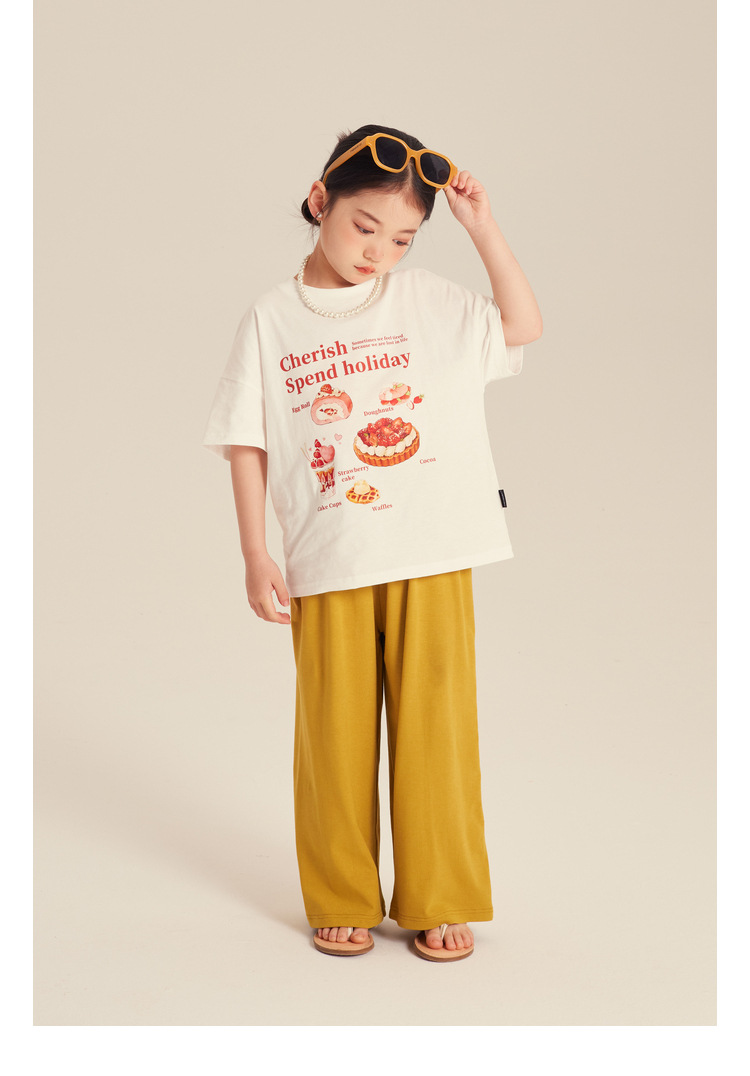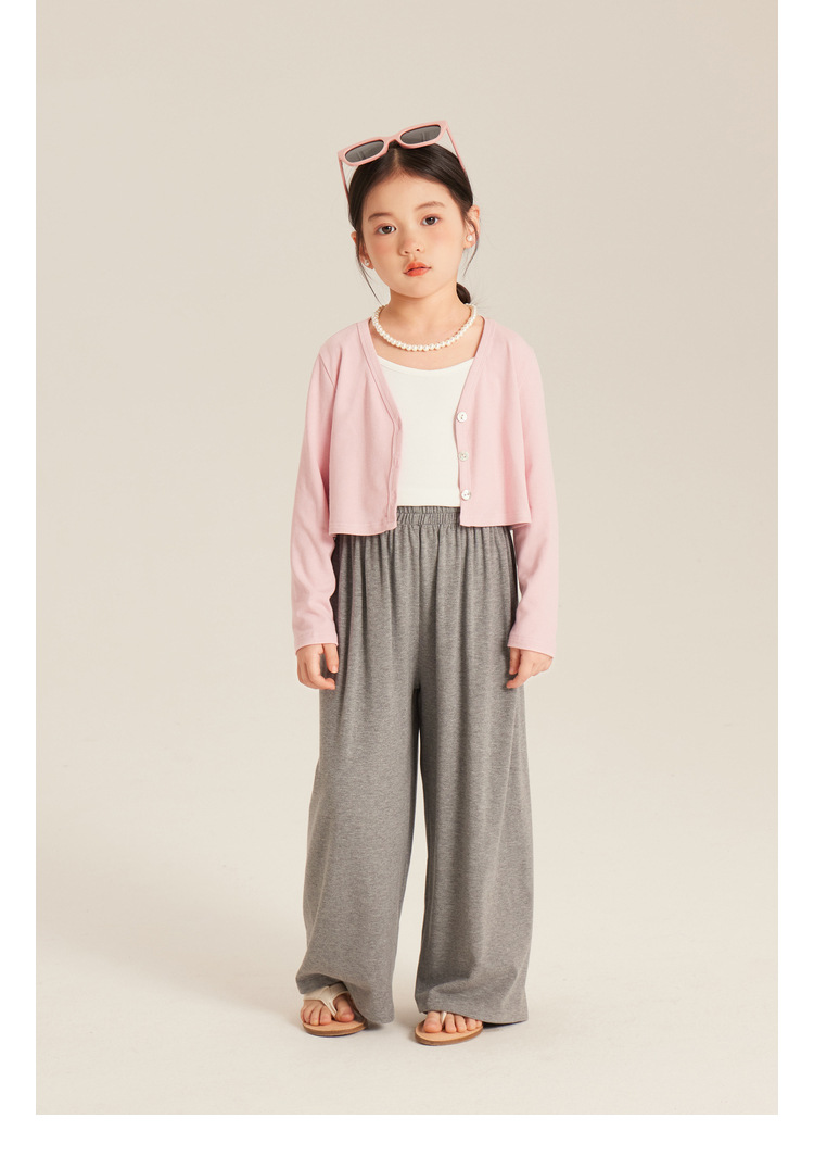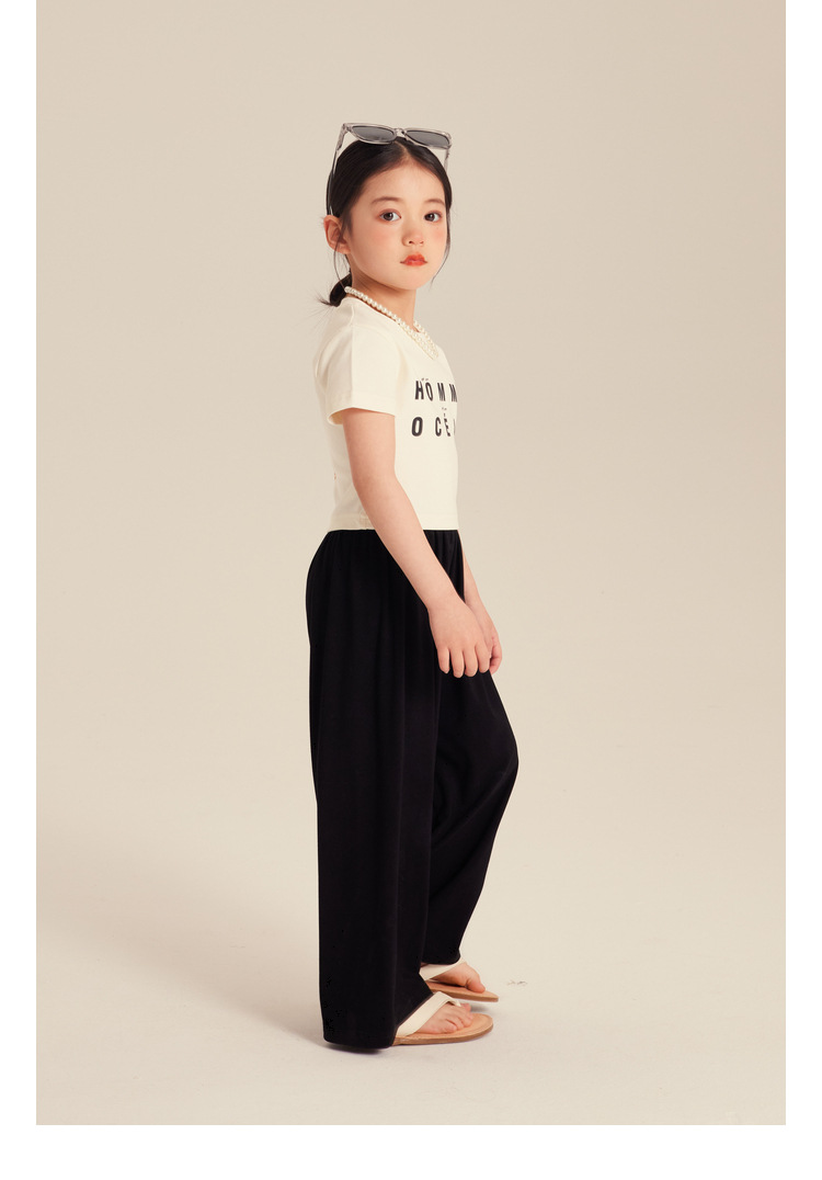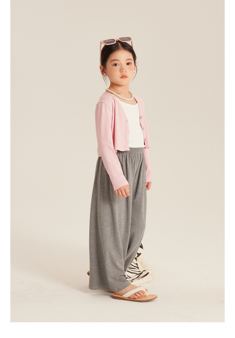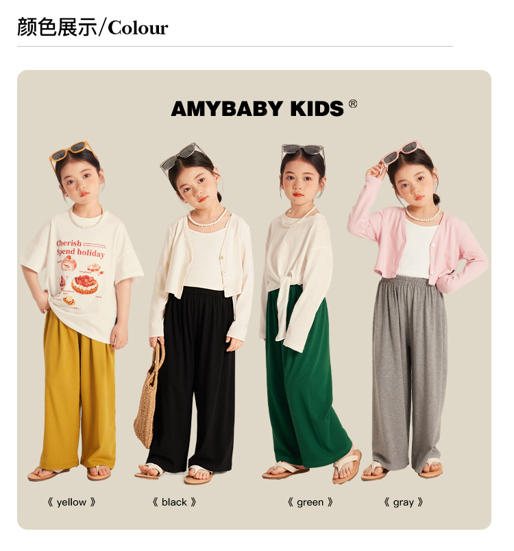 Amybaby 소녀의 넓은 다리 바지 2024 새로운 어린이 단색 간단한 봄과 여름 올 매치 느슨한 바지