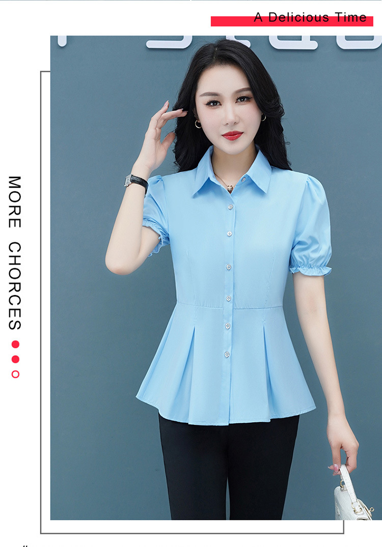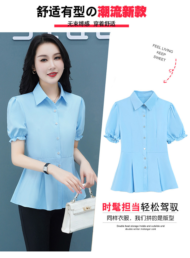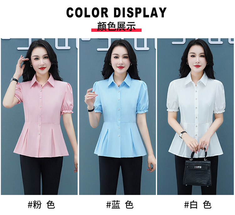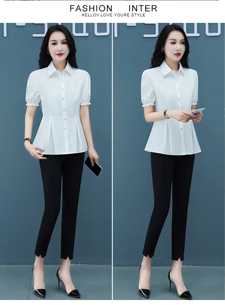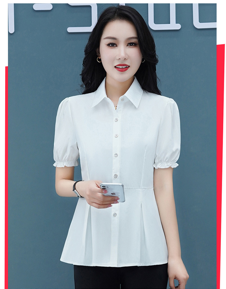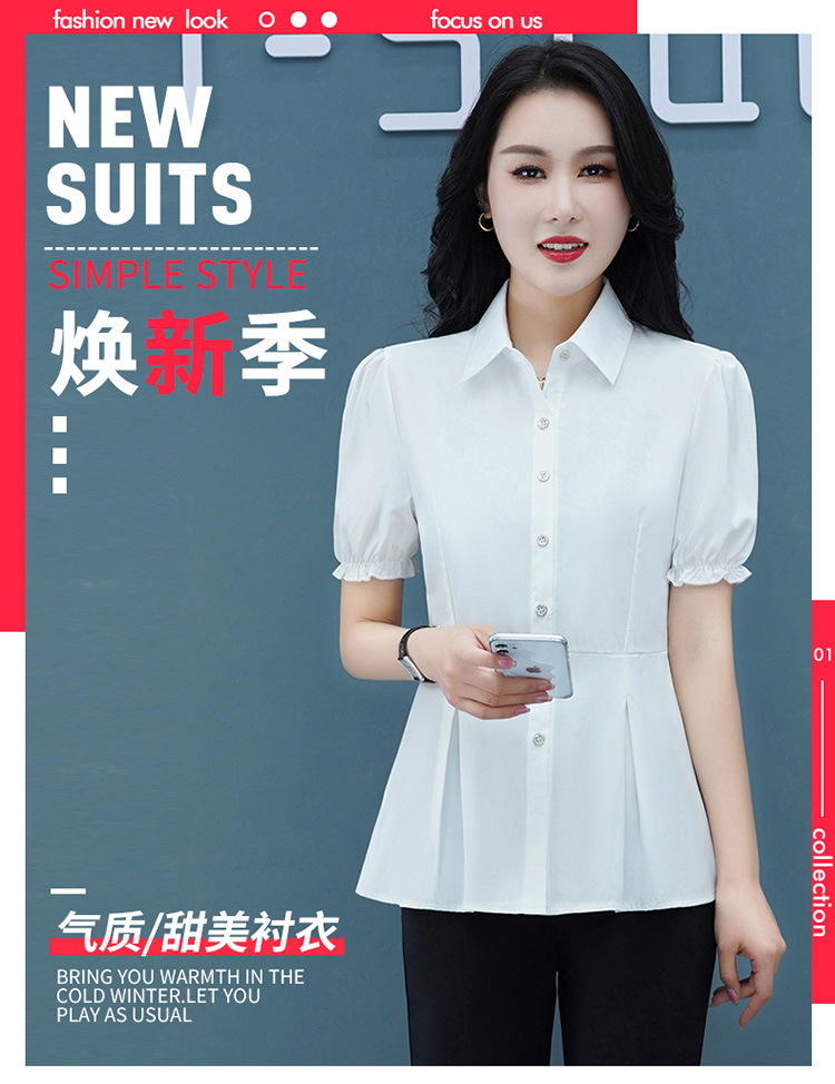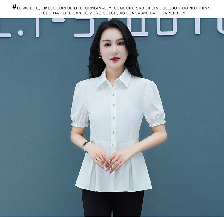 여름 새 흰색 셔츠 여성용 반팔 쉬폰 셔츠 새 한국식 슬림핏 슬리밍 올매치 서양식 대형 여성용 셔츠스토어 가기