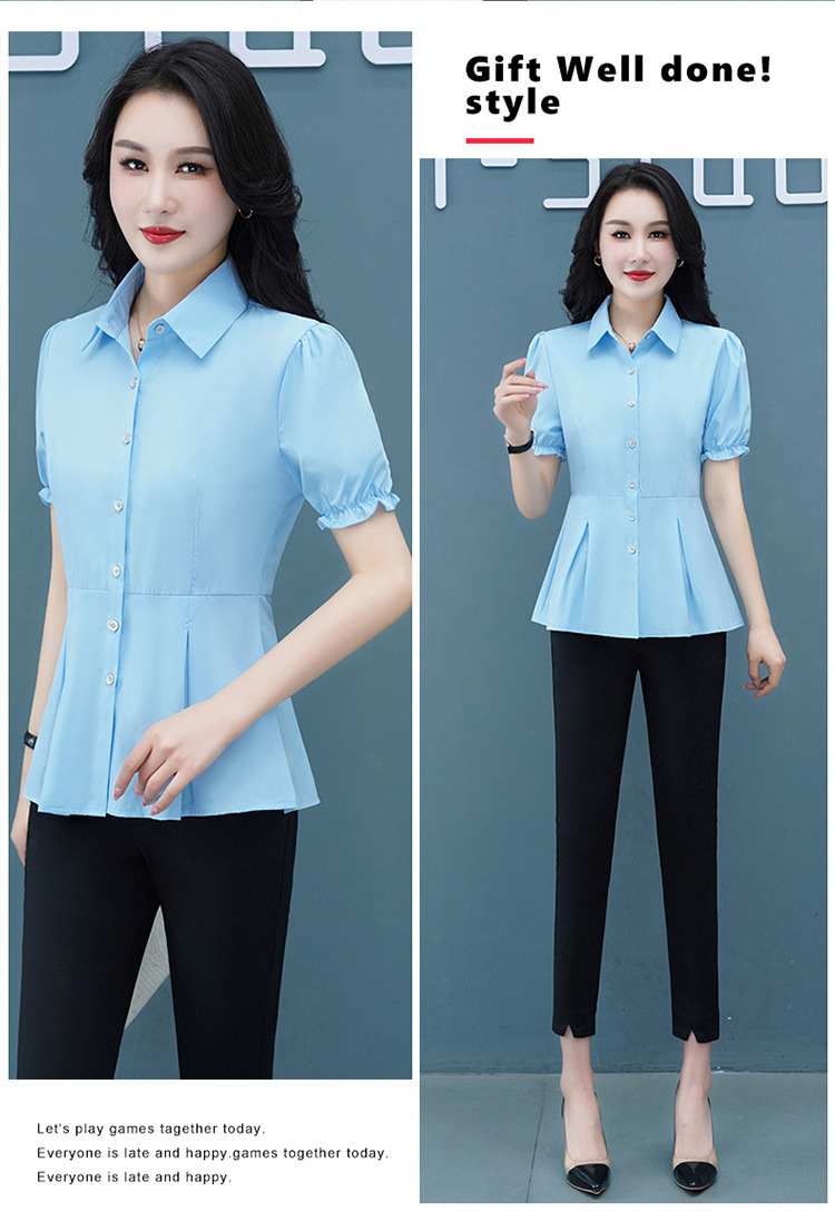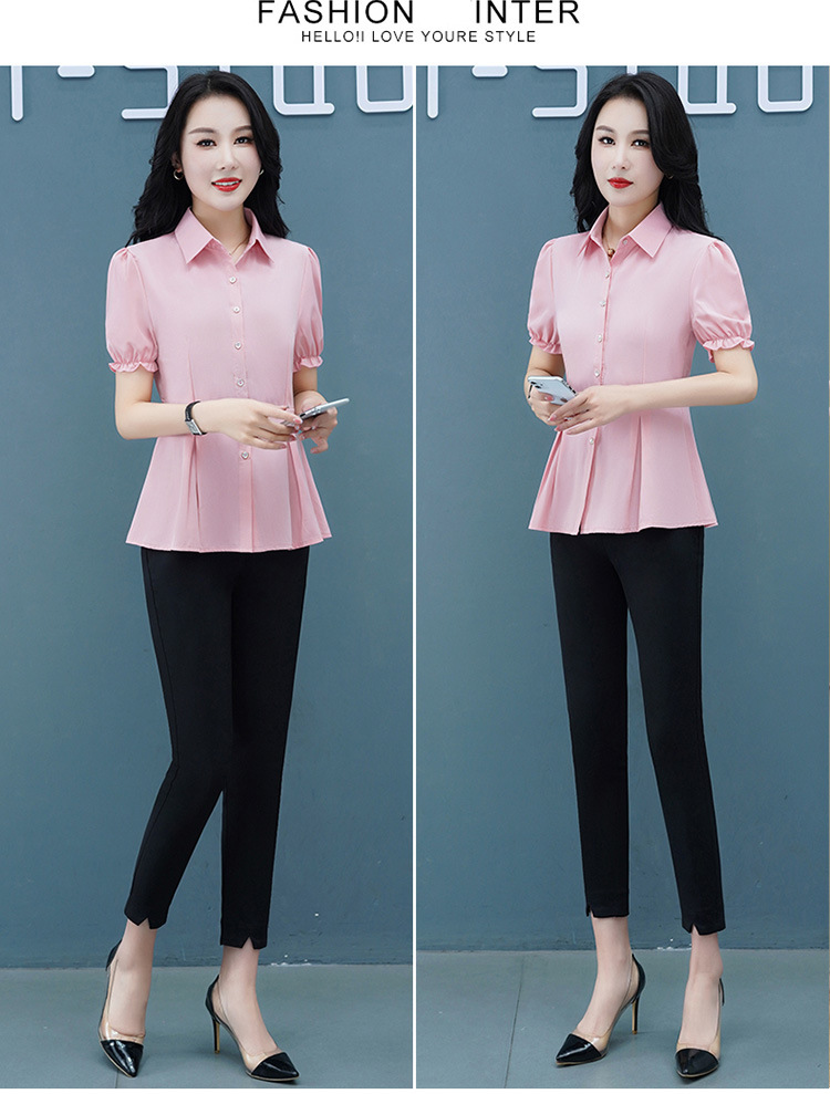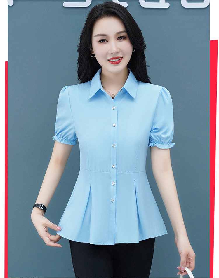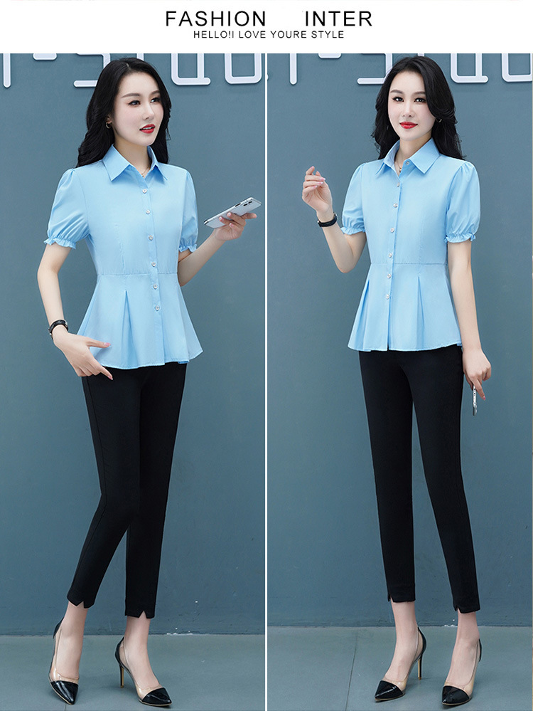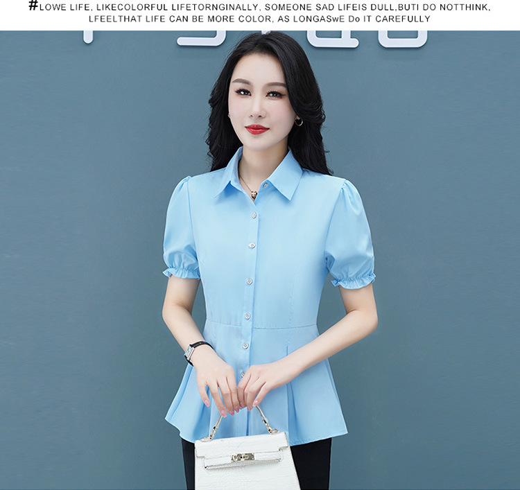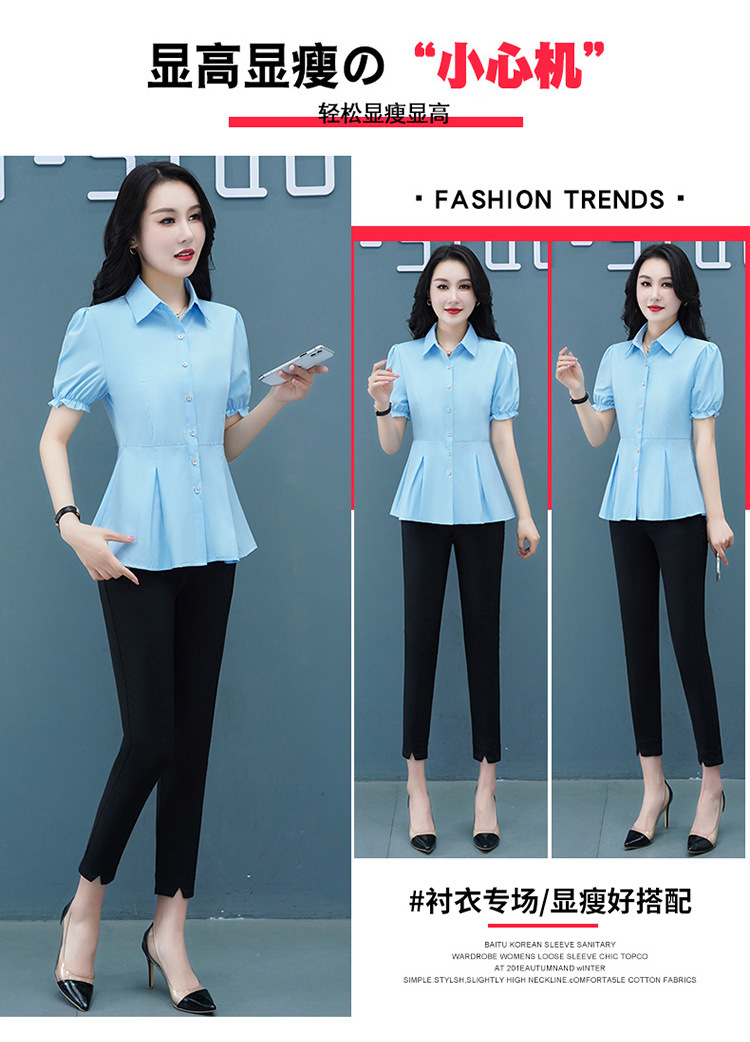 여름 새 흰색 셔츠 여성용 반팔 쉬폰 셔츠 새 한국식 슬림핏 슬리밍 올매치 서양식 대형 여성용 셔츠스토어 가기