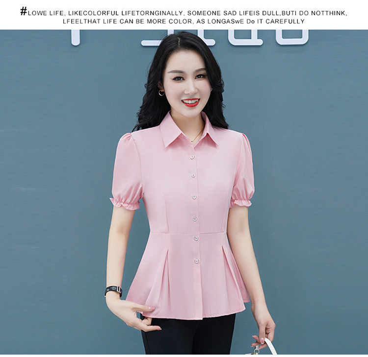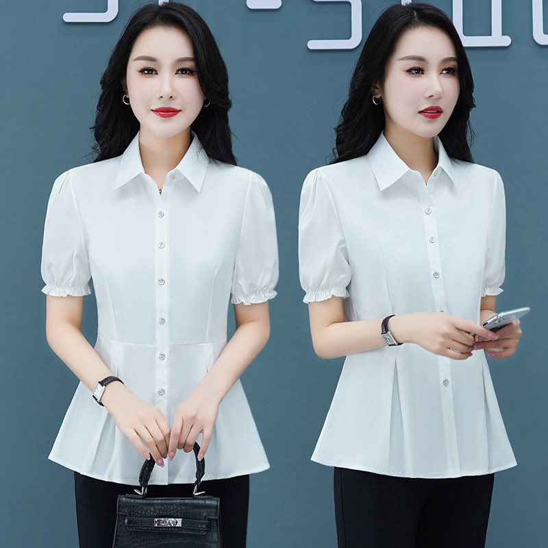 여름 새 흰색 셔츠 여성용 반팔 쉬폰 셔츠 새 한국식 슬림핏 슬리밍 올매치 서양식 대형 여성용 셔츠