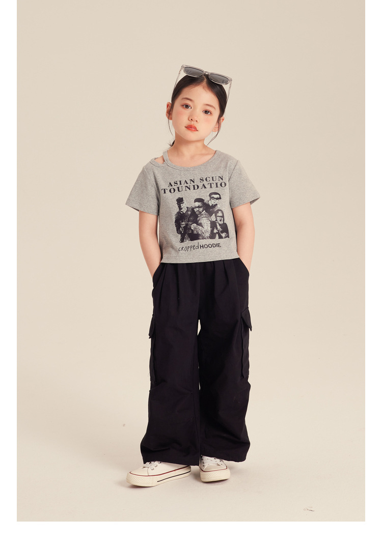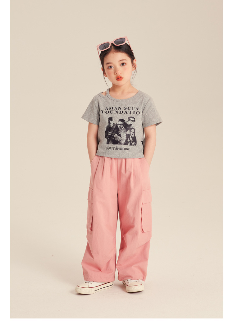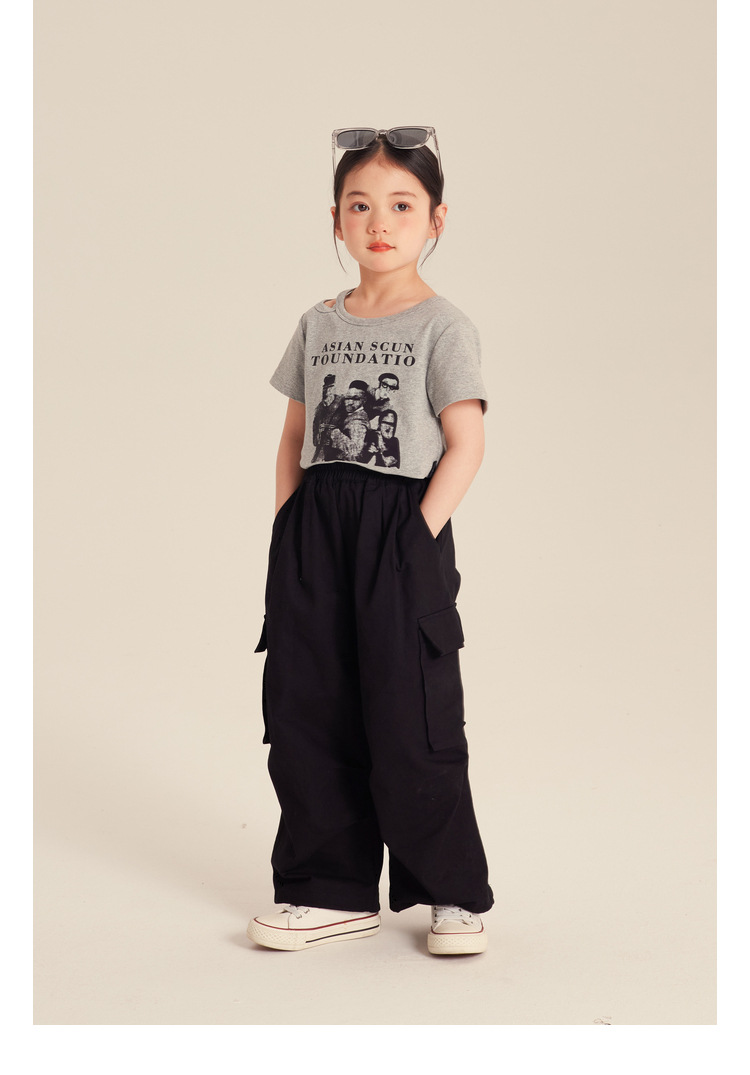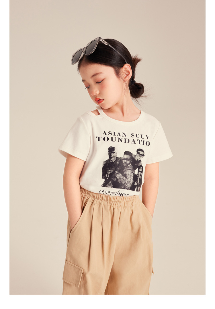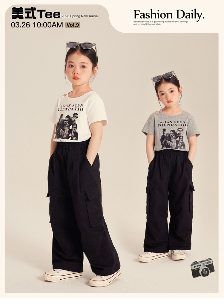 Amybaby Girls 티셔츠 2024 새로운 어린이 봄과 여름 미국 복고풍 캐주얼 유행 짧은 소매 탑스토어 가기