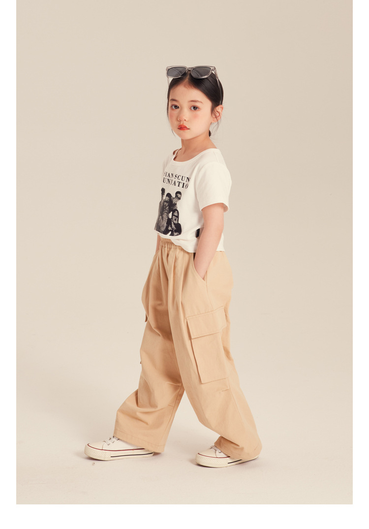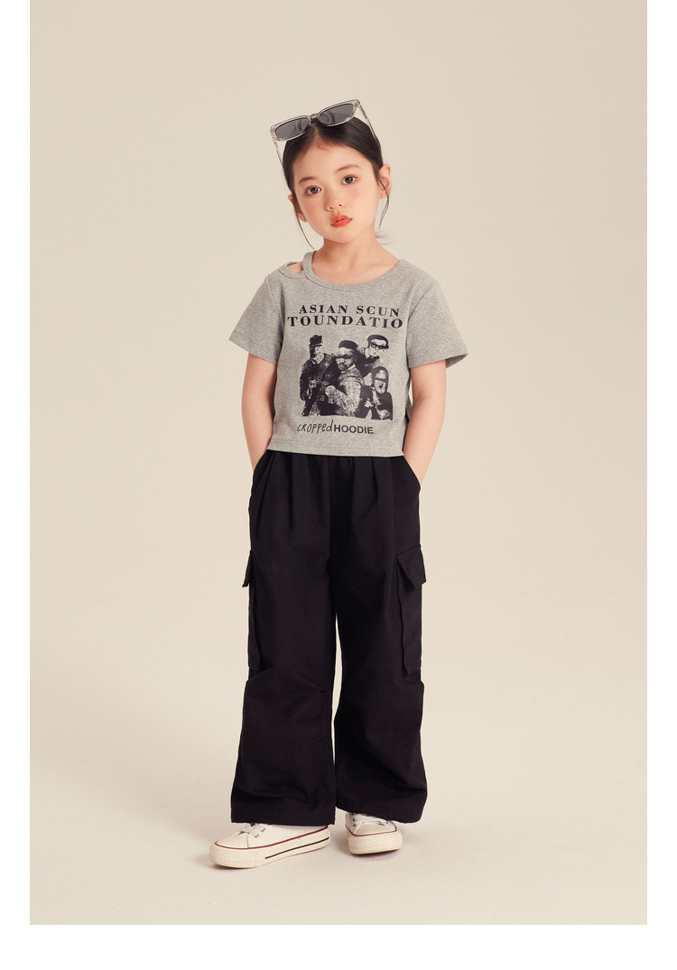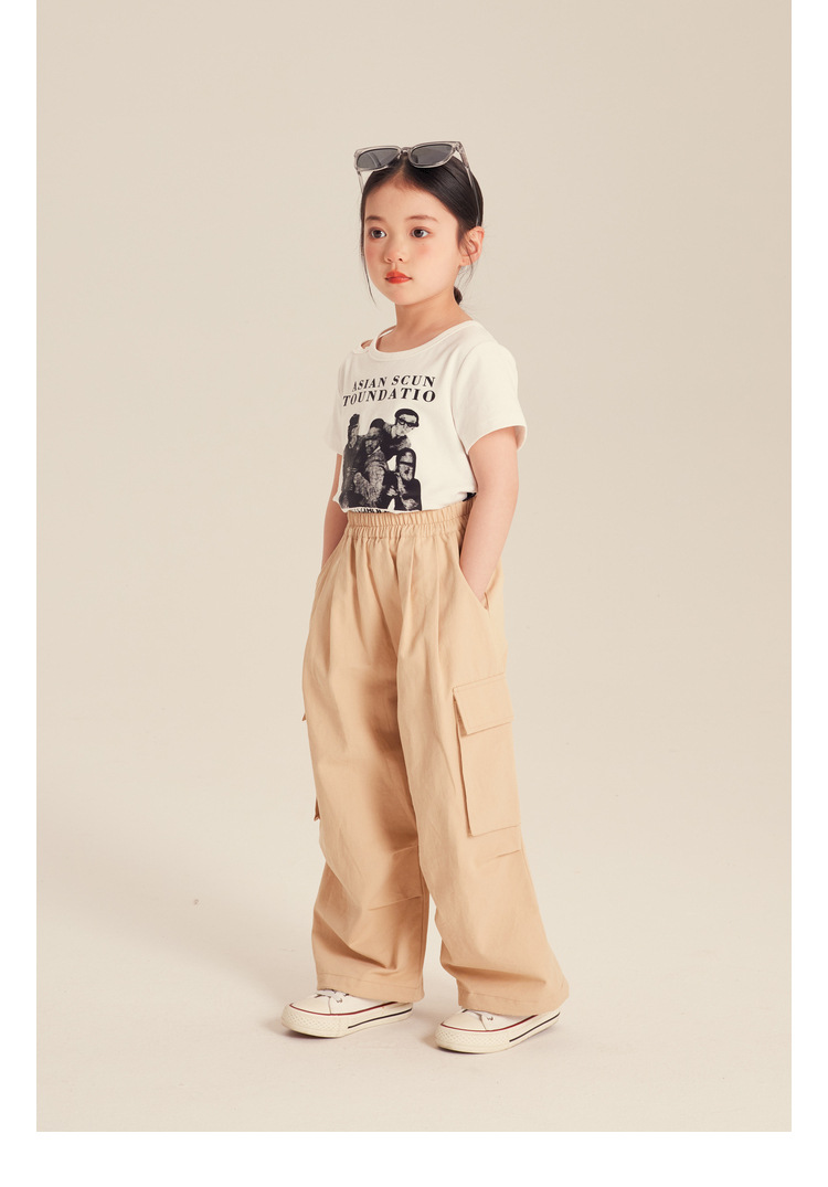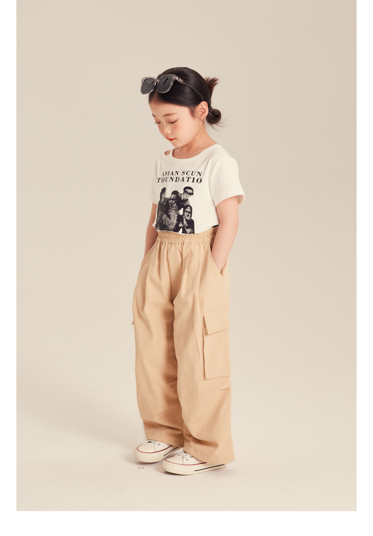 Amybaby Girls 티셔츠 2024 새로운 어린이 봄과 여름 미국 복고풍 캐주얼 유행 짧은 소매 탑스토어 가기