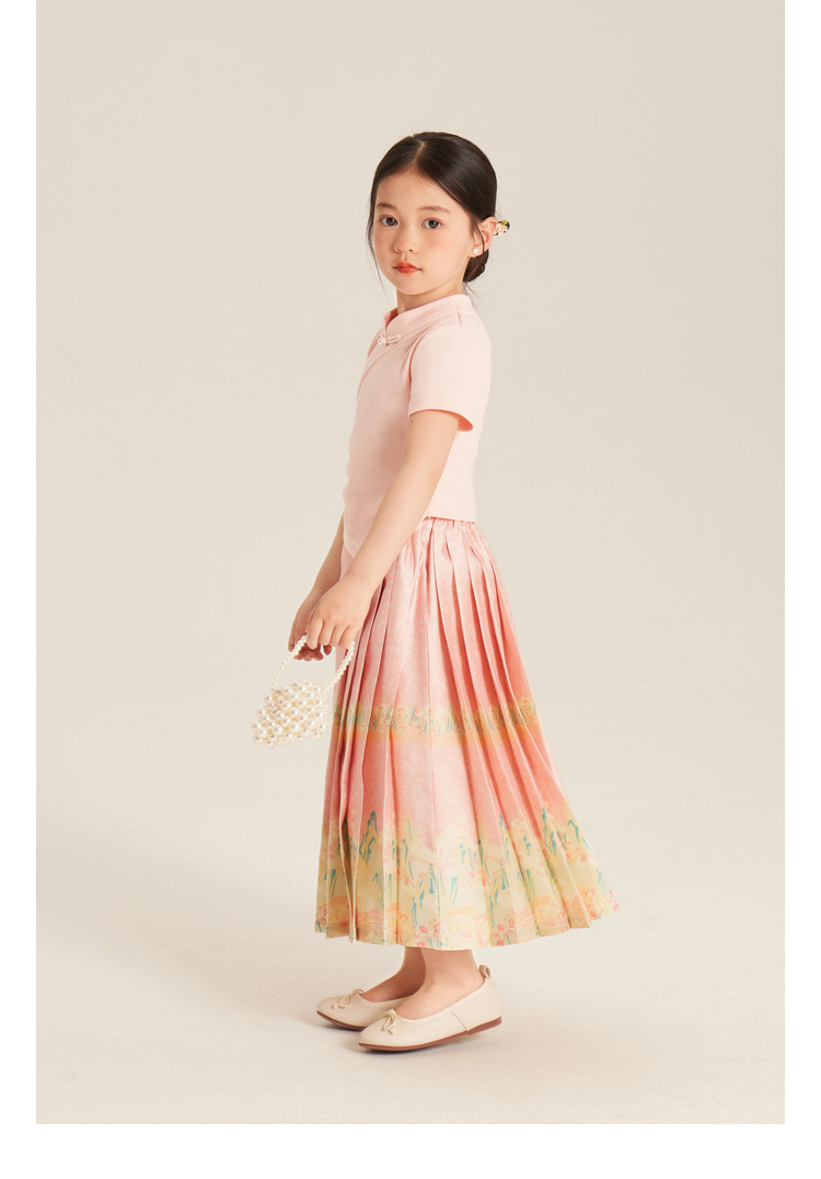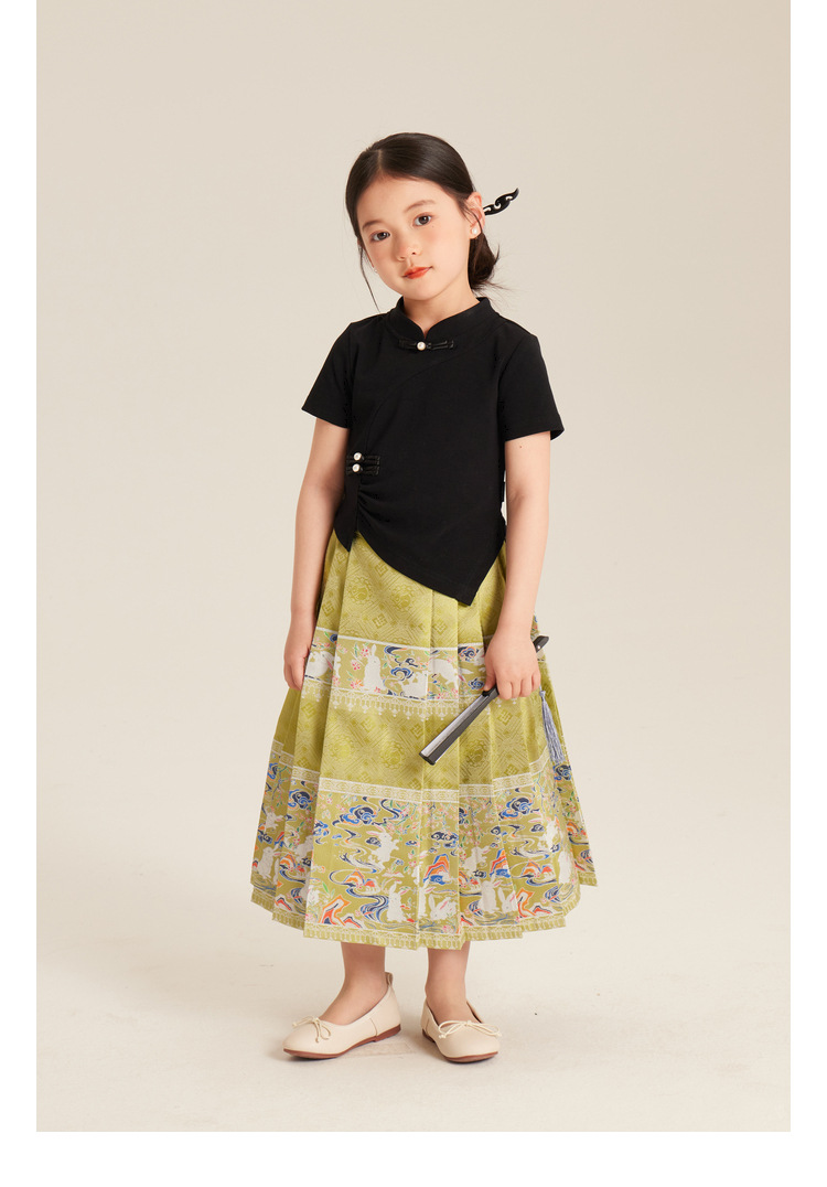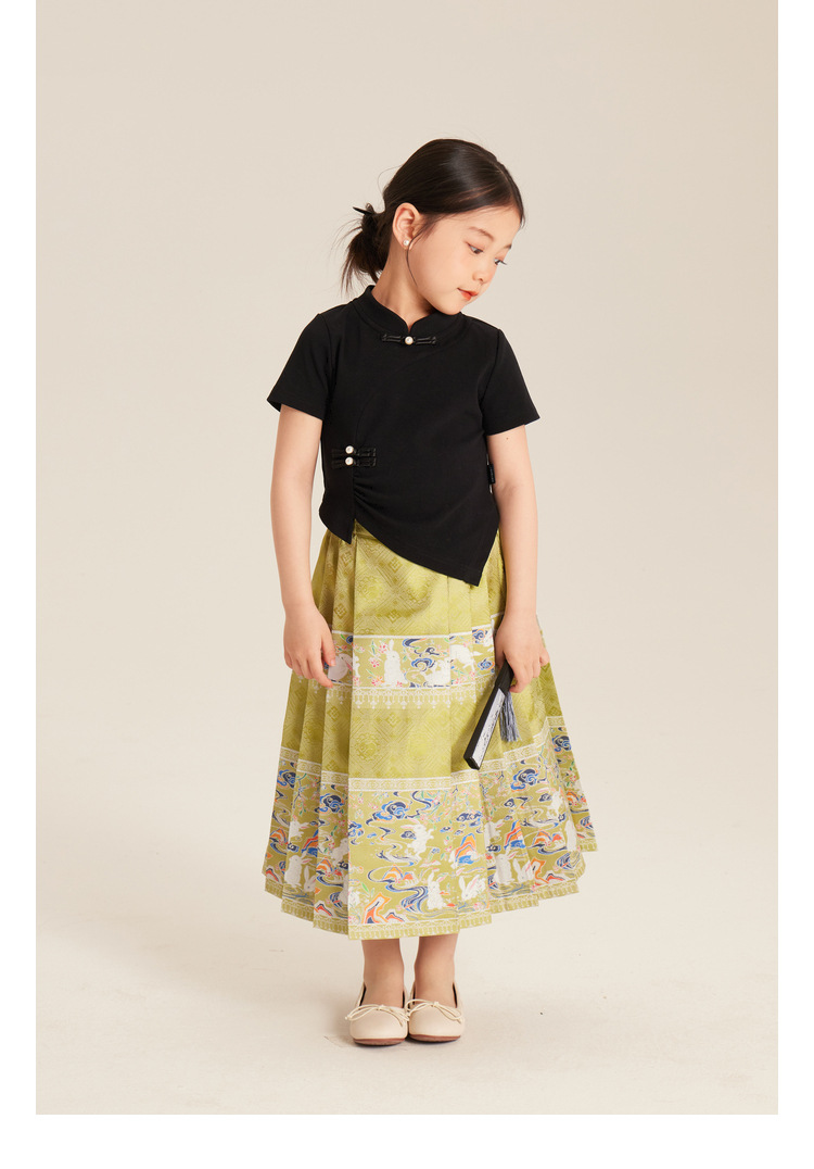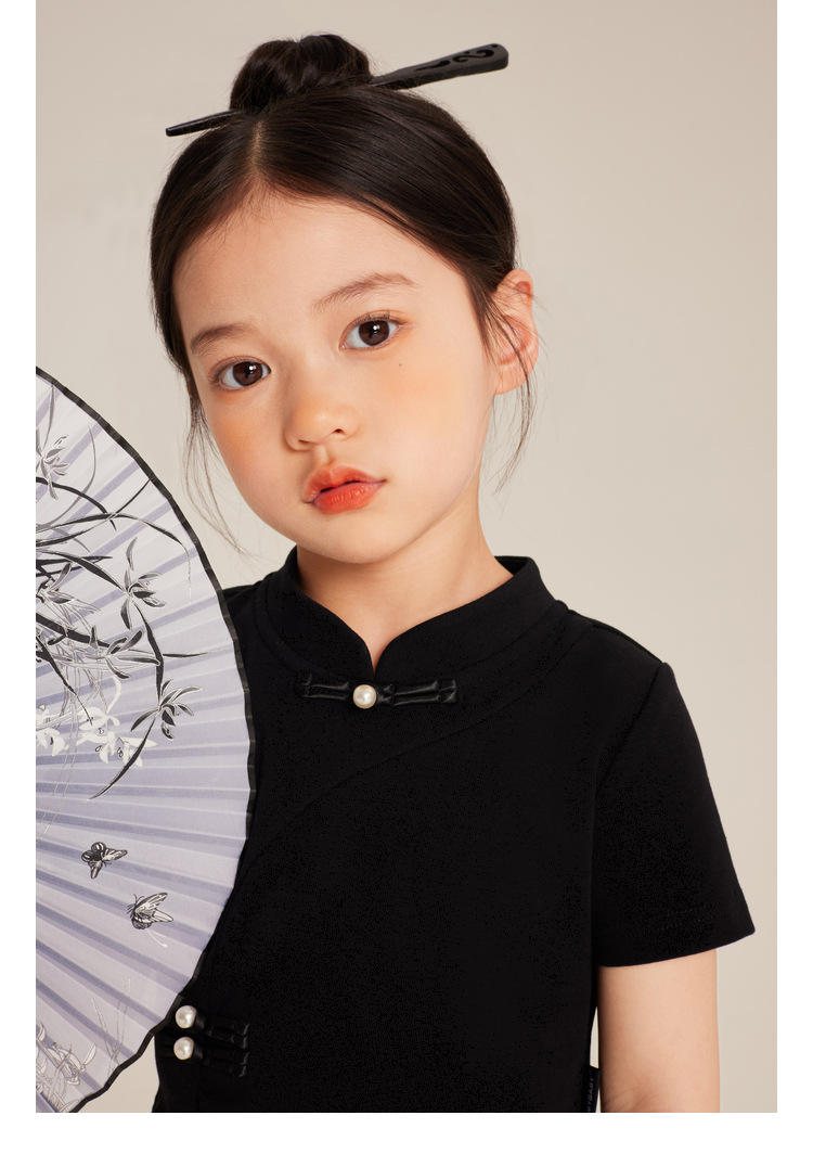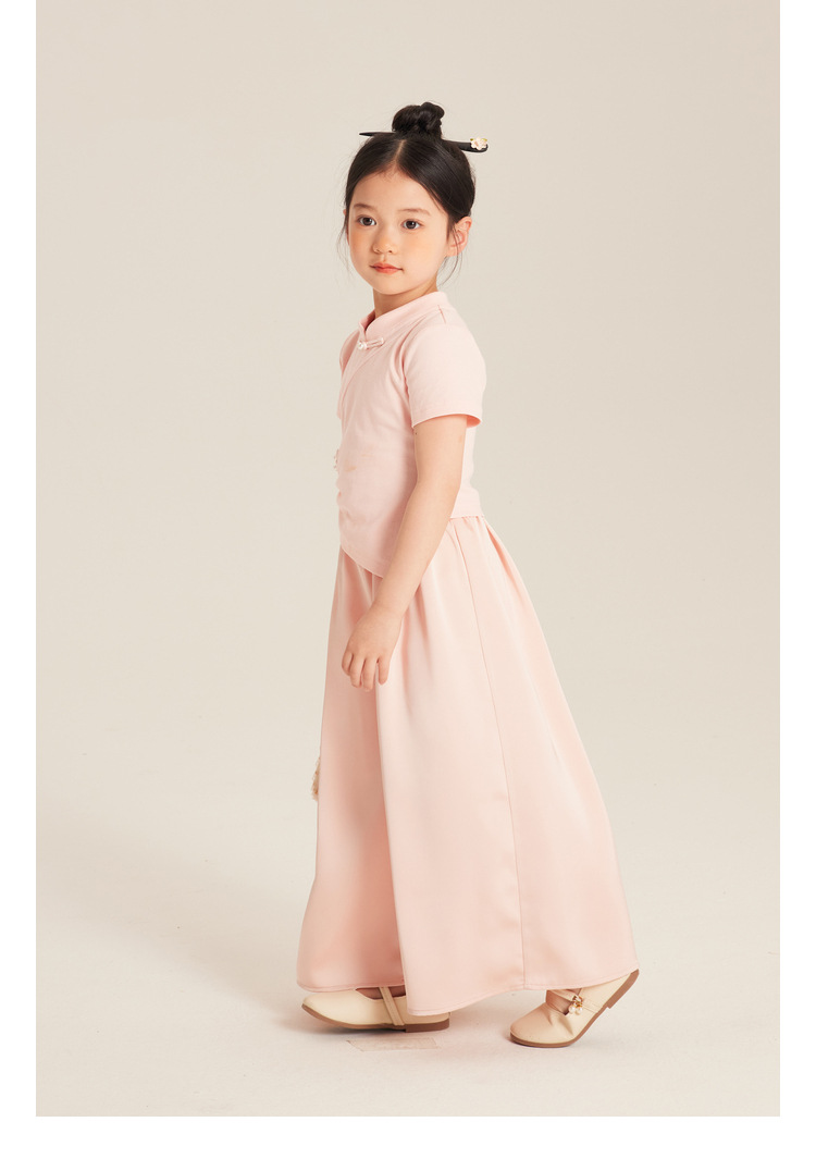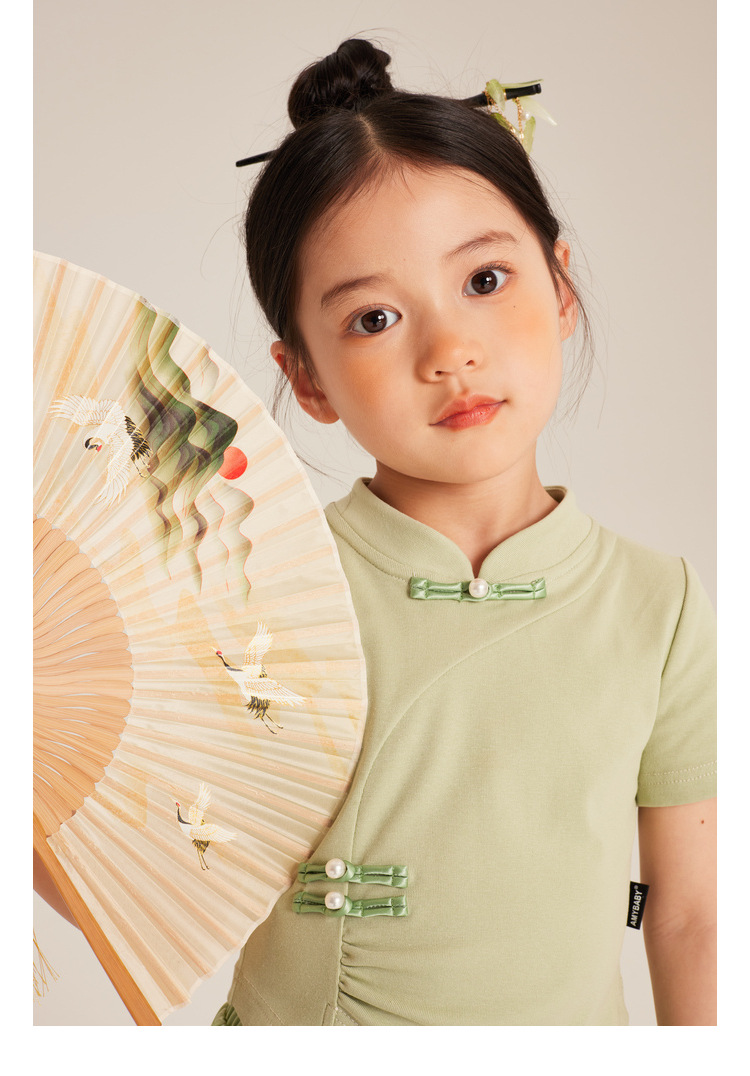 Amybaby Girls 'T 셔츠 2024 여름 불규칙한 중국 스타일 디자인 센스 우아한 버클 반소매 탑
