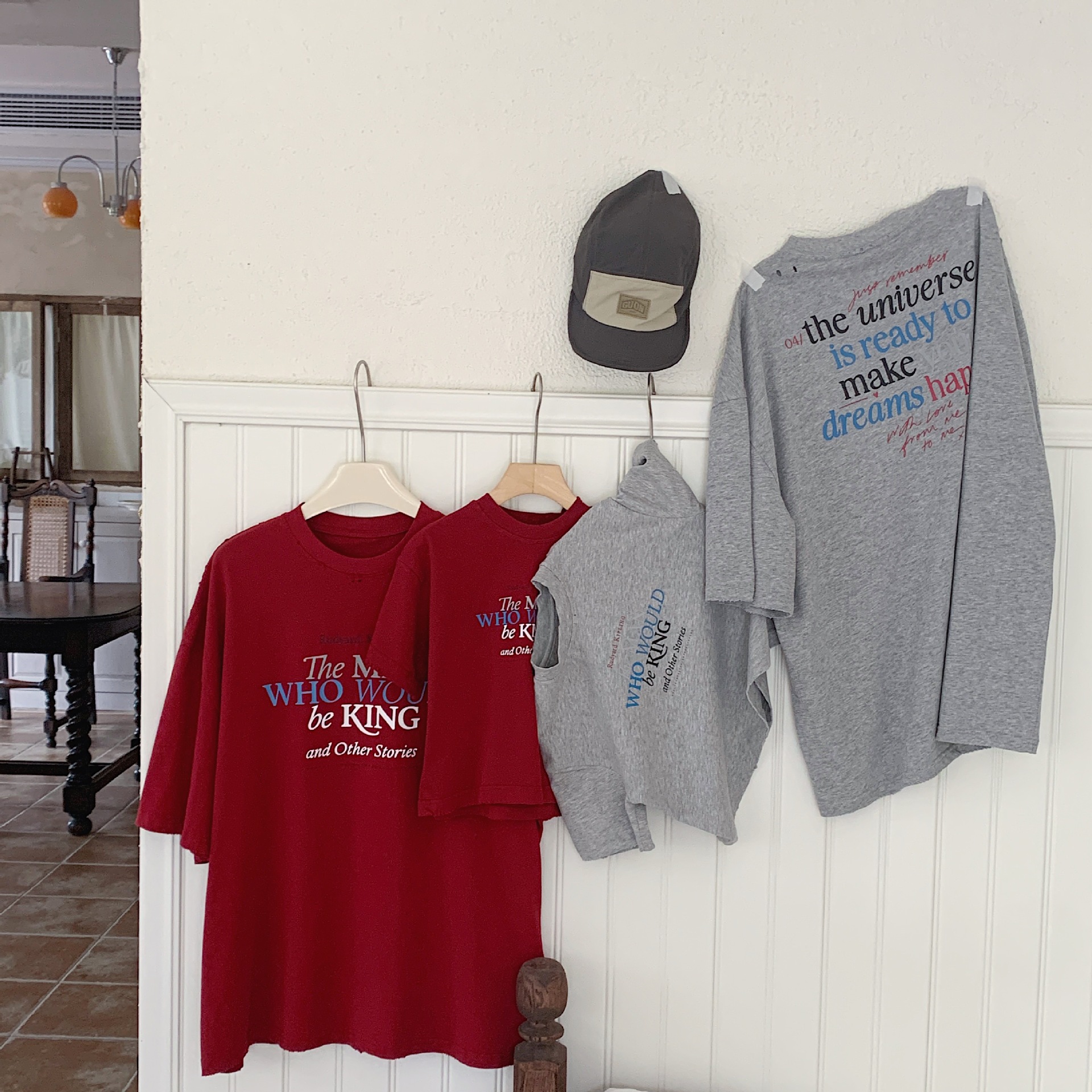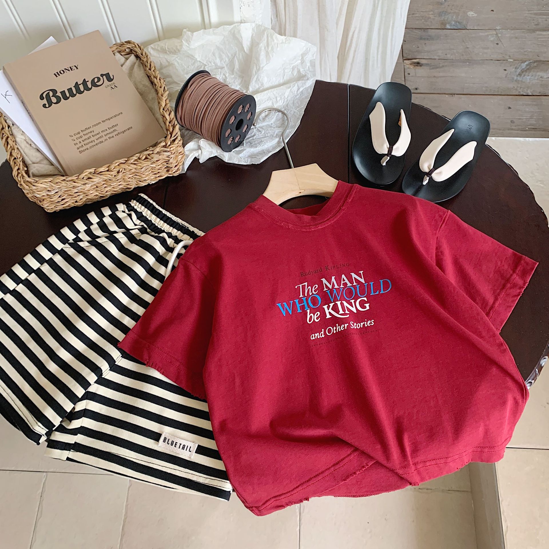 한국 스타일 어린이 의류 2024 여름 가족 의류 소년 거친 캐주얼 반팔 여자 티셔츠 편지 여성용 티셔츠스토어 가기
