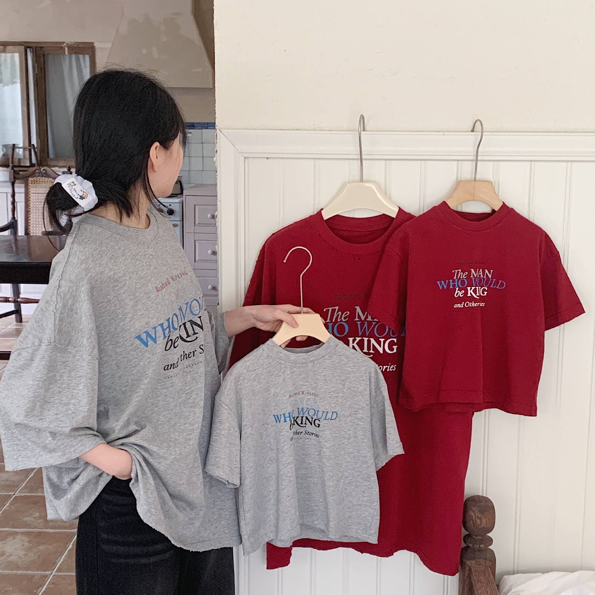 한국 스타일 어린이 의류 2024 여름 가족 의류 소년 거친 캐주얼 반팔 여자 티셔츠 편지 여성용 티셔츠