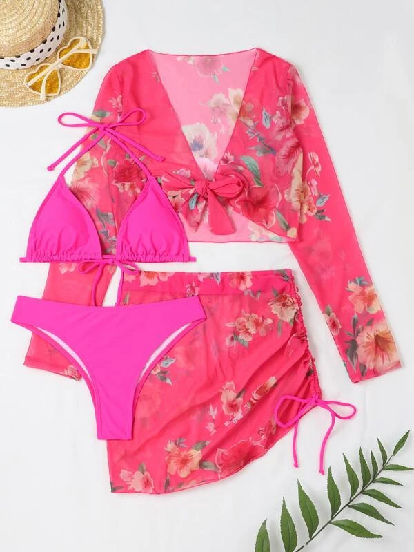 아마존 유럽과 미국의 비키니 비키니 섹시 분할 인쇄 4 피스 수영복 AliExpress 국경 러시아