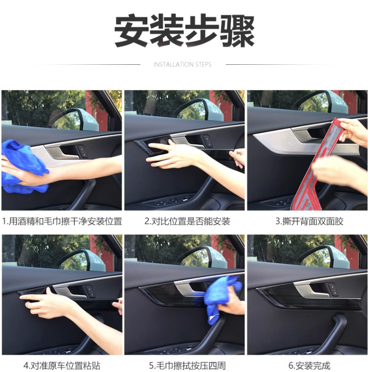 • 4 도어 팔걸이 얇은 스트립 스티커 [블랙 티타늄 와이어 드로잉]]