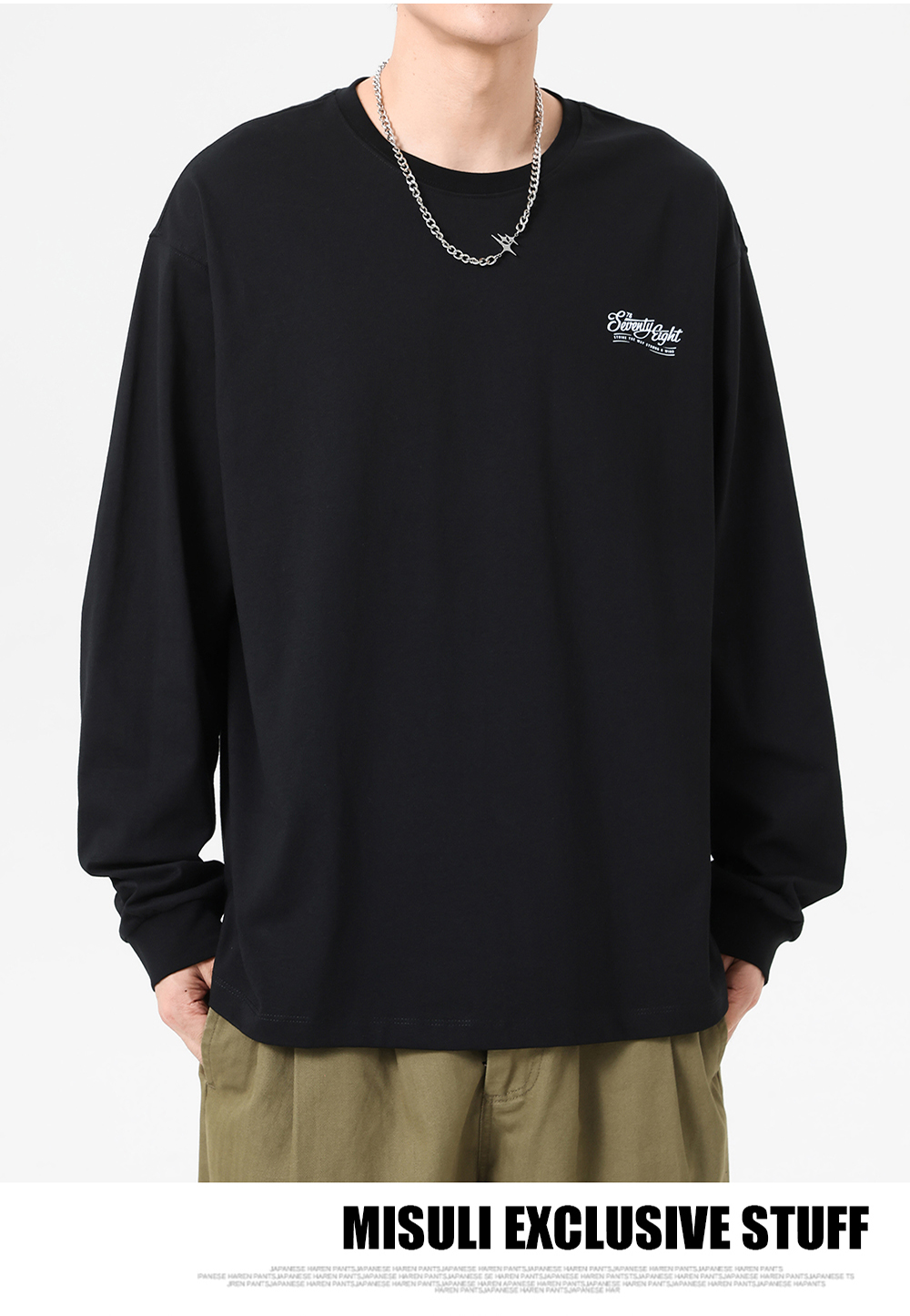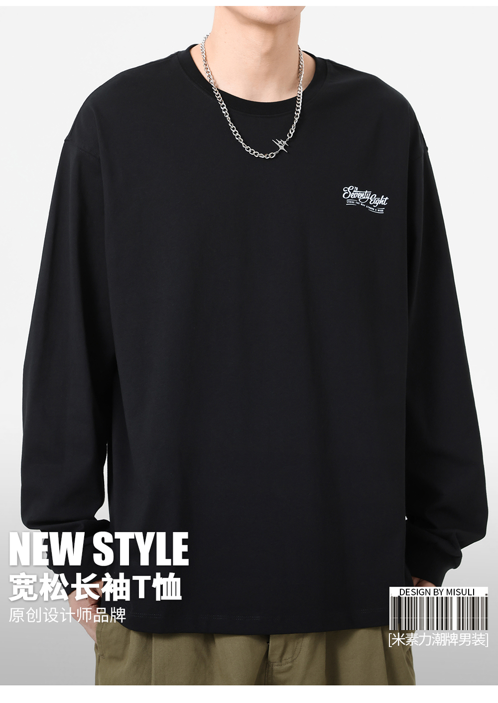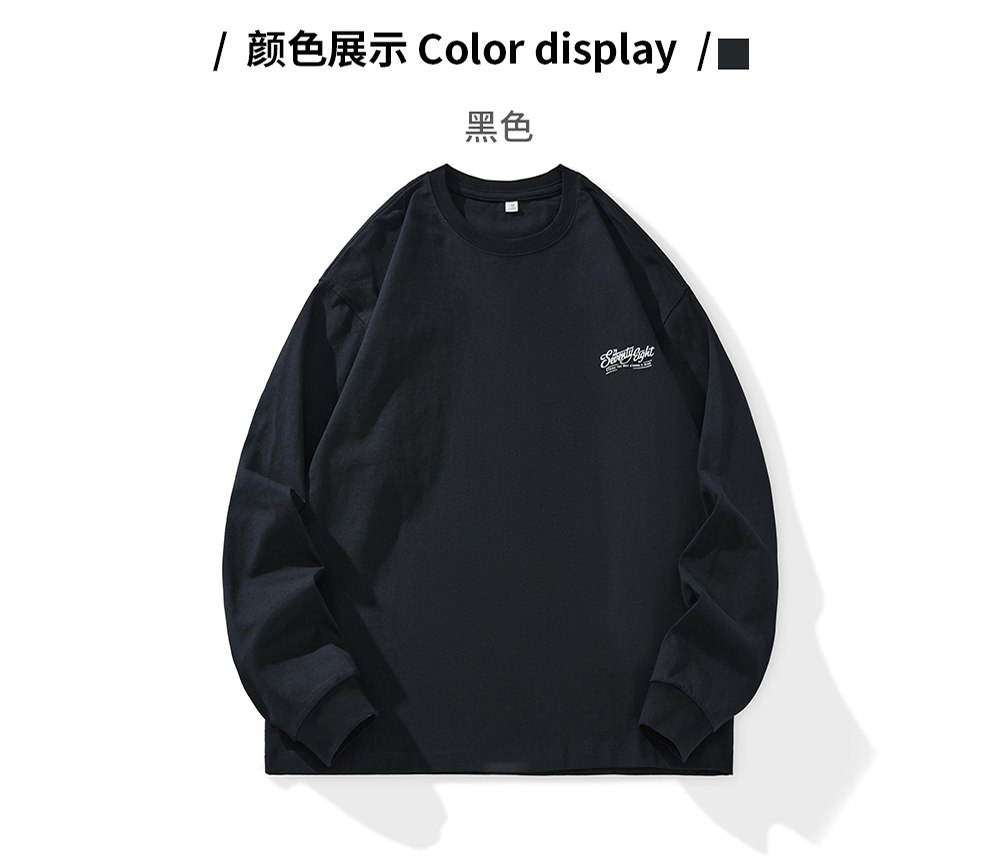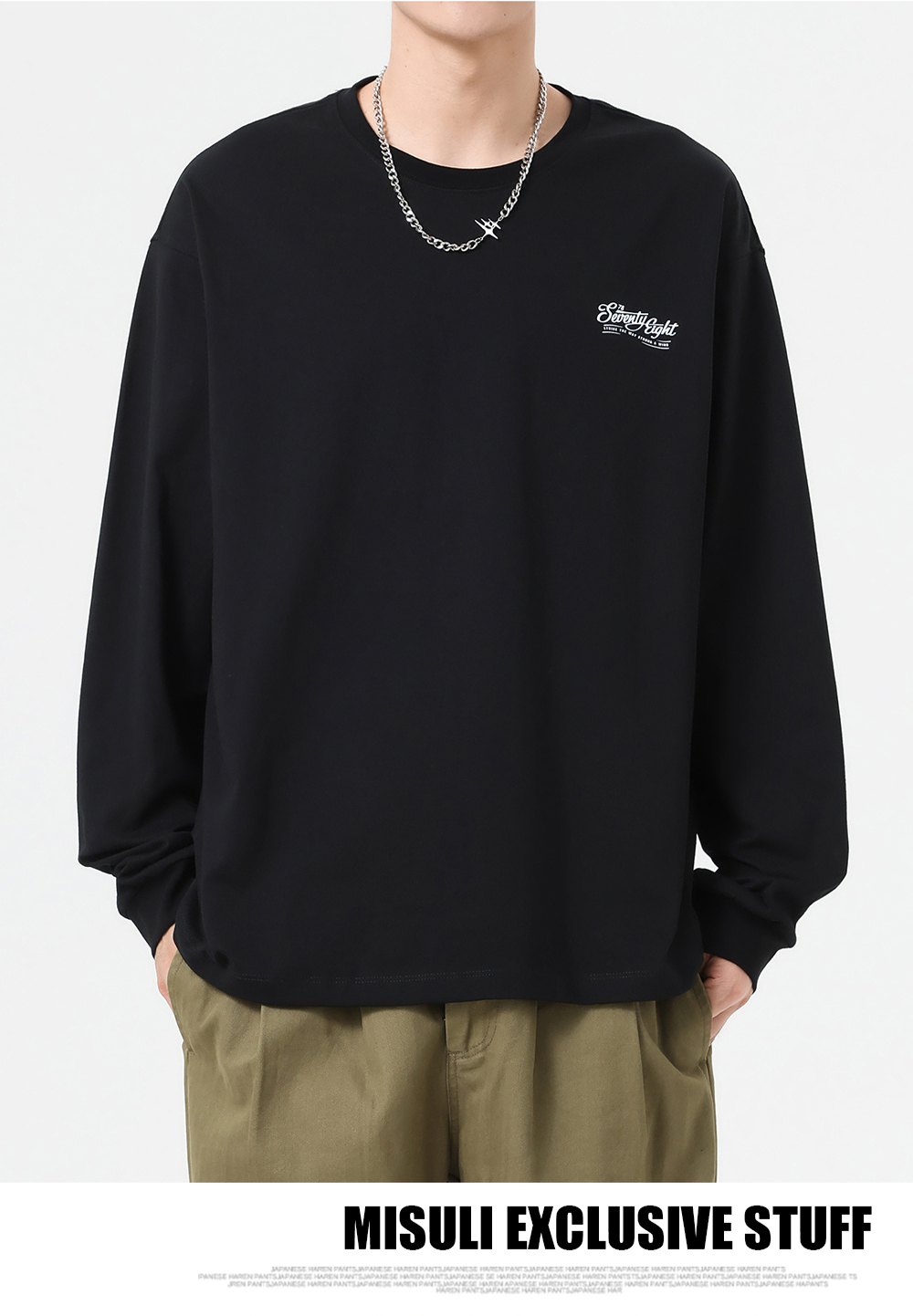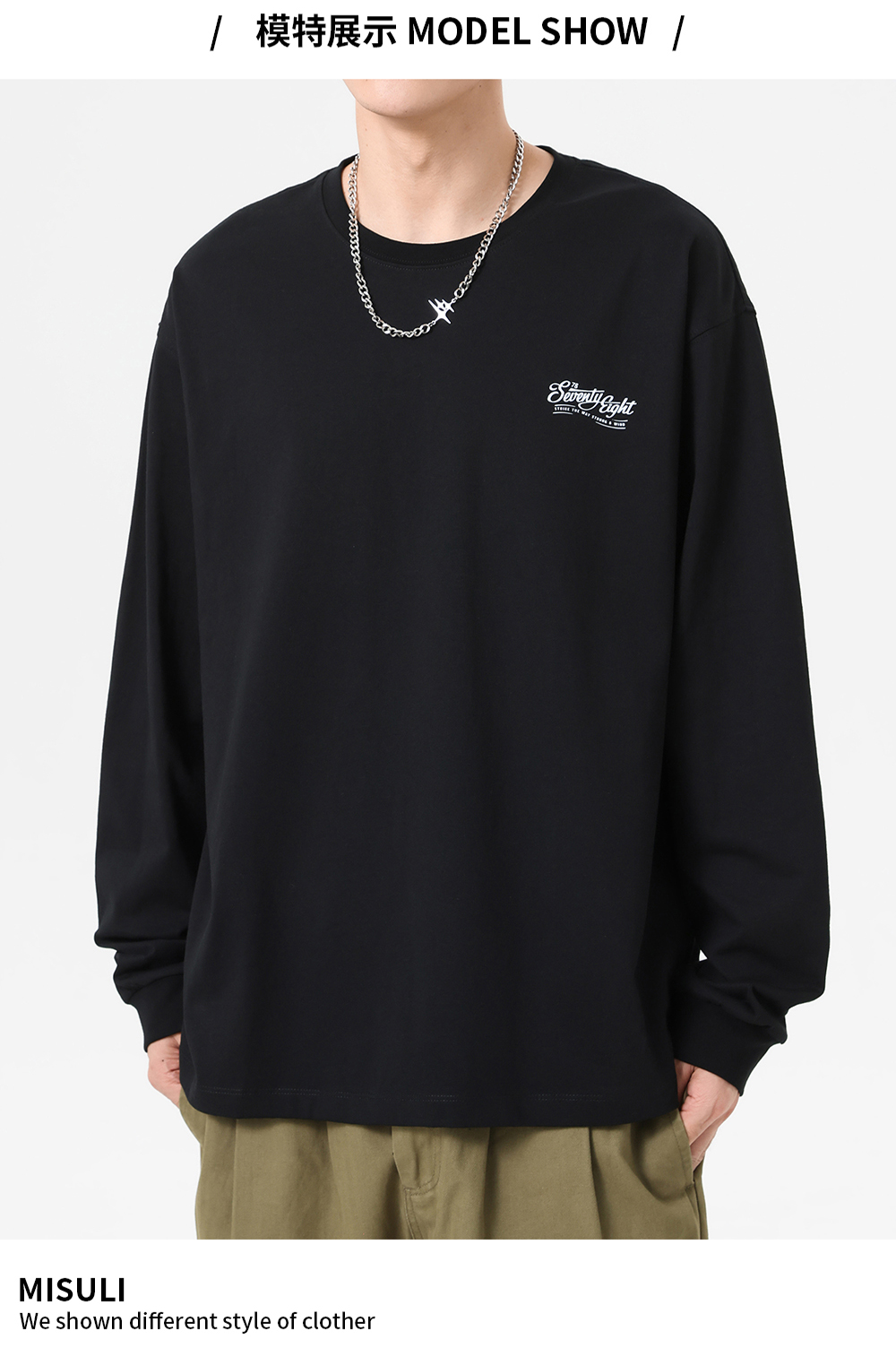 260g 무거운 둥근 목 긴팔 티셔츠 남성용 느슨한 대형 사이즈 미국 프린트 스웨터 남성용 봄과 가을베이스 셔츠스토어 가기