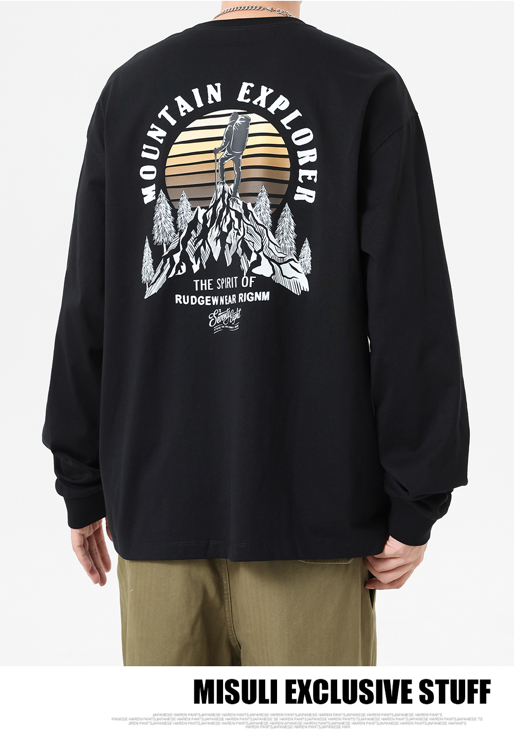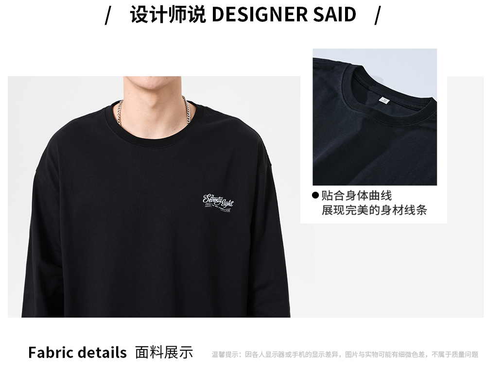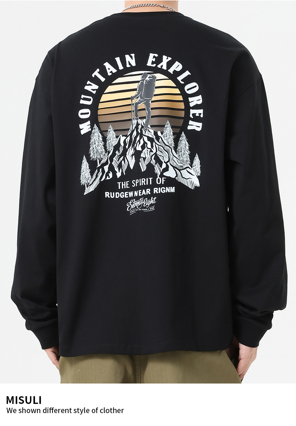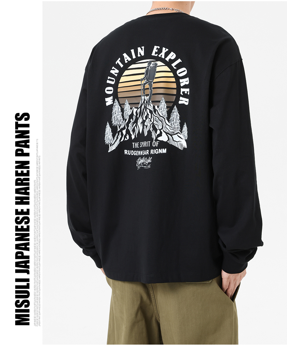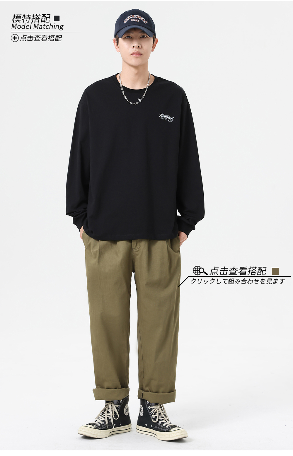 260g 무거운 둥근 목 긴팔 티셔츠 남성용 느슨한 대형 사이즈 미국 프린트 스웨터 남성용 봄과 가을베이스 셔츠스토어 가기