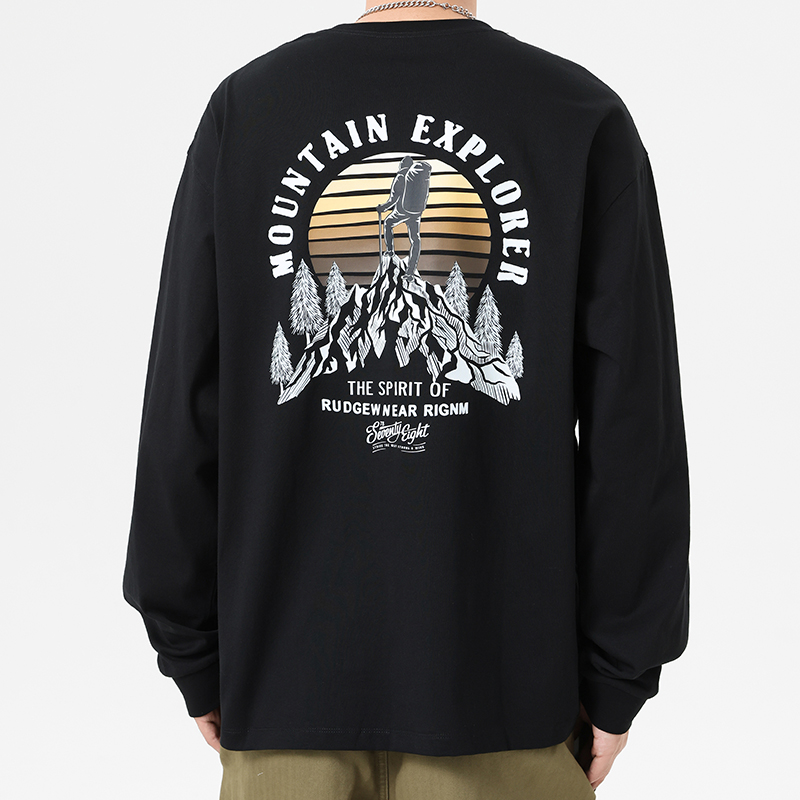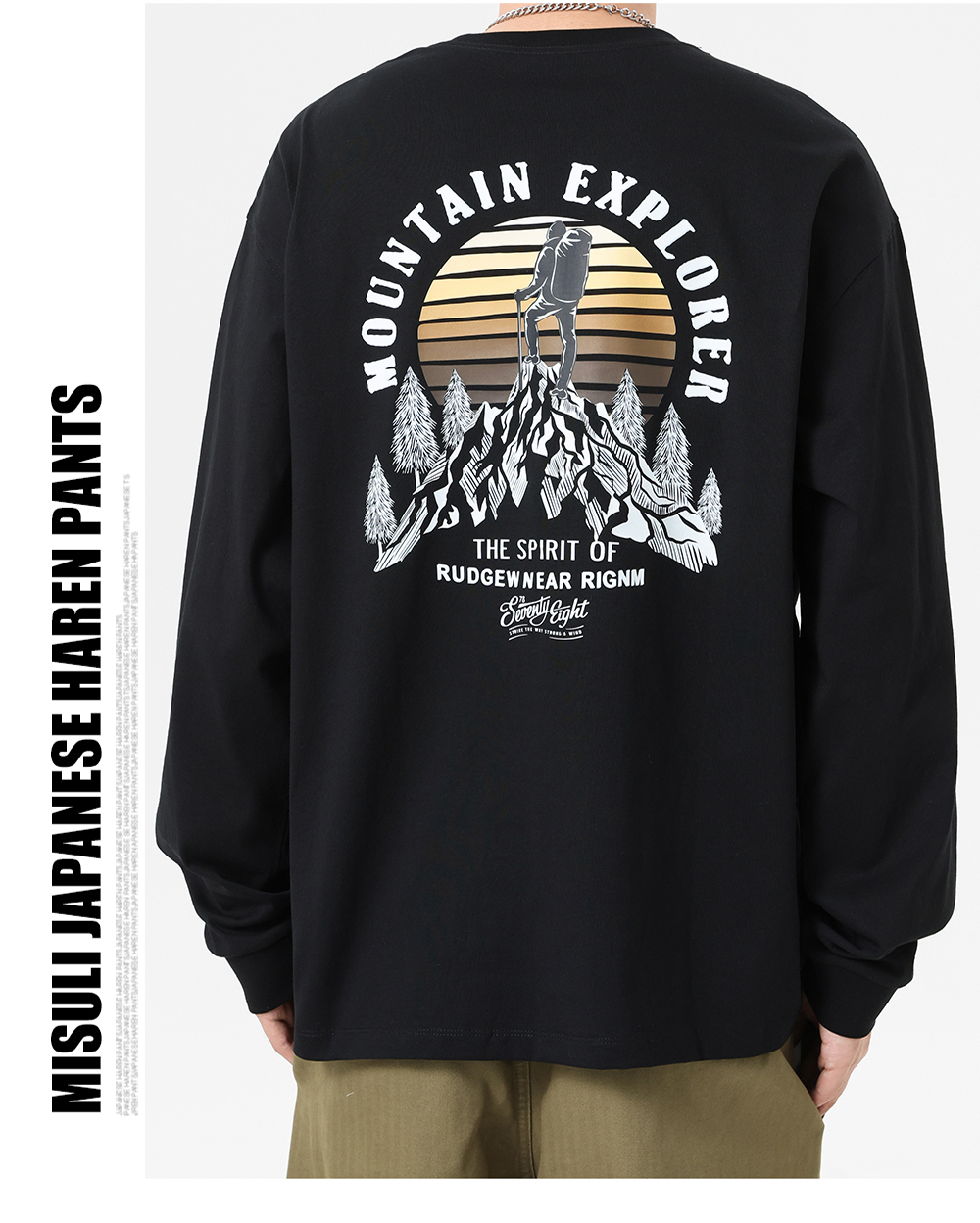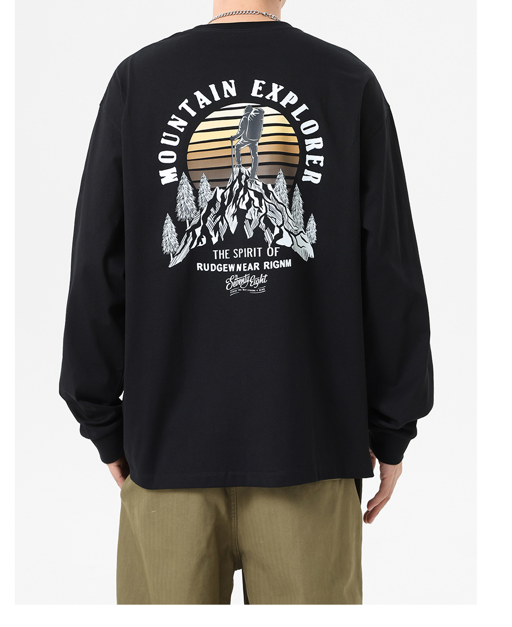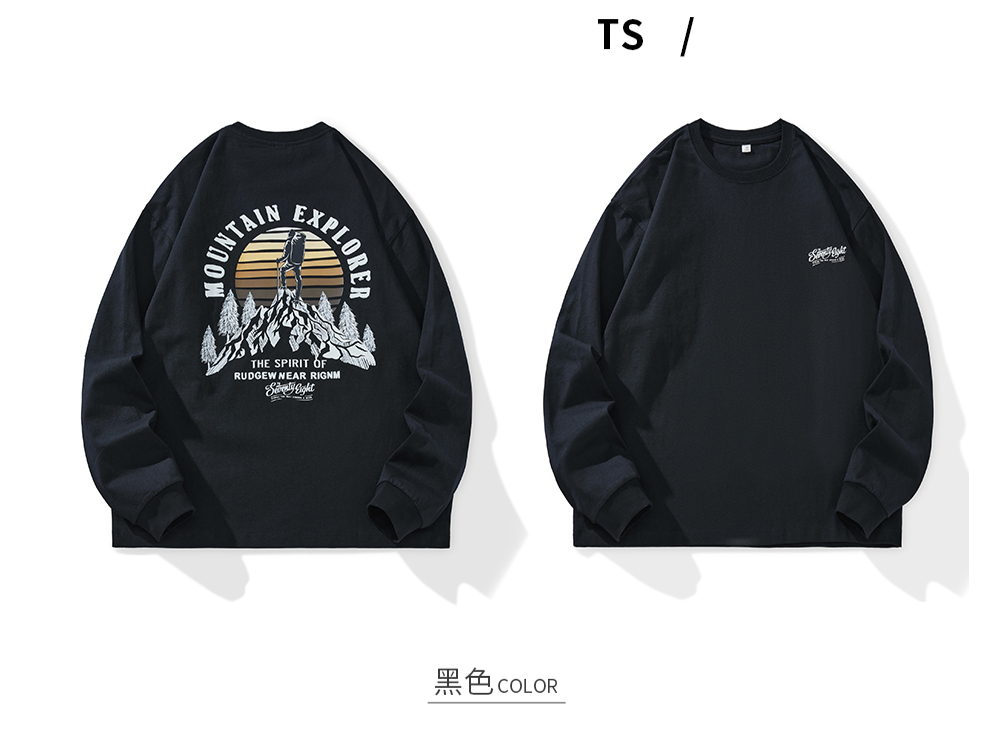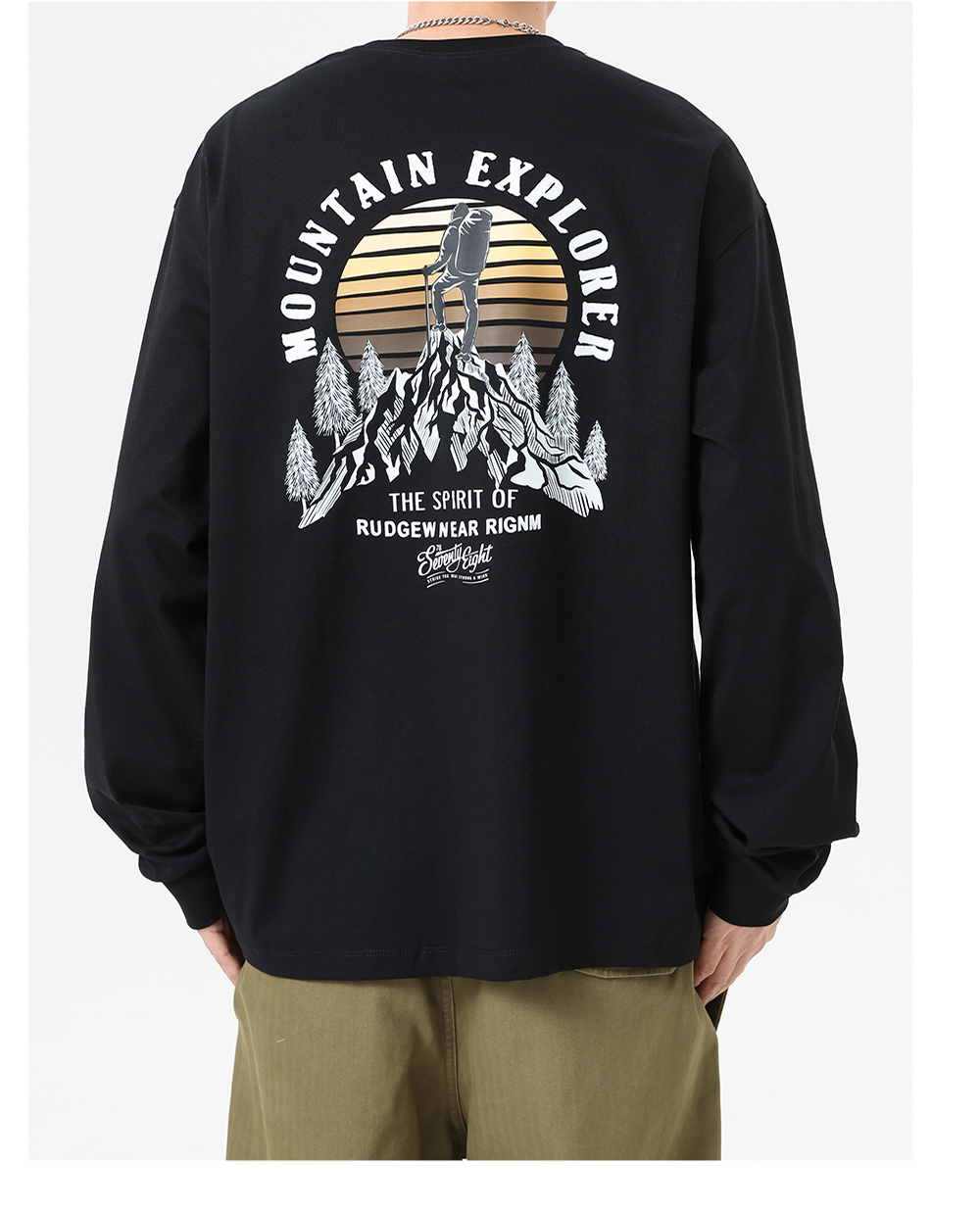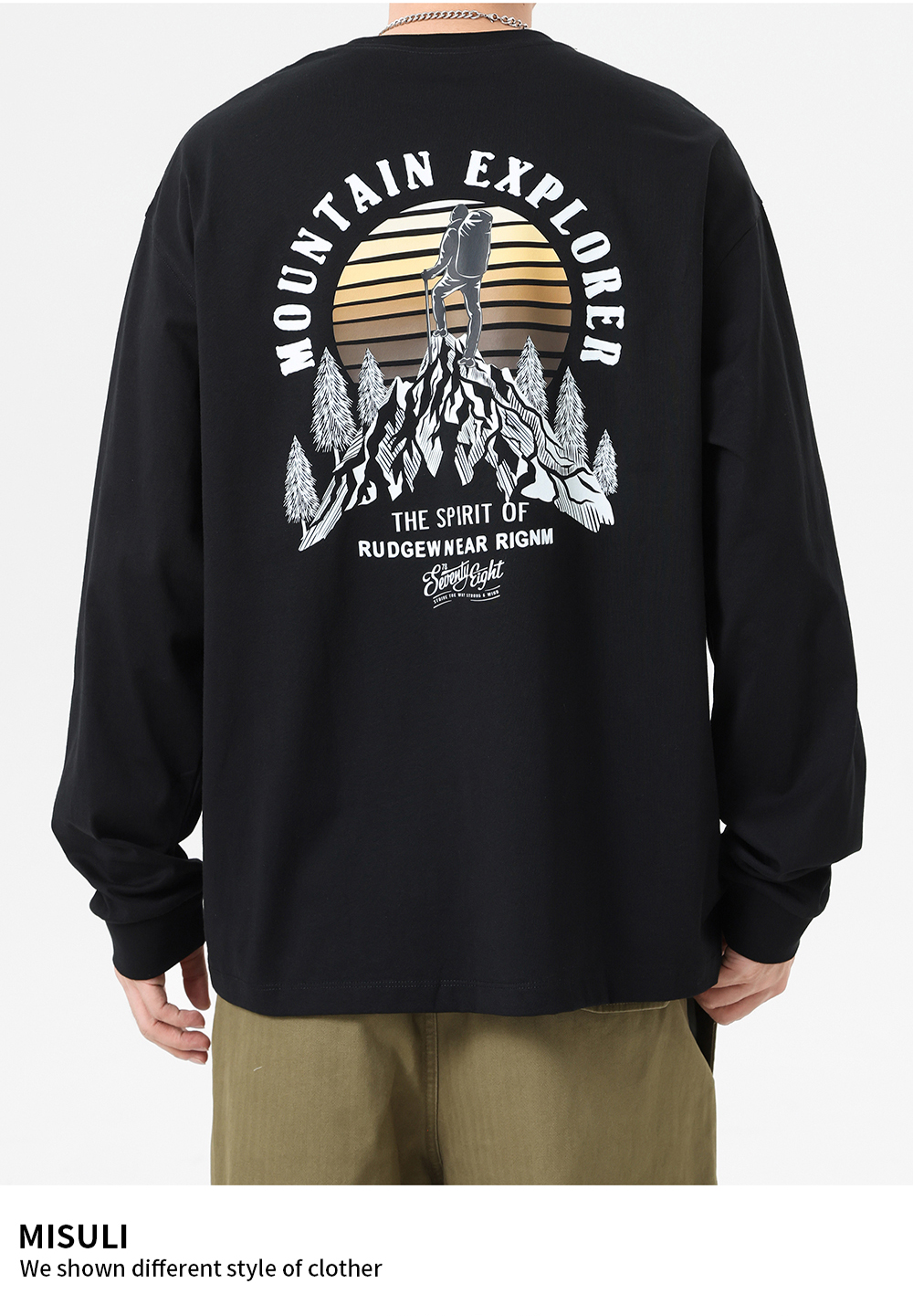260g 무거운 둥근 목 긴팔 티셔츠 남성용 느슨한 대형 사이즈 미국 프린트 스웨터 남성용 봄과 가을베이스 셔츠