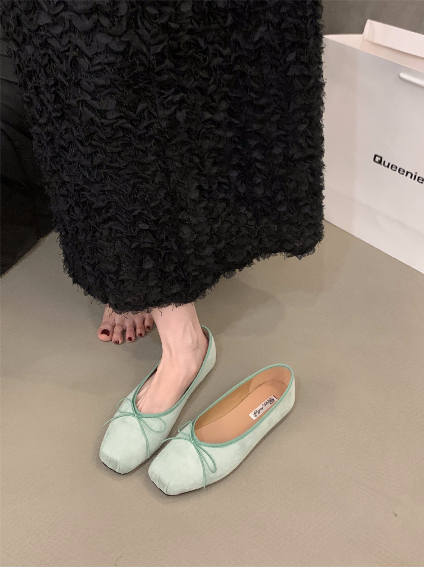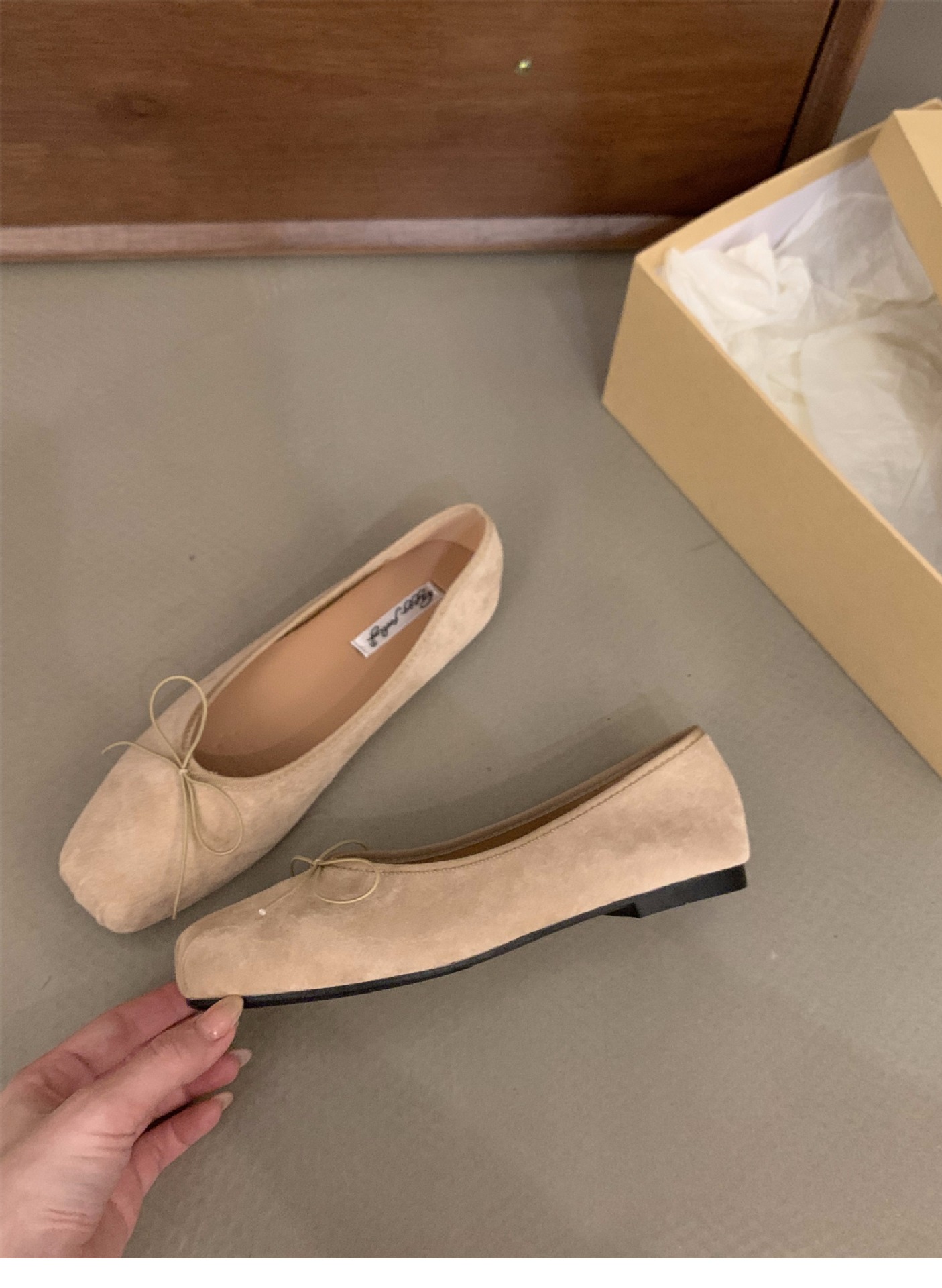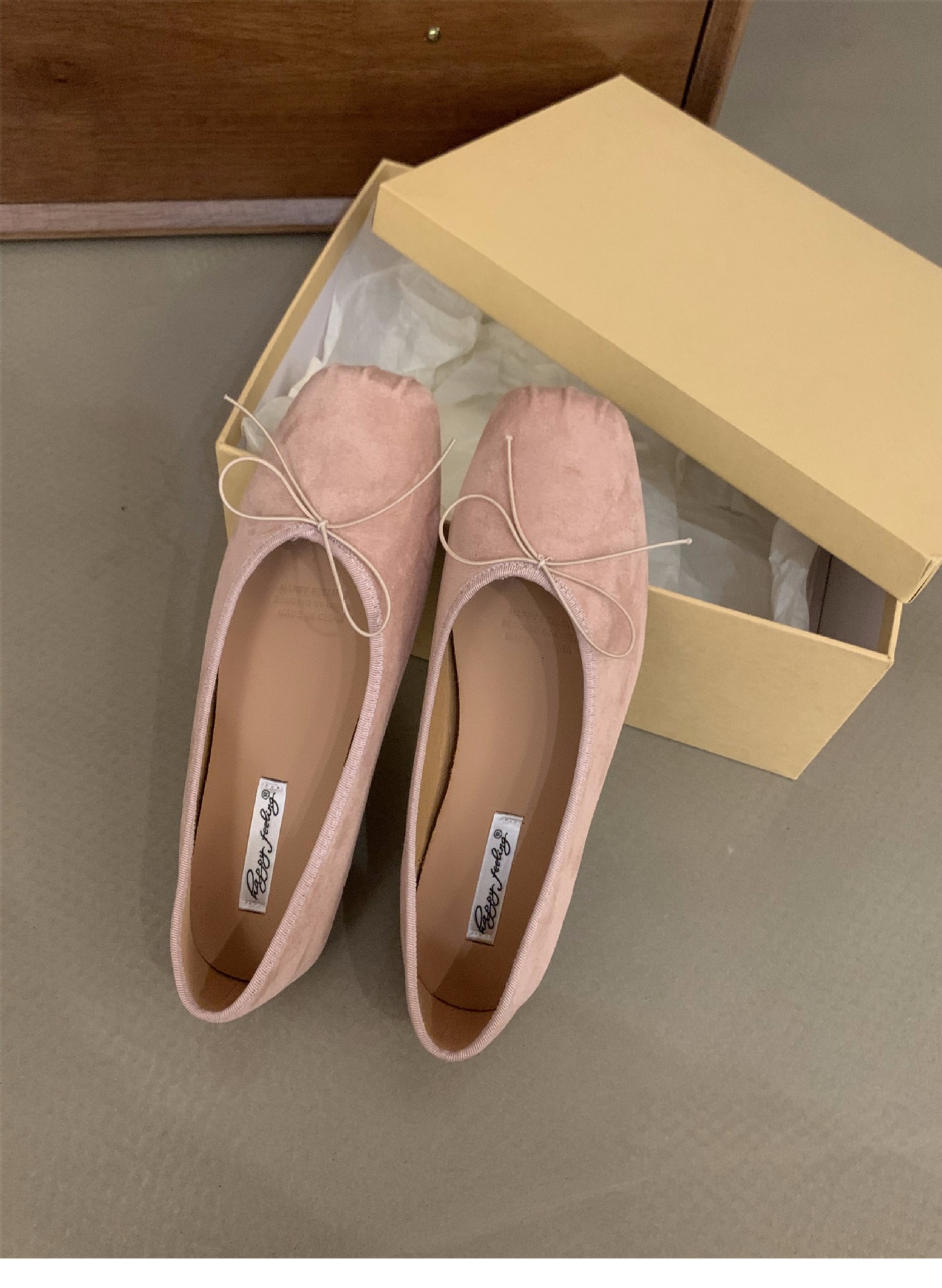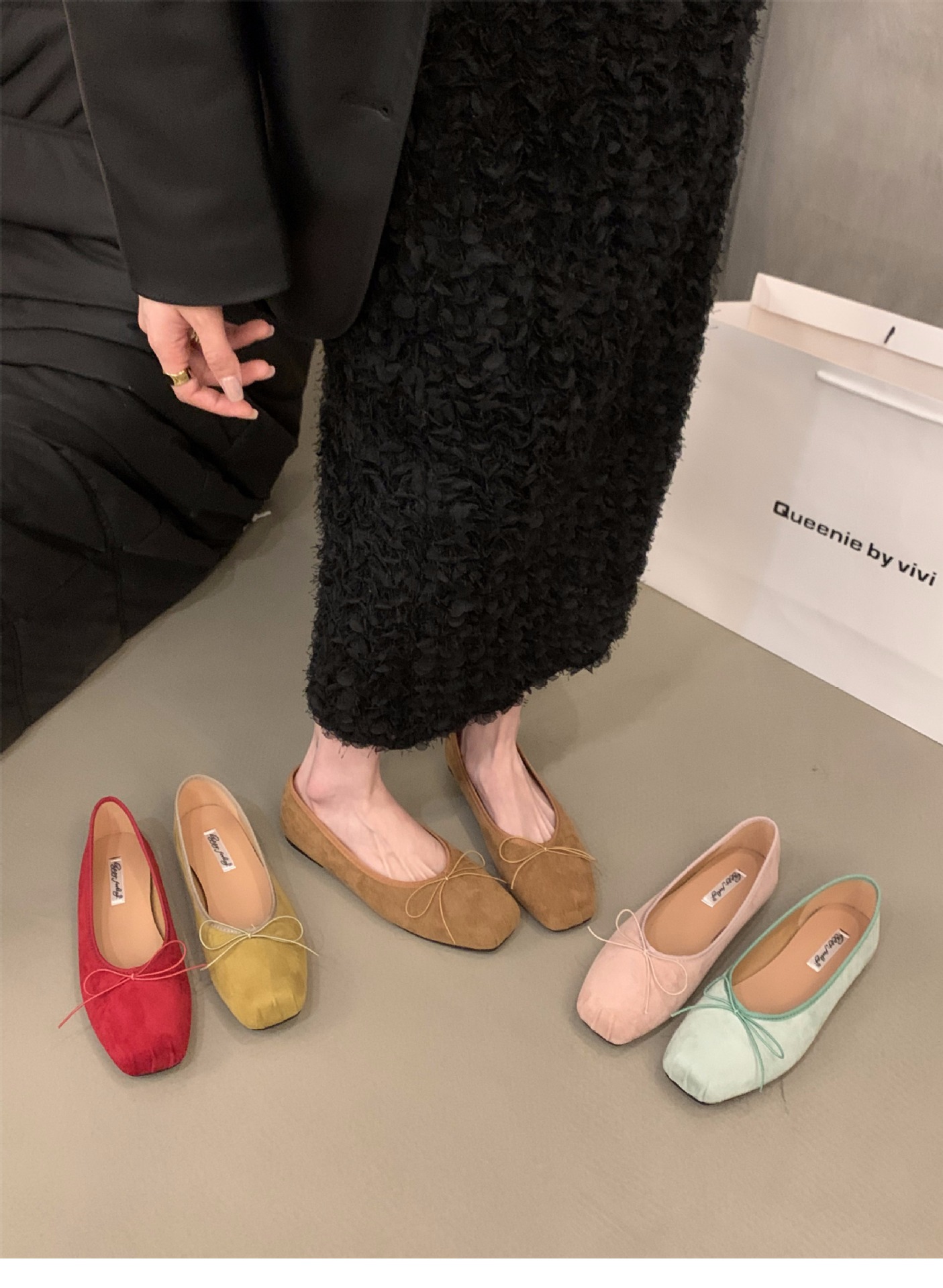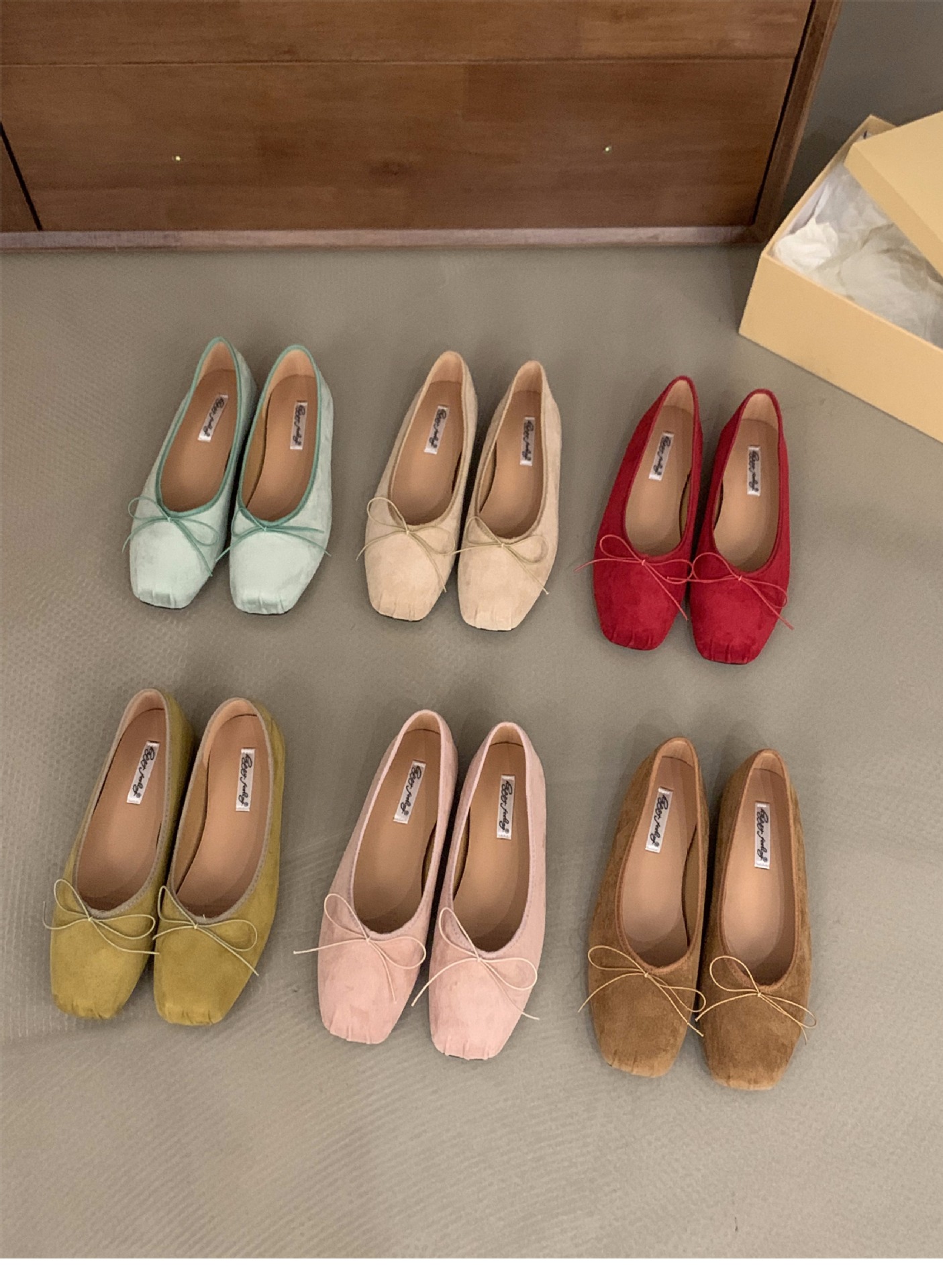 플랫 프렌치 스웨이드 스퀘어 발가락 작은 빨간 신발 여성의 2024 새로운 봄 핑크 발레 부드러운 저녁 신발스토어 가기