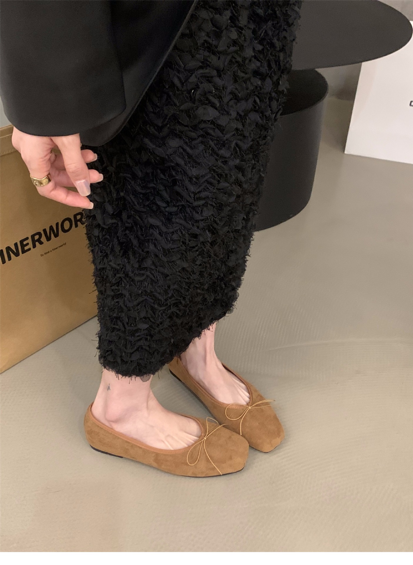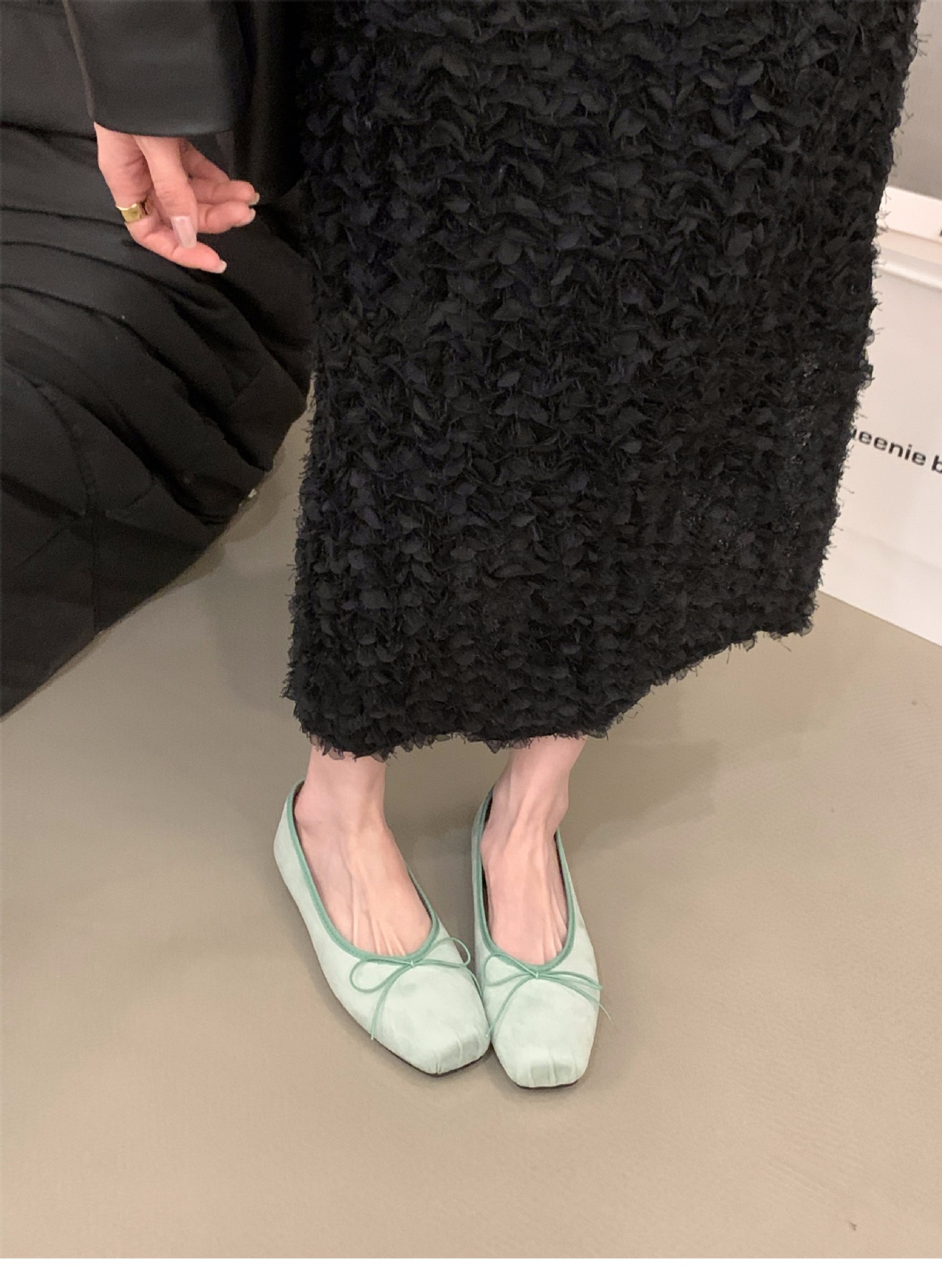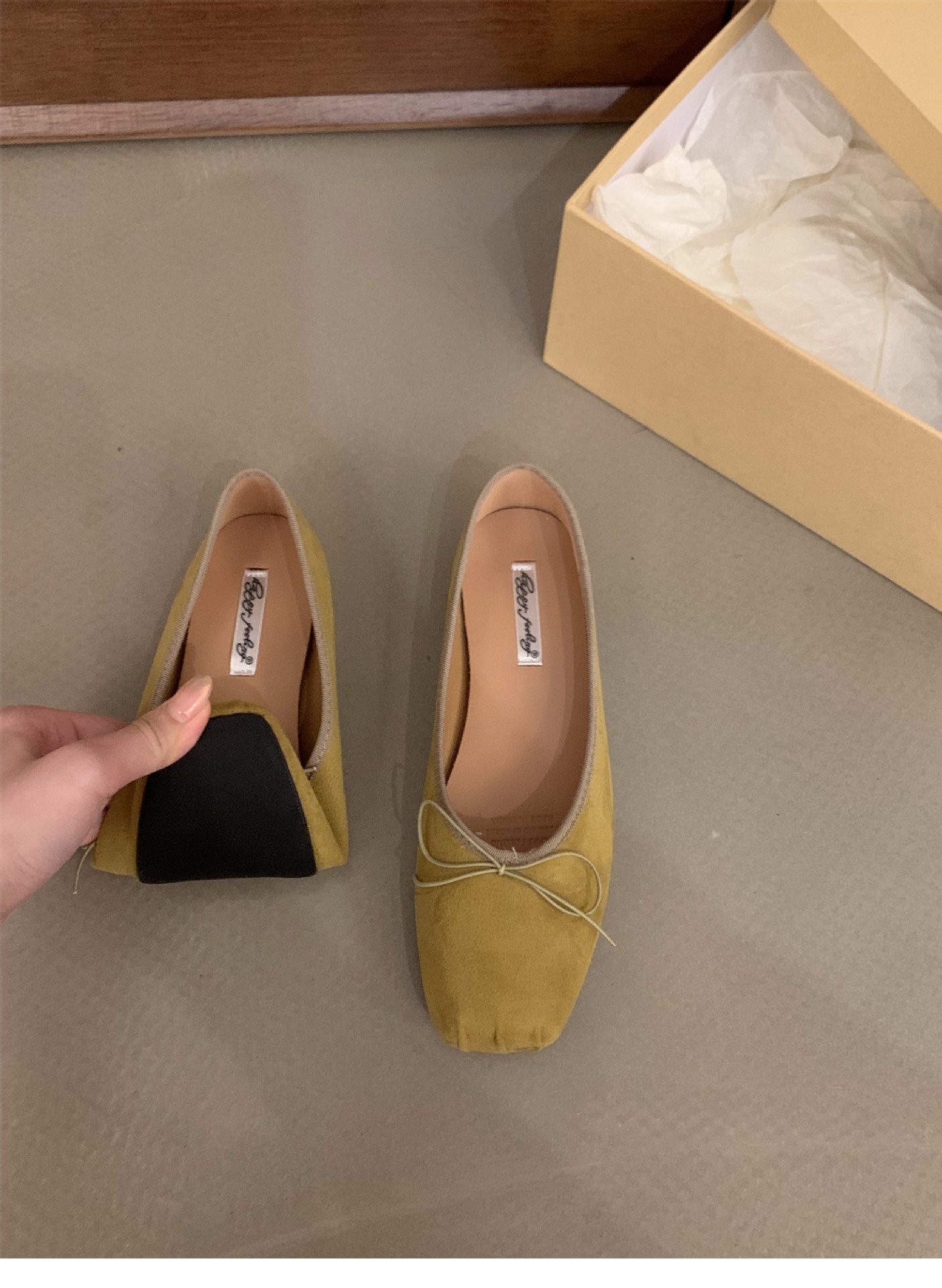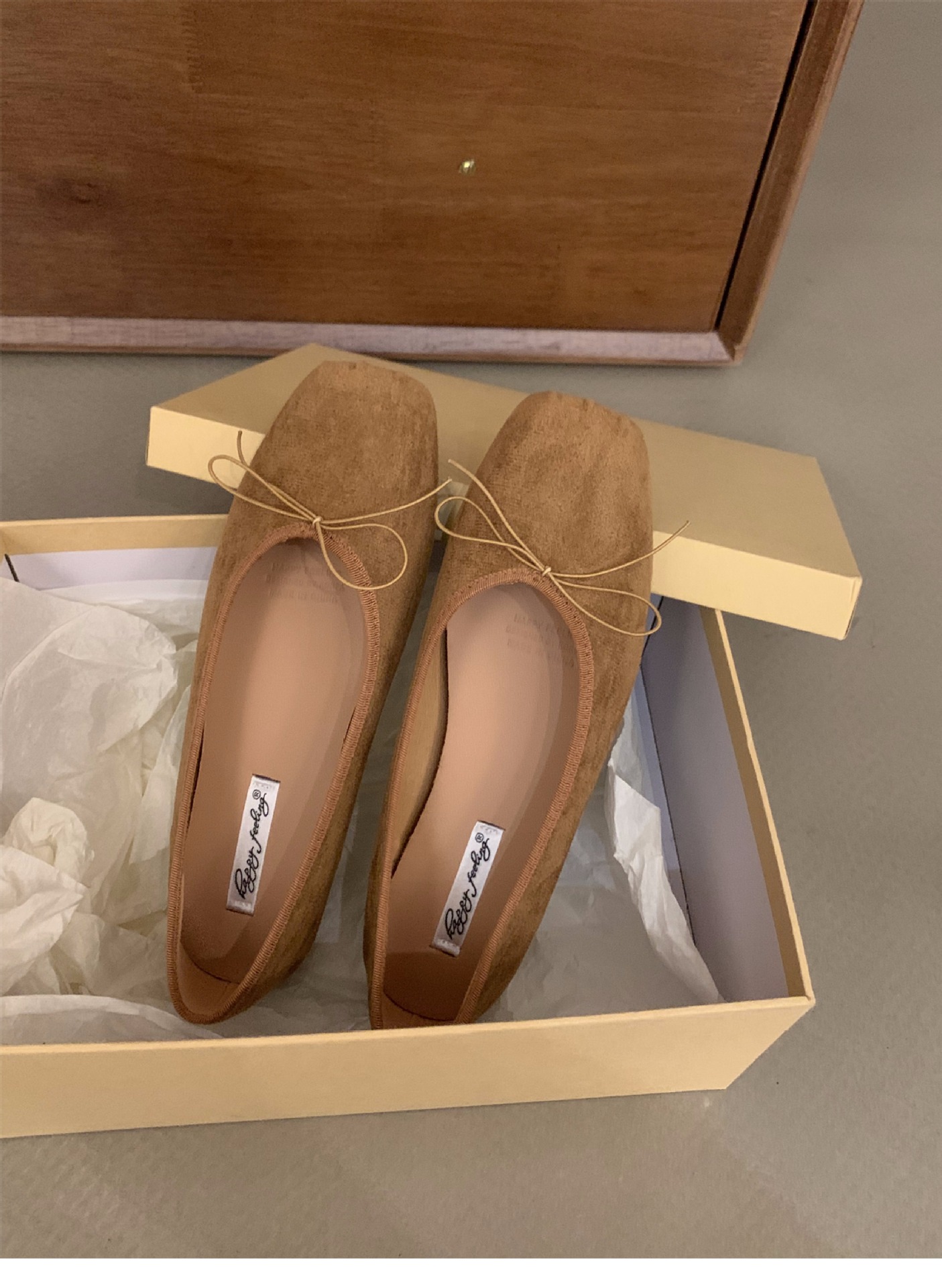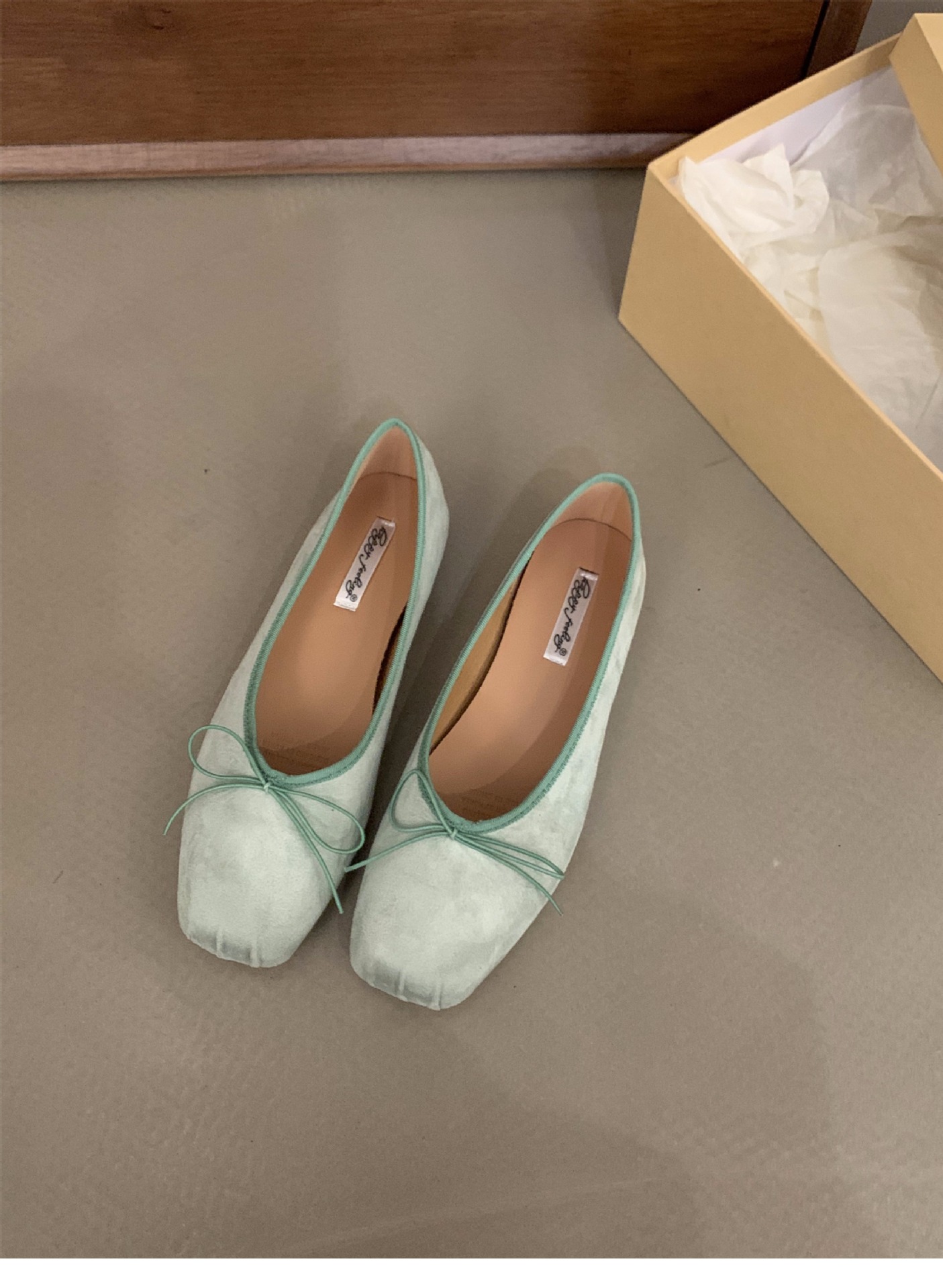 플랫 프렌치 스웨이드 스퀘어 발가락 작은 빨간 신발 여성의 2024 새로운 봄 핑크 발레 부드러운 저녁 신발스토어 가기