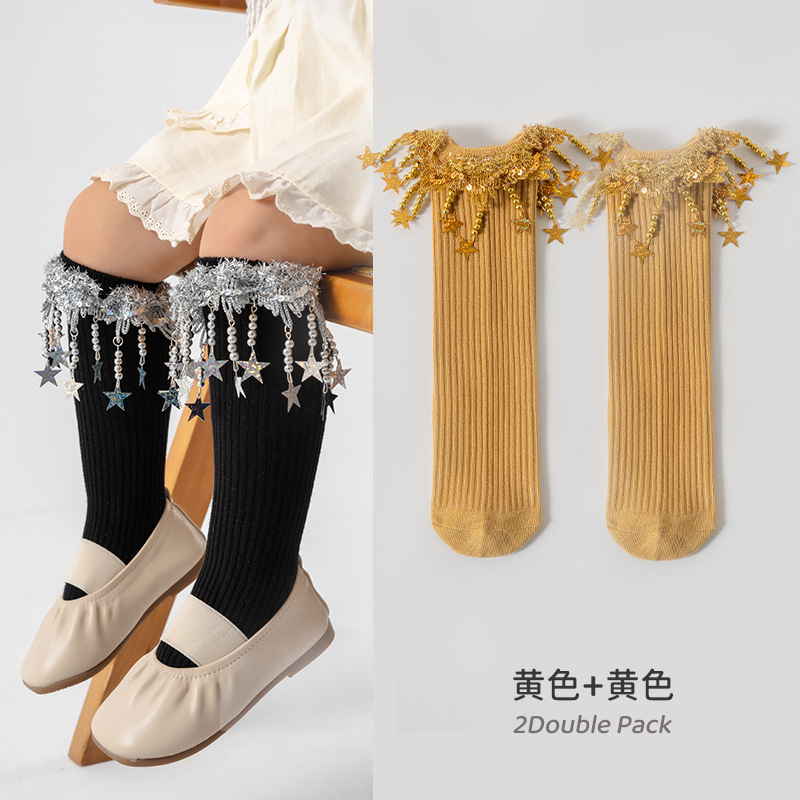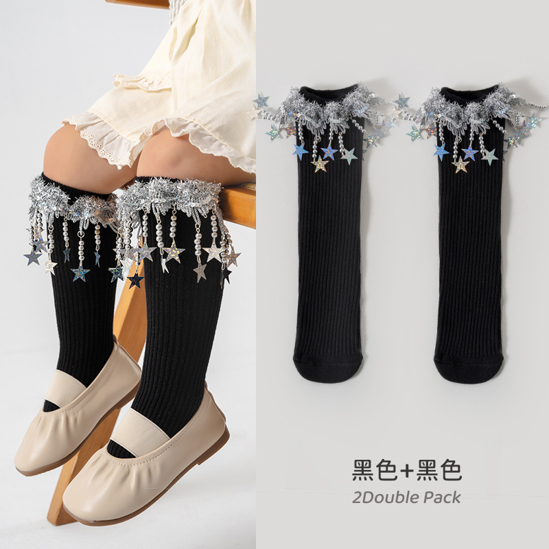 소녀 양말 봄과 가을 5 성급 트루 더블 바늘 어린이 대학 스타일 중간 길이 양말 한국식 소녀 아기 롱 튜브
