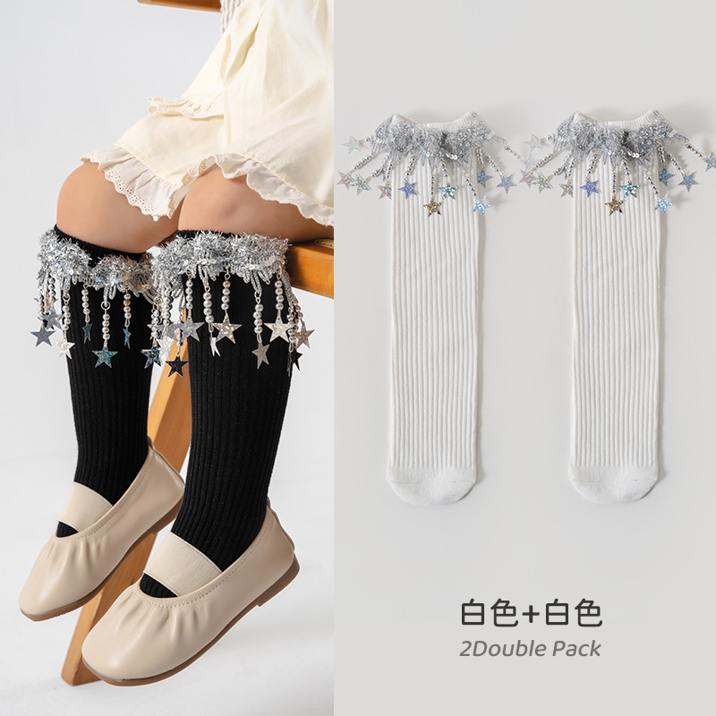 소녀 양말 봄과 가을 5 성급 트루 더블 바늘 어린이 대학 스타일 중간 길이 양말 한국식 소녀 아기 롱 튜브스토어 가기