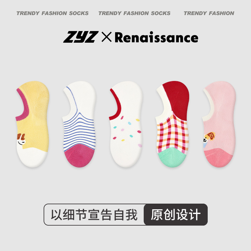 르네상스 단색 면 양말 여름 얇은 일본 스타일 귀여운 동물 미끄럼 방지 보트 양말 학생 양말 어린이 유행