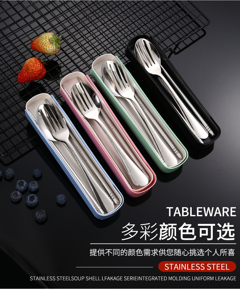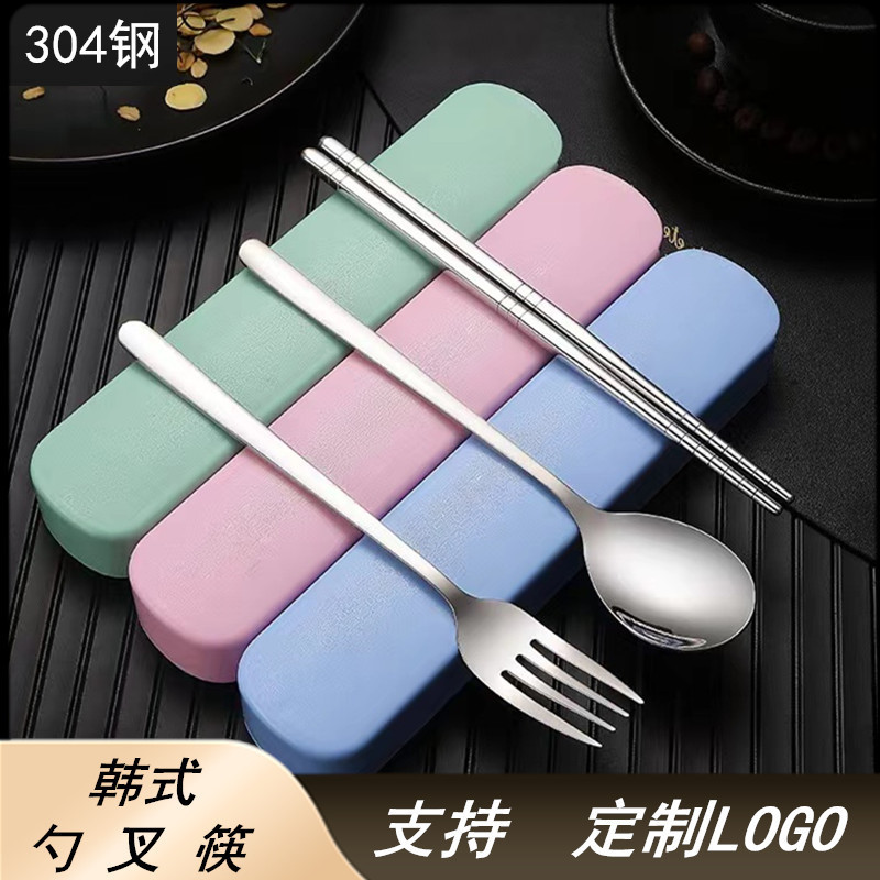 304 스테인리스 식기 세트 야외용 학생용 숟가락 젓가락 포크 세트 휴대용 3종 세트 중국풍 선물 상자스토어 가기