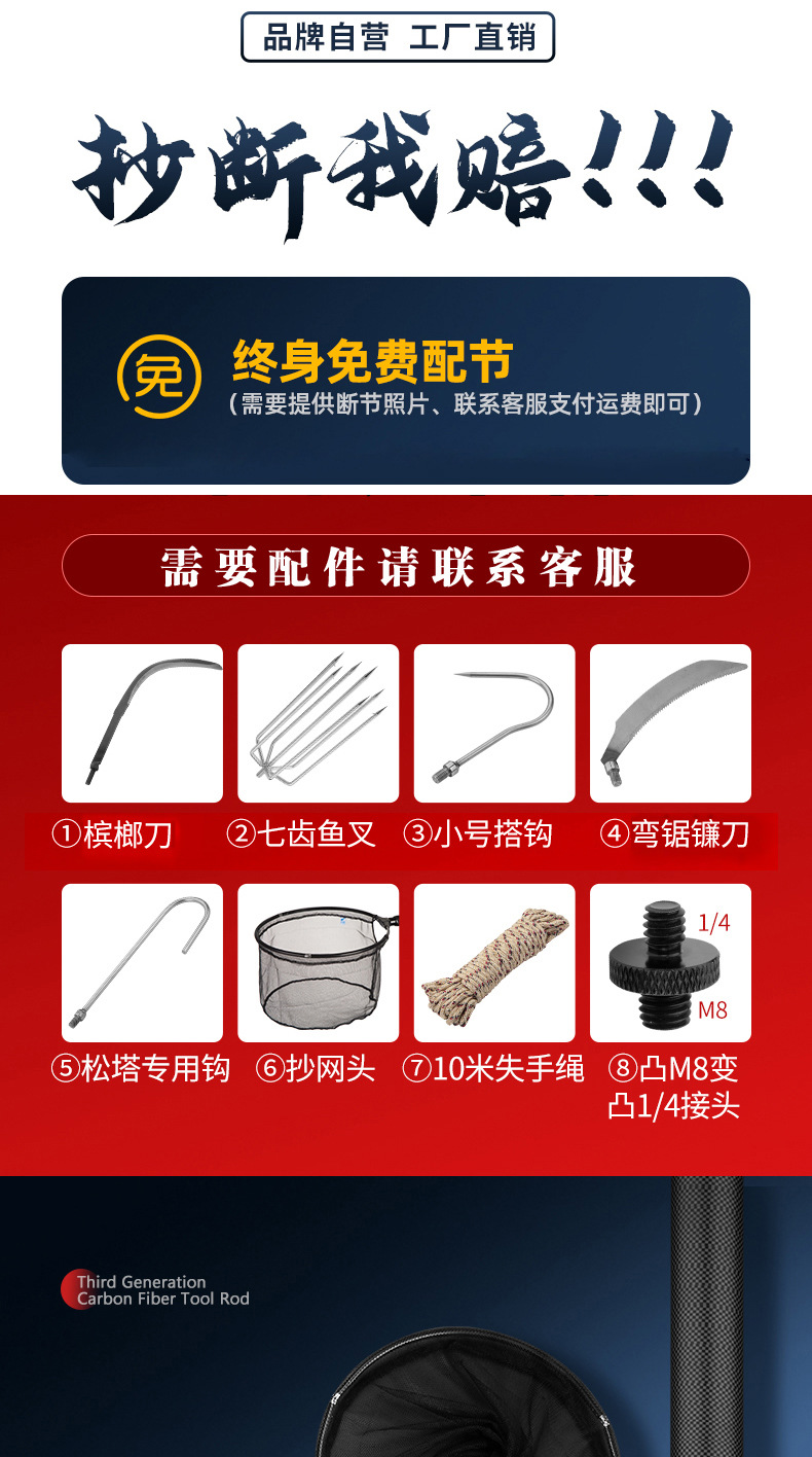 Manulife 탄소 섬유 텔레스코픽 로드 무료 포지셔닝 로드 6 m 슈퍼 하드 베어 막대 탄소 과일 따기 인공물 모잉 하푼 수비수