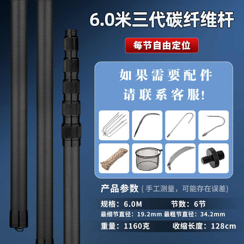 Manulife 탄소 섬유 텔레스코픽 로드 무료 포지셔닝 로드 6 m 슈퍼 하드 베어 막대 탄소 과일 따기 인공물 모잉 하푼 수비수스토어 가기