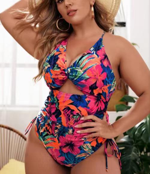 2024 새로운 유럽과 미국의 아마존 국경 지방 여성 대형 중공 레이스 업 하이 허리 원피스 비키니 수영복 여성용