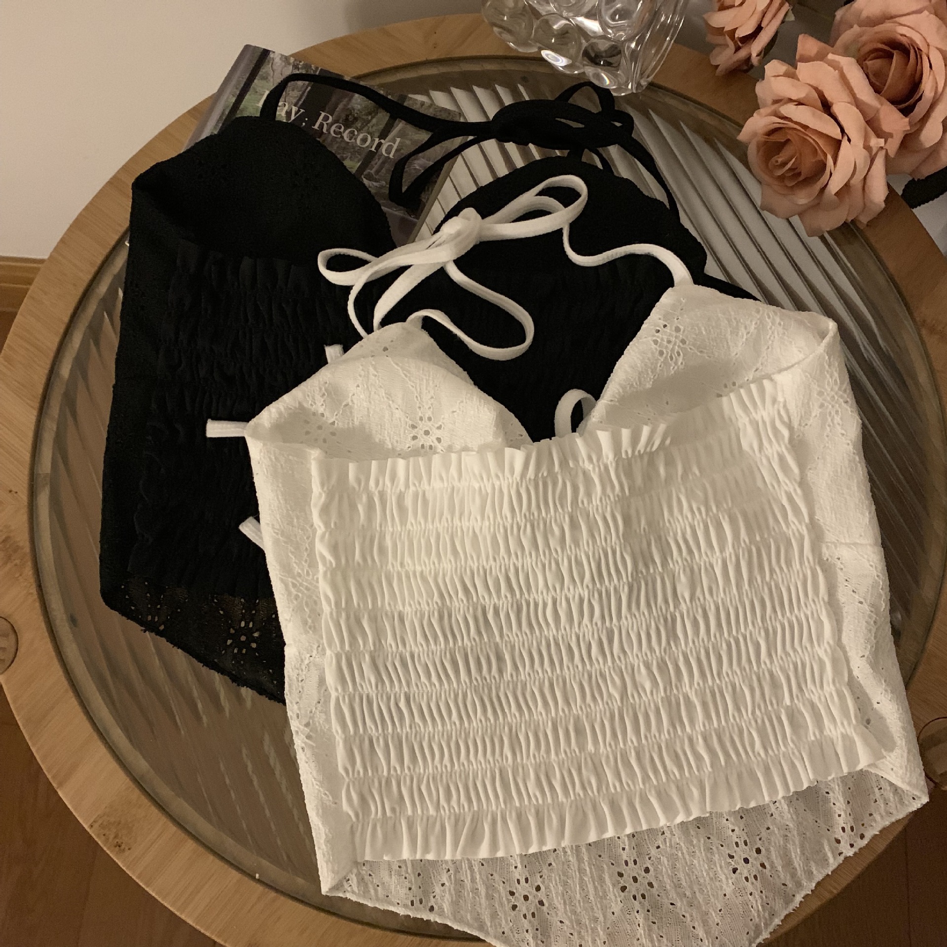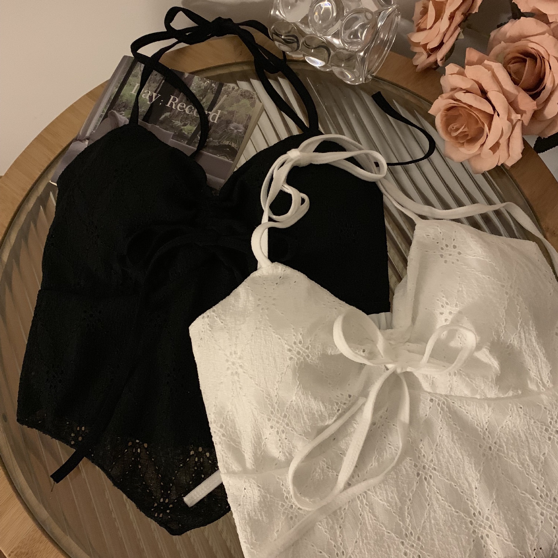 순수한 섹시한 레이스 목 넥타이 로프 슬링 활 디자인 뜨거운 소녀 가슴 패드 스트랩리스 아름다운 백탑 여성을위한