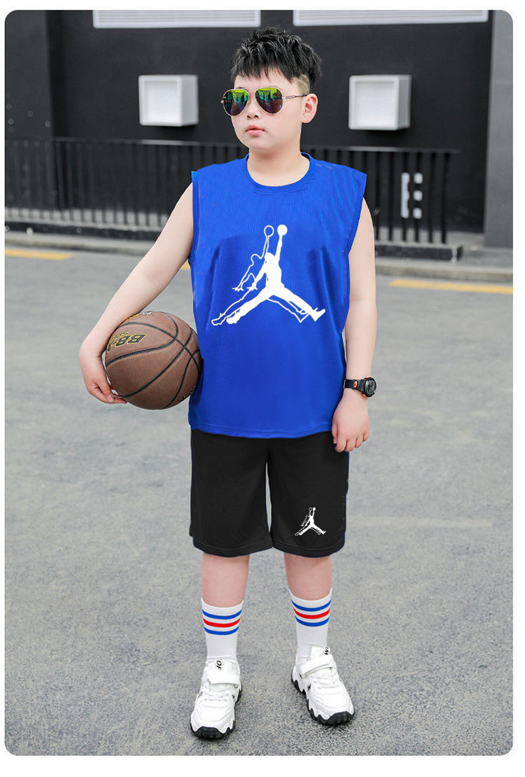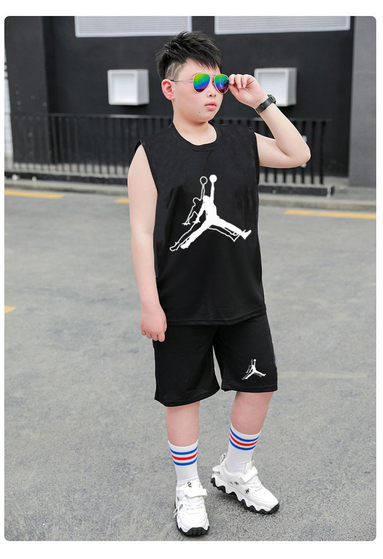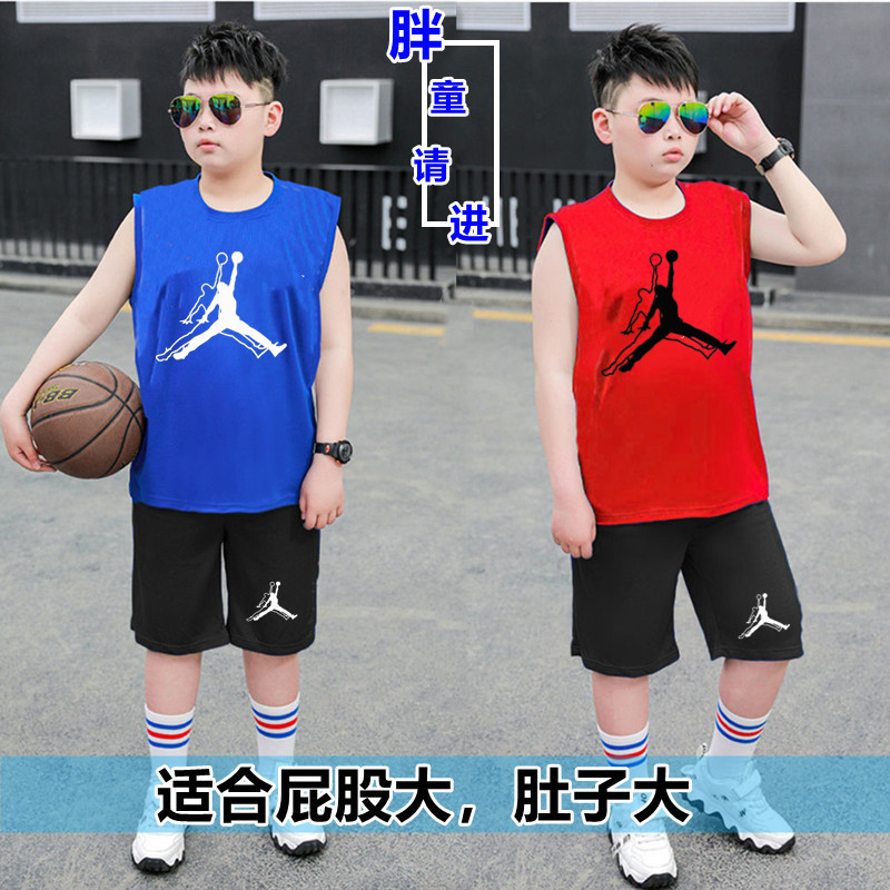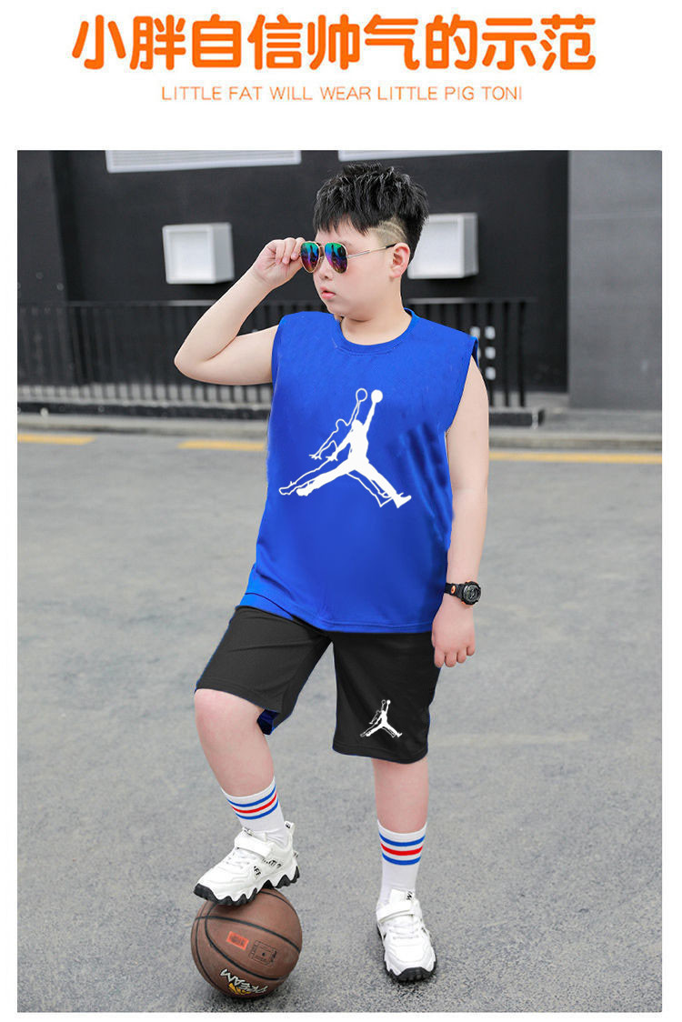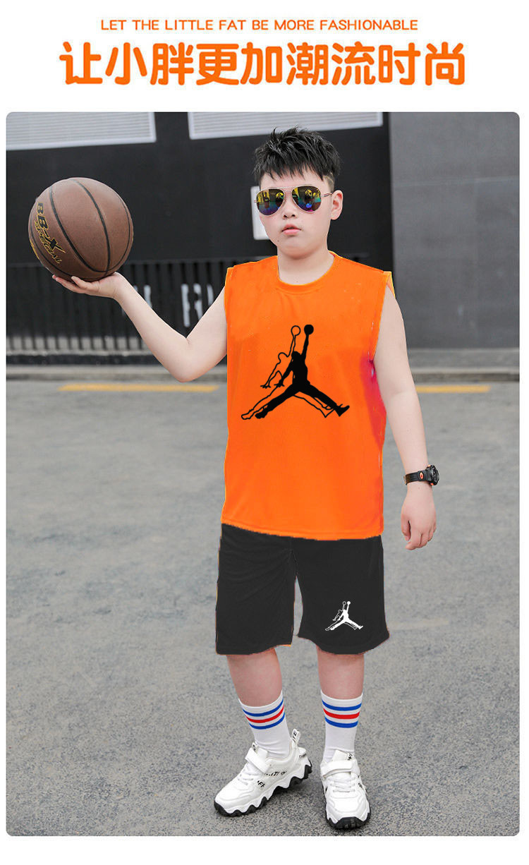 국경 간 아동복 뚱뚱한 소년 농구 세트 여름 세트 큰 아이들 느슨한 조끼 플러스 지방 플러스 빠른 건조 운동복