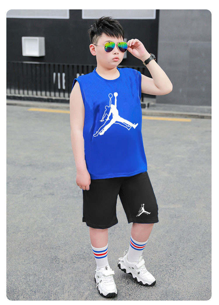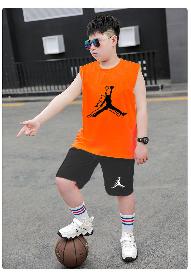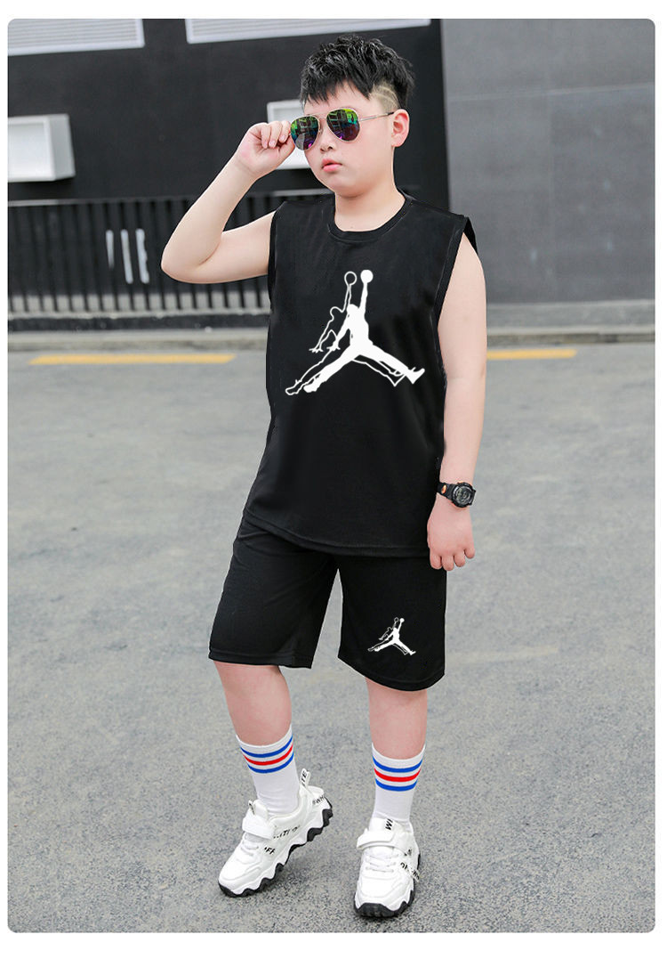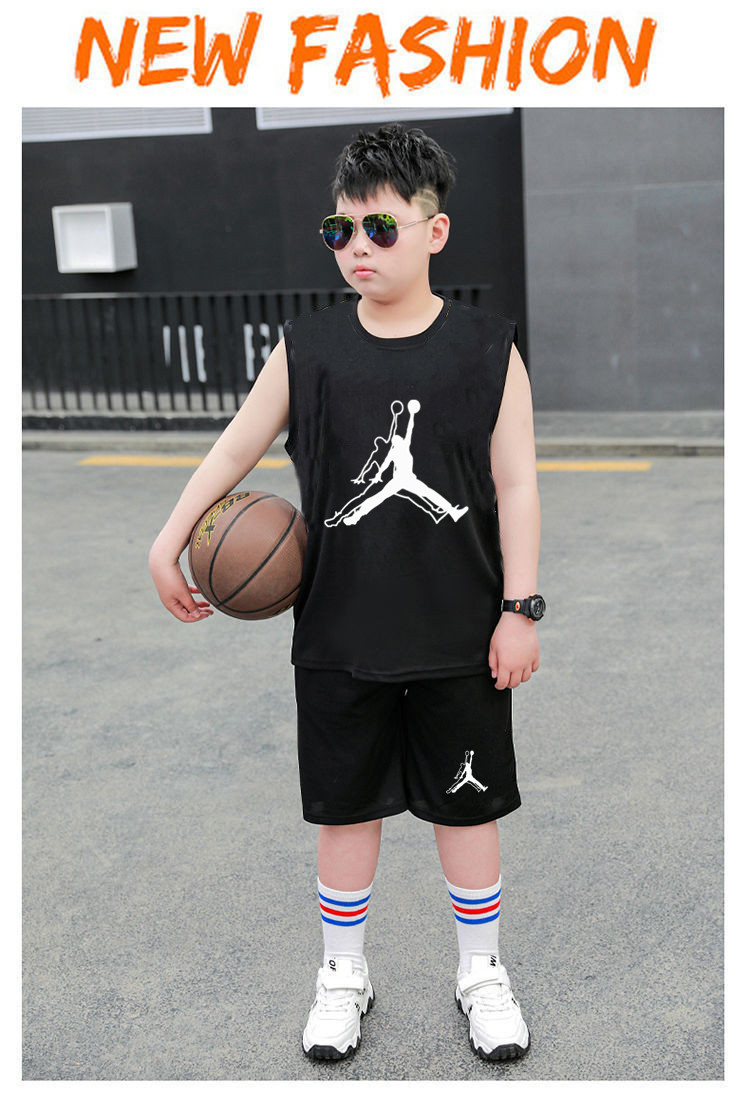국경 간 아동복 뚱뚱한 소년 농구 세트 여름 세트 큰 아이들 느슨한 조끼 플러스 지방 플러스 빠른 건조 운동복
