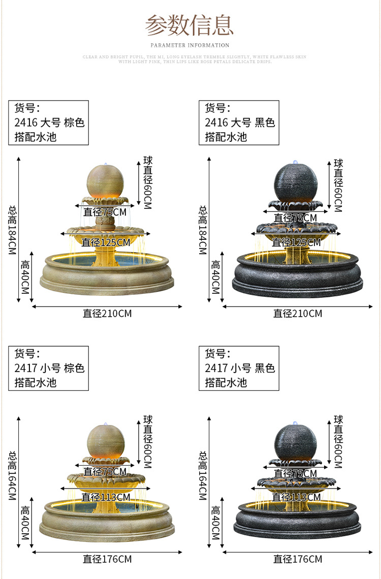 원형 물 분수 장식품, 정원 바닥 물고기 연못 수경, 실내외용, 유럽 스타일 정원 장식품, 도매 가능