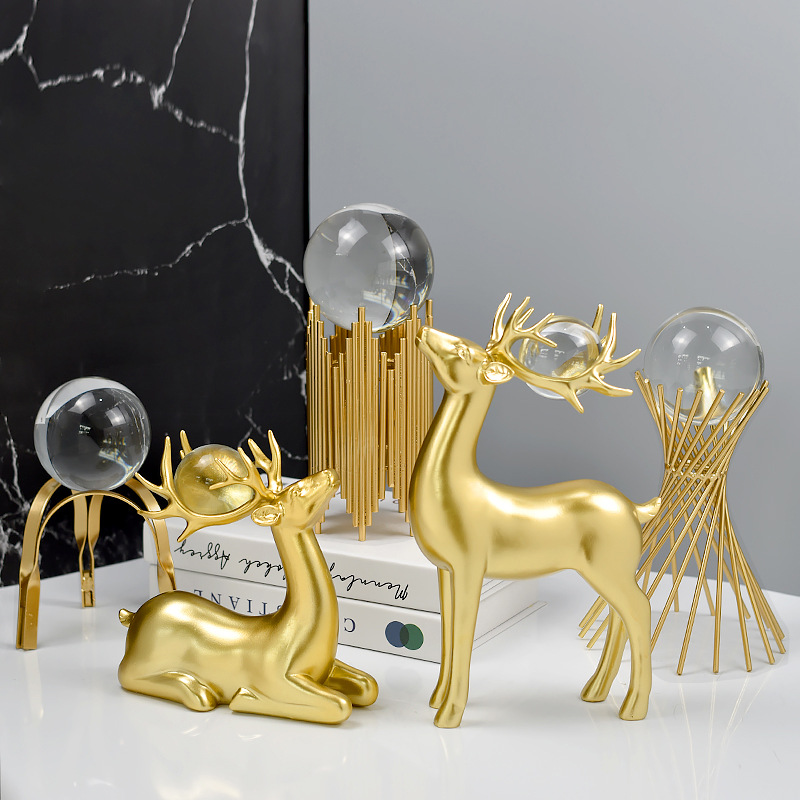 크로스보더 라이트 럭셔리 한쌍 크리스탈 볼 엘크 레진 공예품 동물 조각상 가정용 와인 캐비닛 장식품스토어 가기