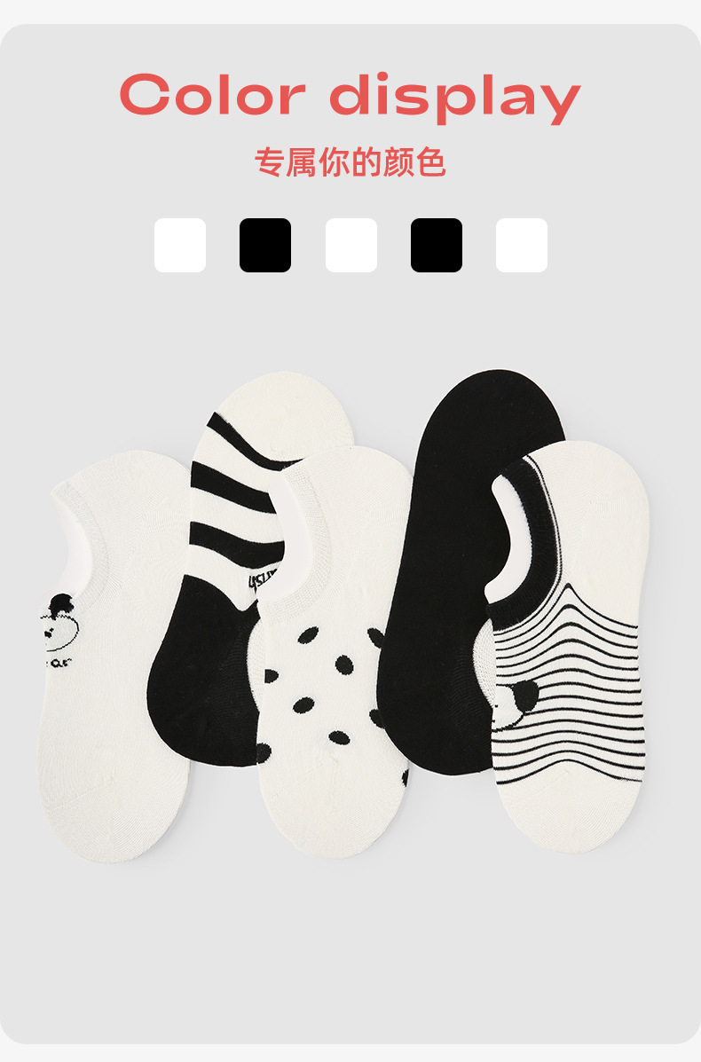 르네상스 보트 양말 여성용 트렌디 한 통기성 땀 흡수 안티 드롭 힐 보이지 않는 양말 흑백 귀여운 강아지 여름 면화스토어 가기