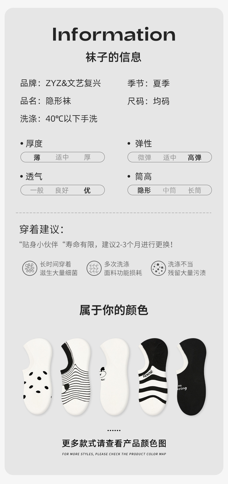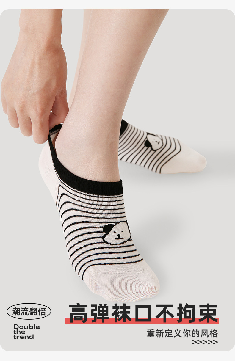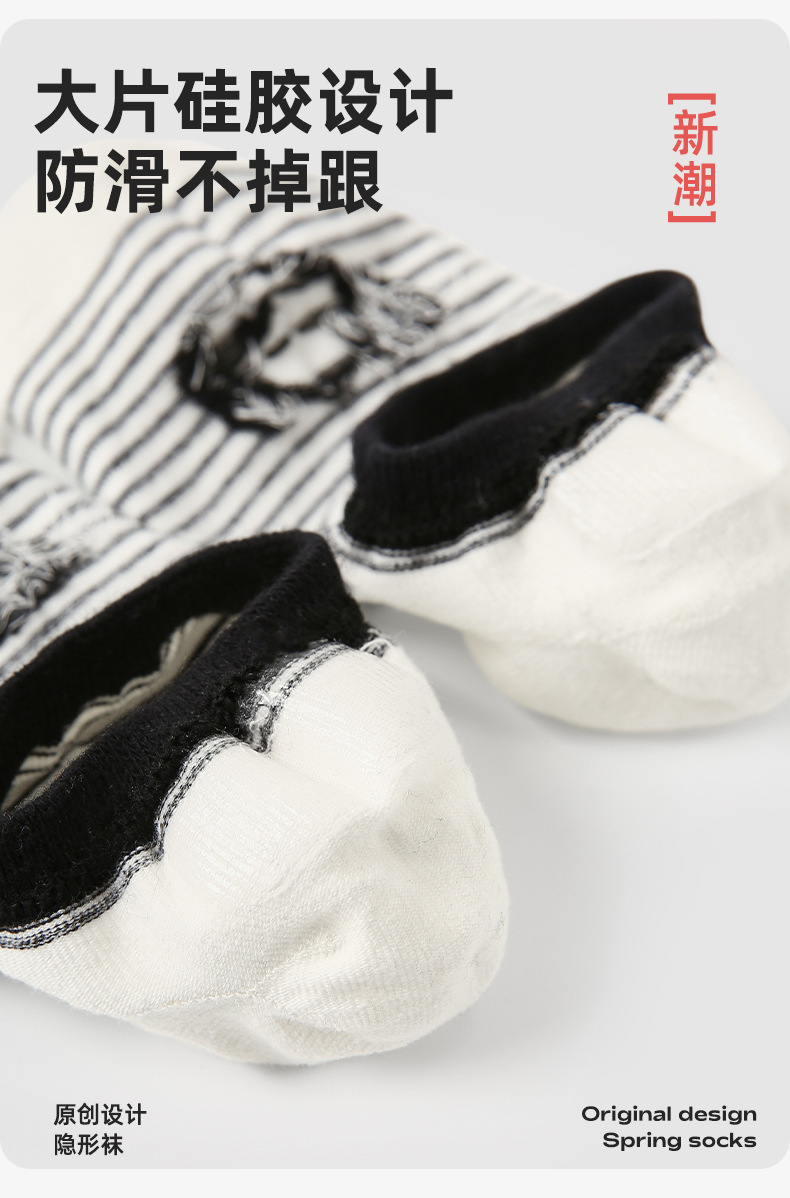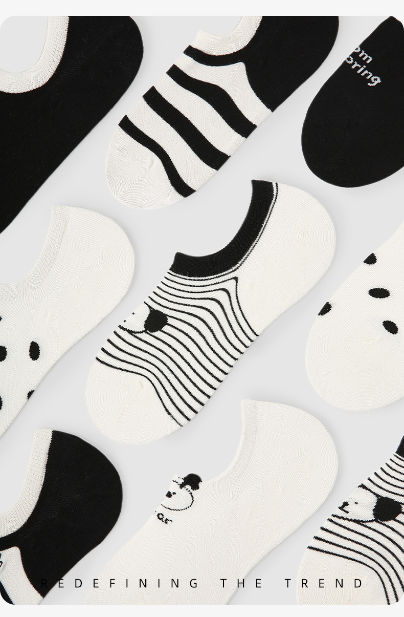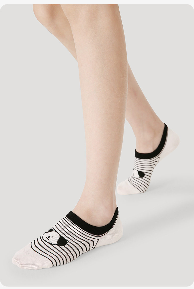 르네상스 보트 양말 여성용 트렌디 한 통기성 땀 흡수 안티 드롭 힐 보이지 않는 양말 흑백 귀여운 강아지 여름 면화