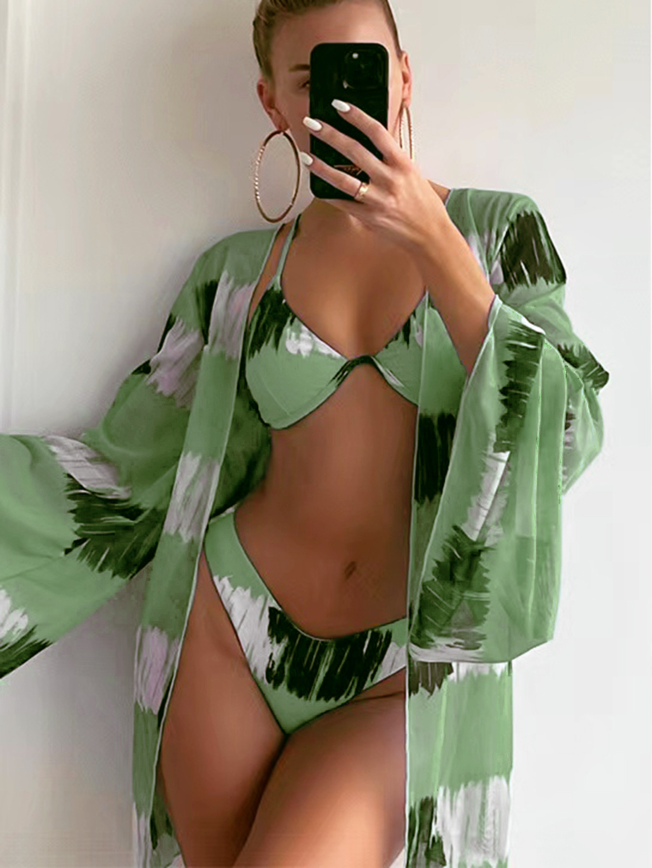 2024 새로운 유럽과 미국의 국경 간 섹시 스톤즈 인쇄 선 스크린 BINKI 비키니 3 피스 수영복 여성스토어 가기