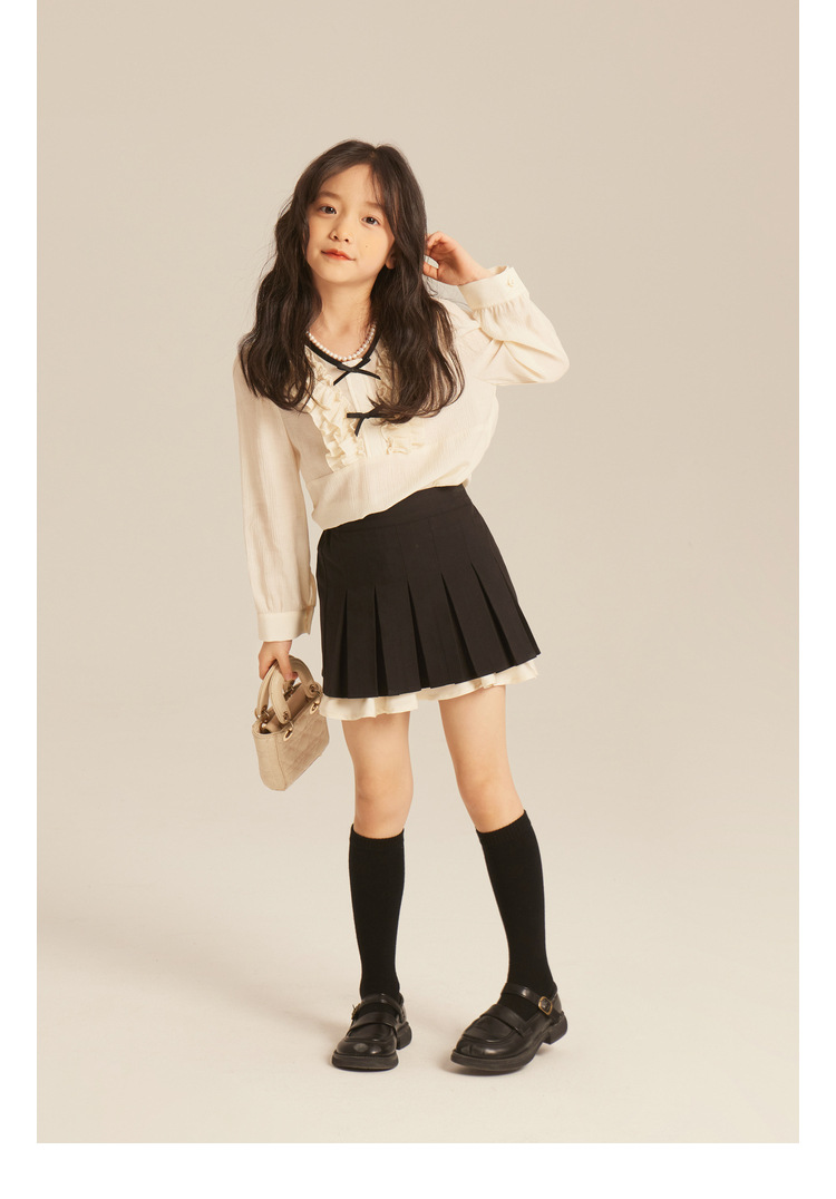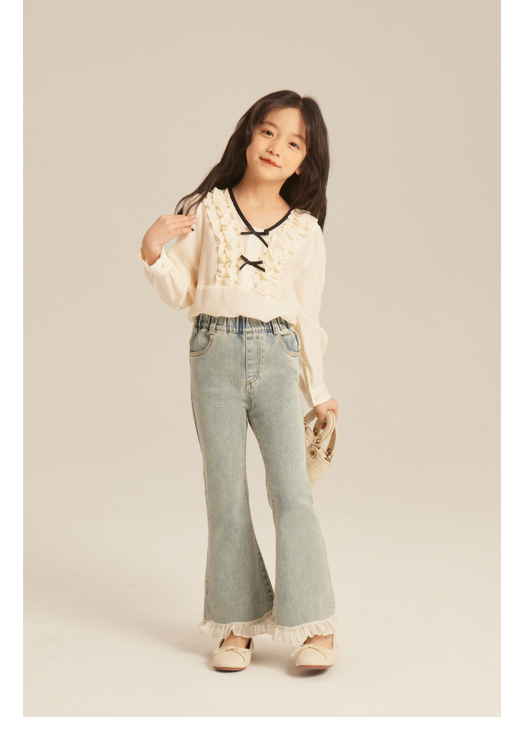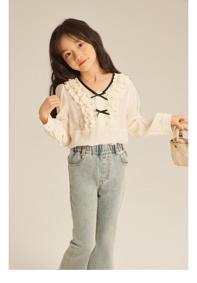 Amybaby Girls 셔츠 어린이 달콤한 우아한 활 화이트 레이스 패션 V 넥 하이 엔드 센스 탑스토어 가기