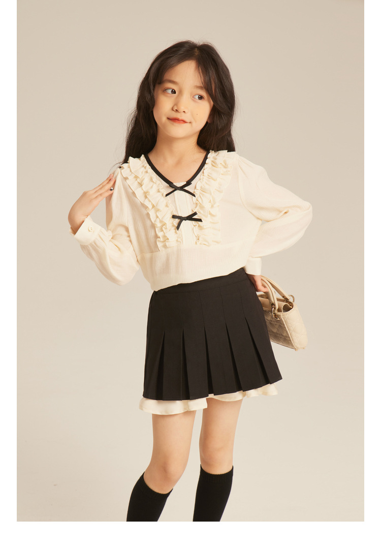 Amybaby Girls 셔츠 어린이 달콤한 우아한 활 화이트 레이스 패션 V 넥 하이 엔드 센스 탑
