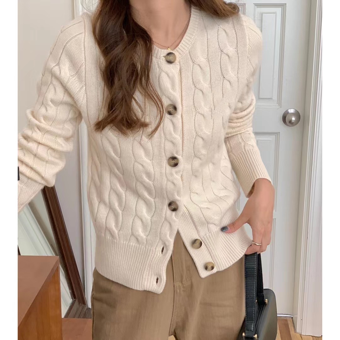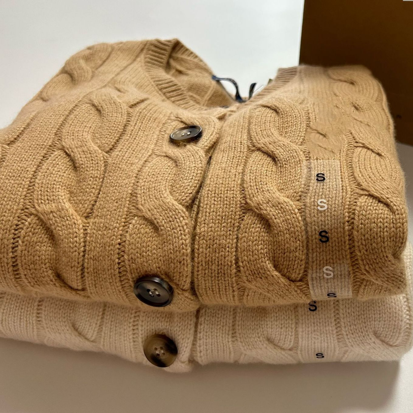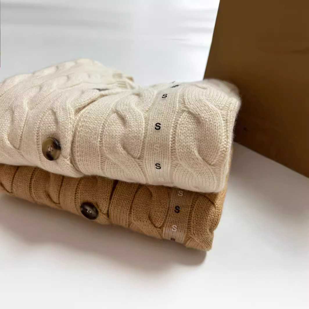 스윕 사이즈 하이 퀄리티 RL 랄프 포니 자수 양모 캐시미어 니트 카디건 재킷 트위스트 스웨터 여성