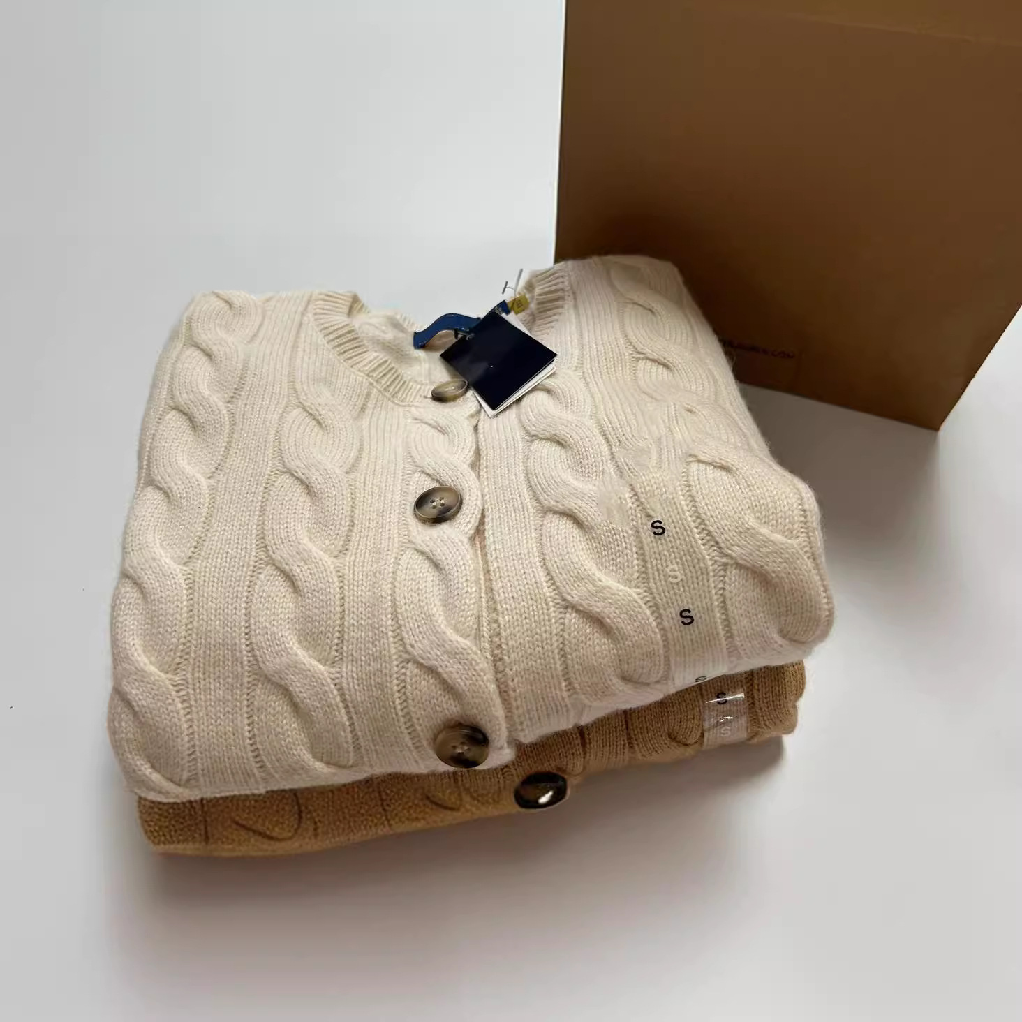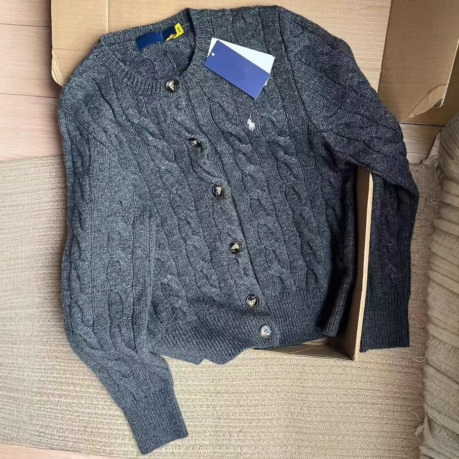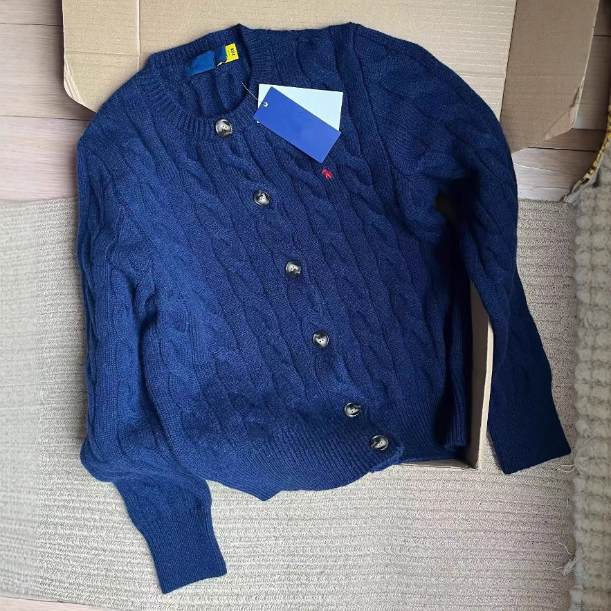 스윕 사이즈 하이 퀄리티 RL 랄프 포니 자수 양모 캐시미어 니트 카디건 재킷 트위스트 스웨터 여성스토어 가기