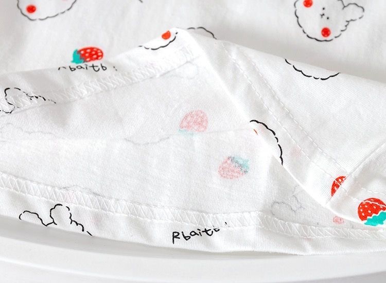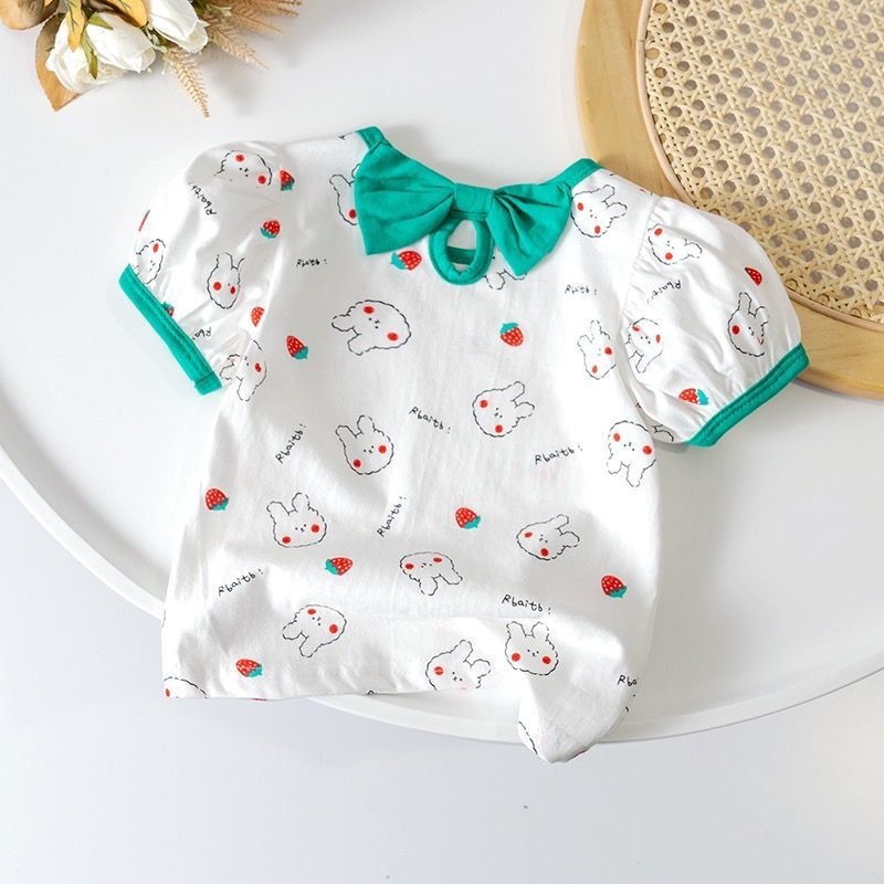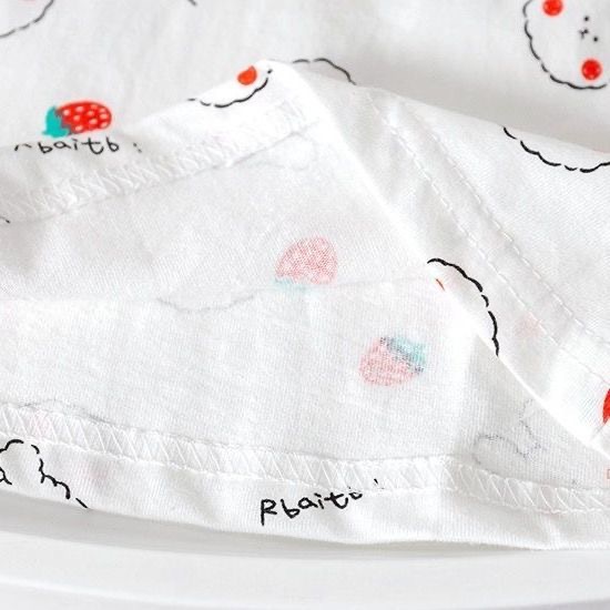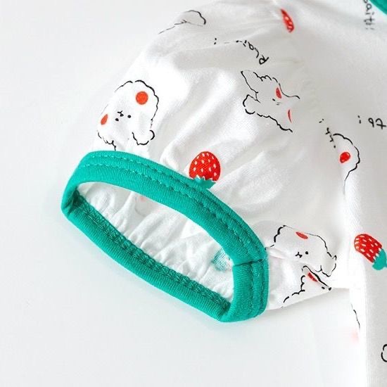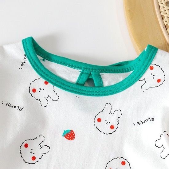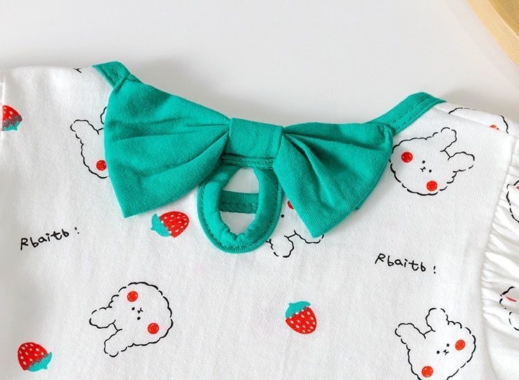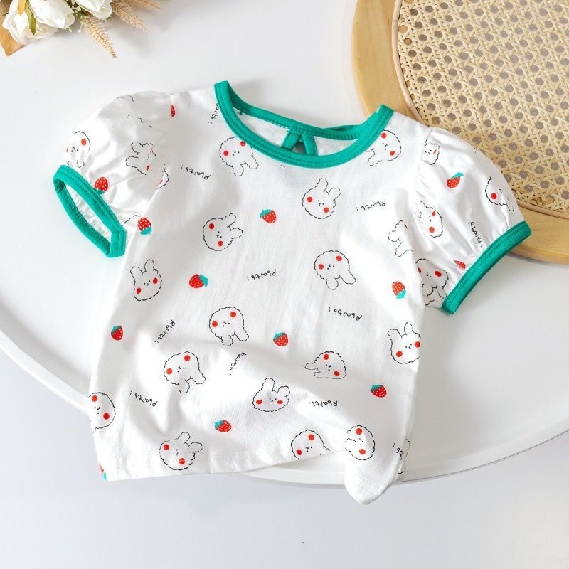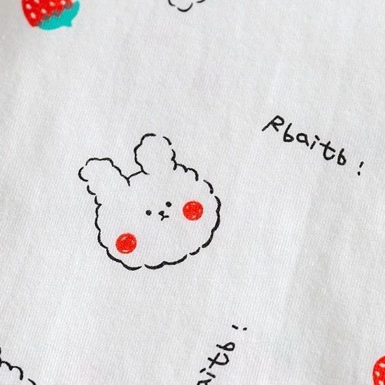 여아용 면 티셔츠 2024 여름 새로운 귀여운 딸기 토끼 반팔 상단 아기 소녀스토어 가기