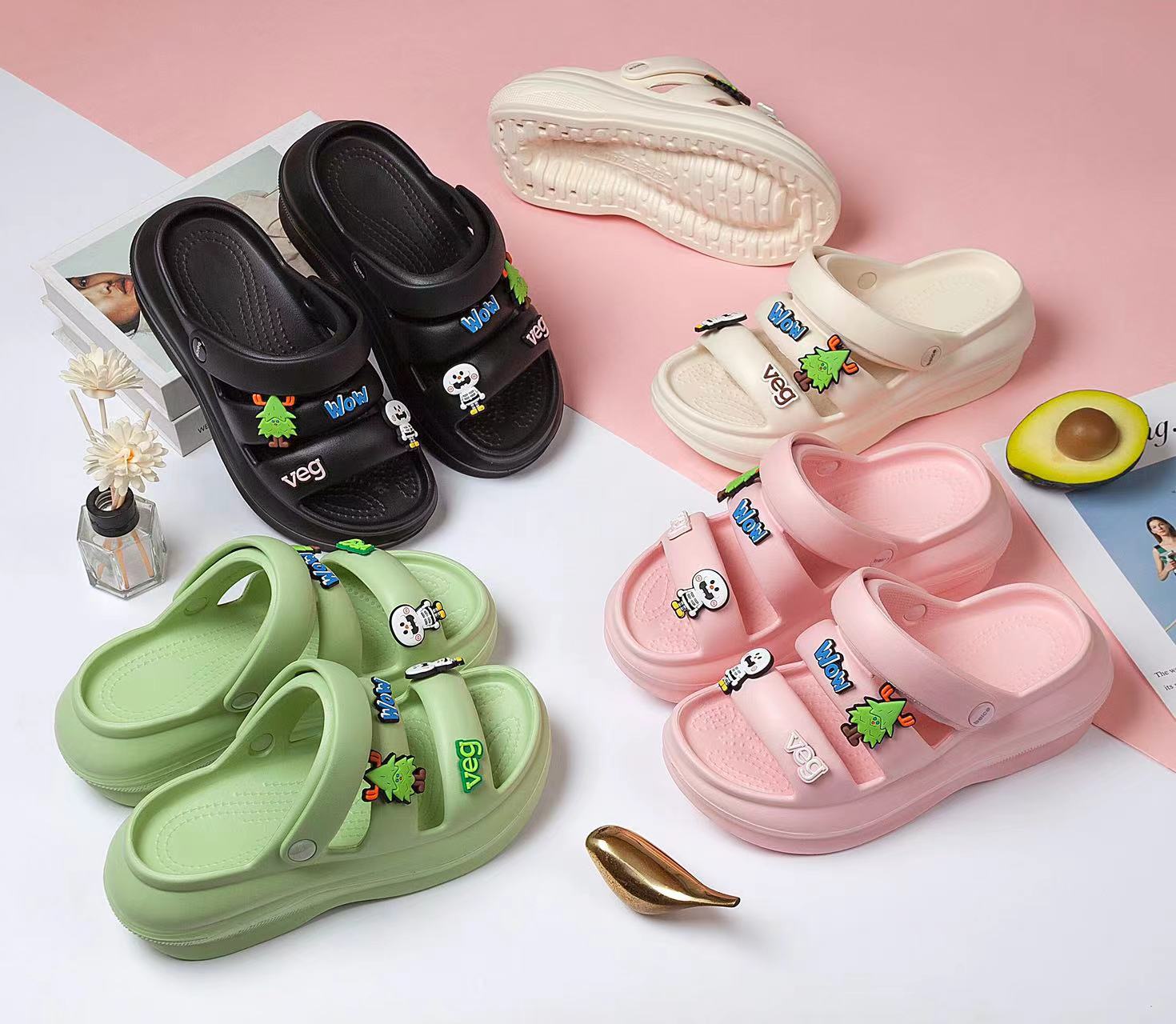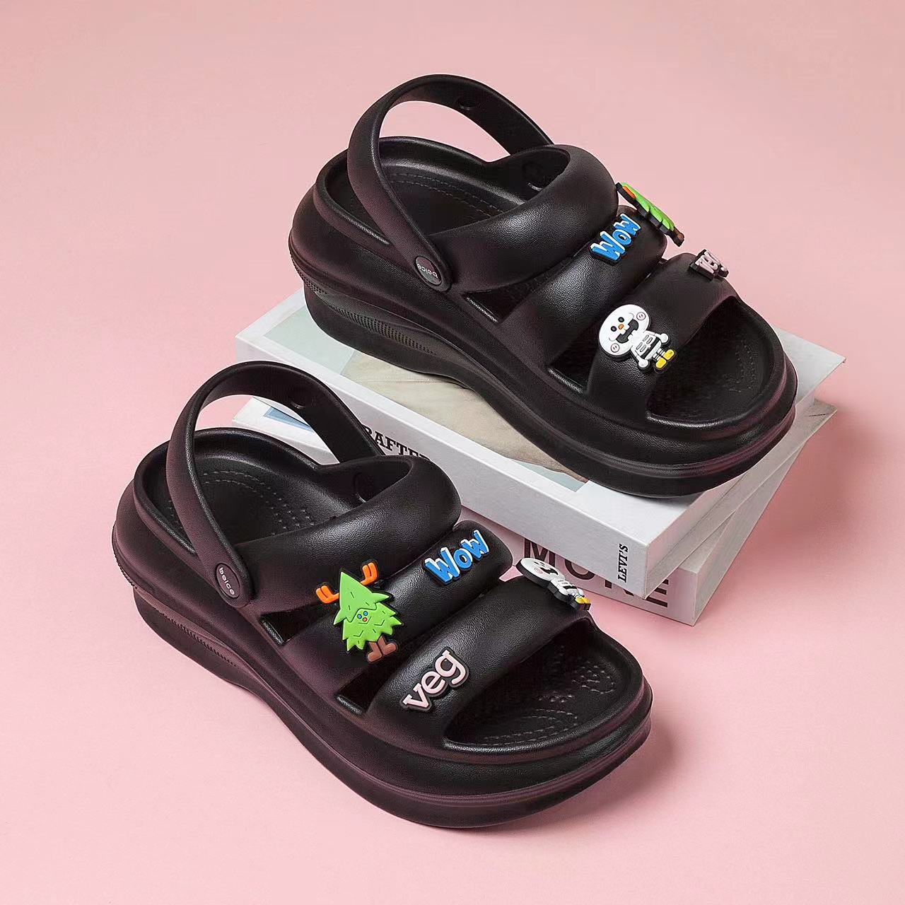 2024 년 여름 새로운 여성 샌들 두꺼운 밑창 한국 패션 캐주얼 비치 샌들 대외 무역 국경 도매스토어 가기