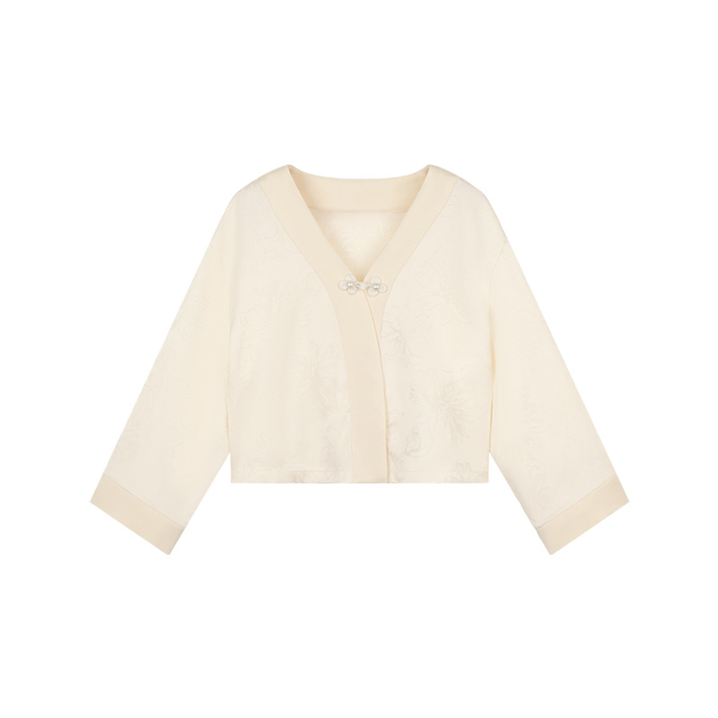 • 중국식 자카드 V 넥 긴팔 셔츠