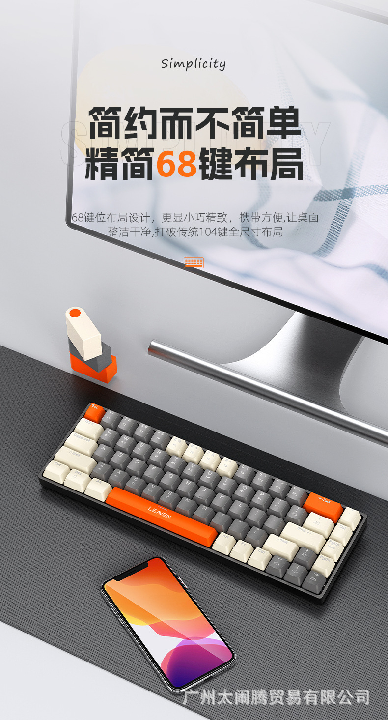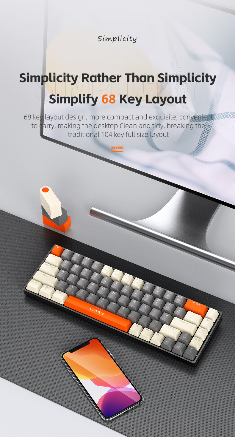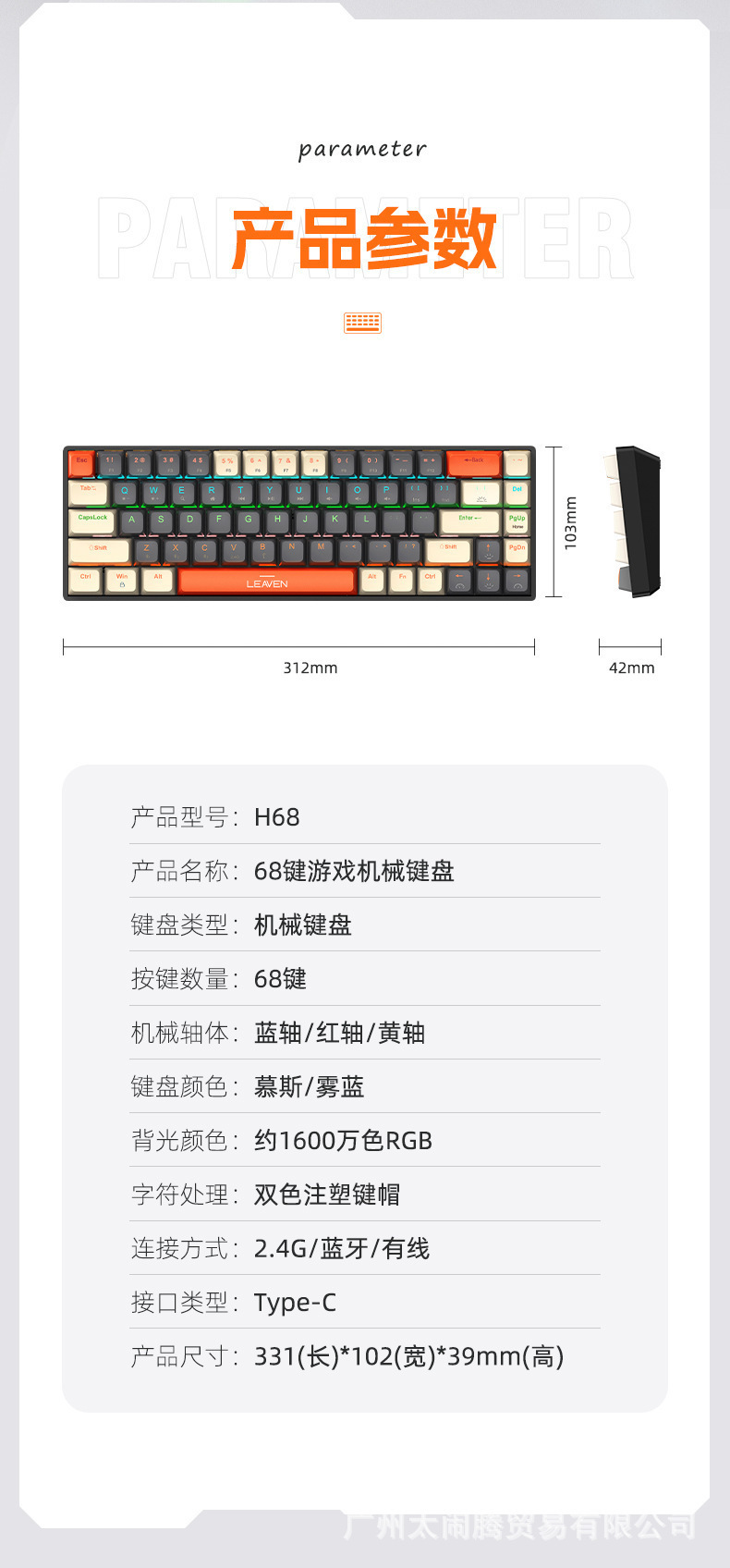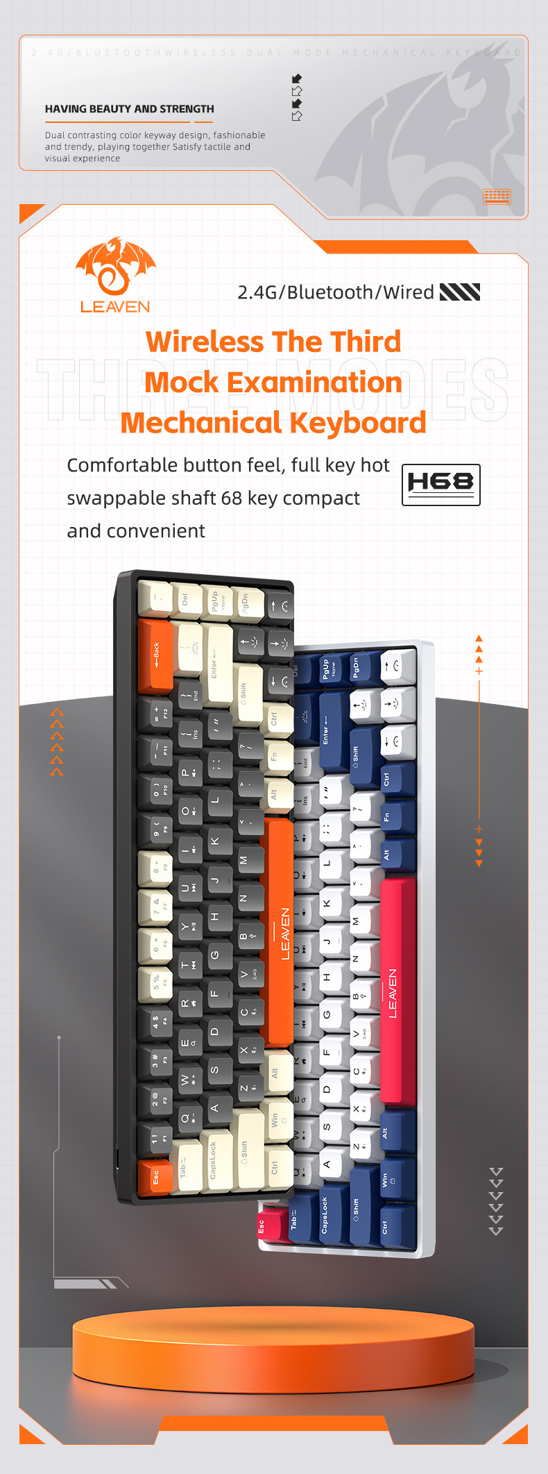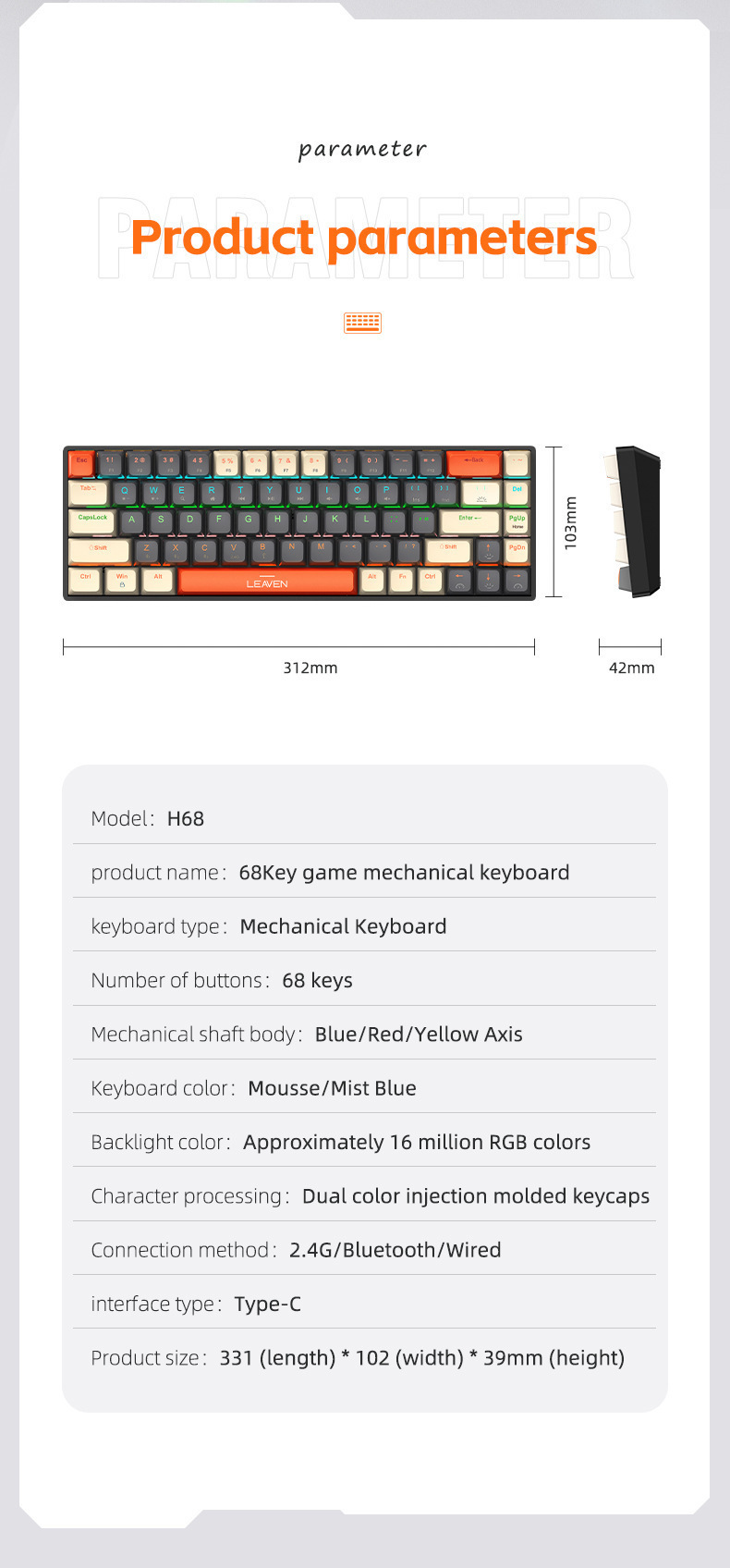 • H68 화이트 그레이 오렌지 그린 샤프트 업그레이드 에디션 (BT5.0 무선 2.4G 유선 유형-c 세 모듈)