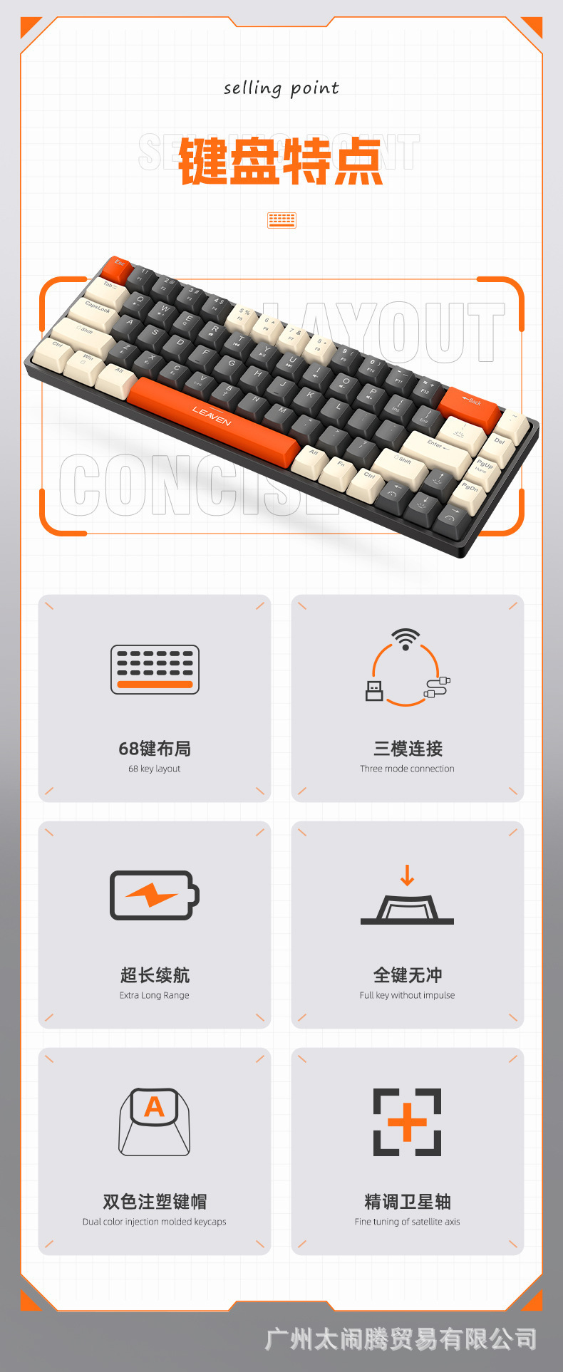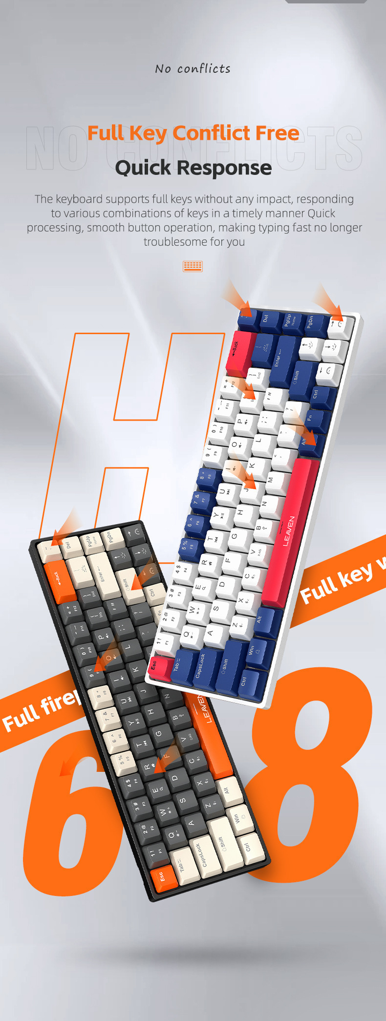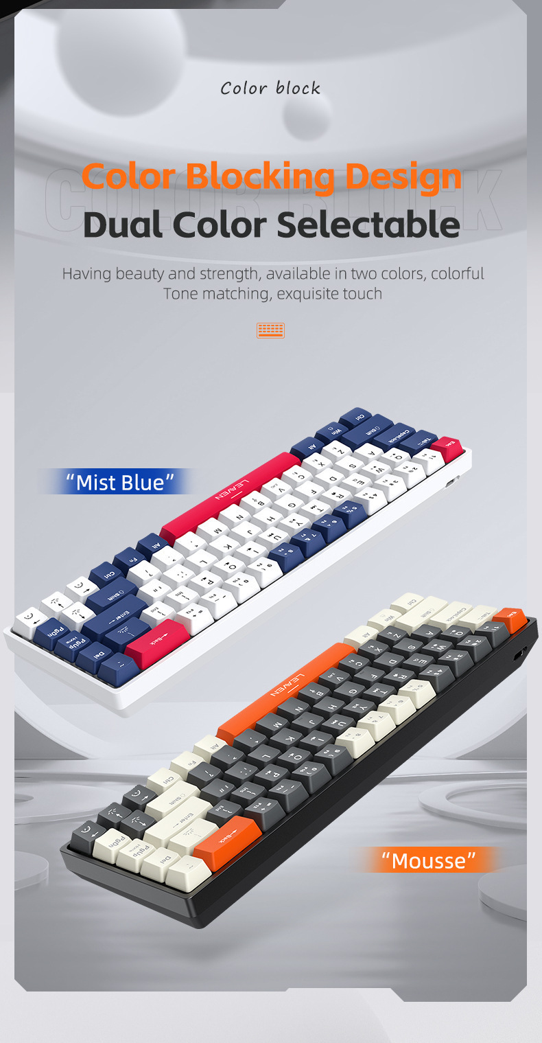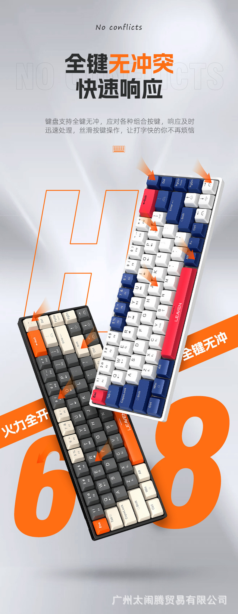 • H68 화이트 그레이 오렌지 그린 샤프트 업그레이드 에디션 (BT5.0 무선 2.4G 유선 유형-c 세 모듈)