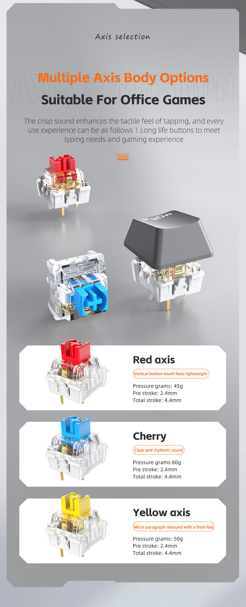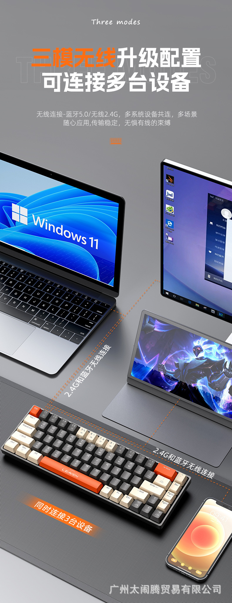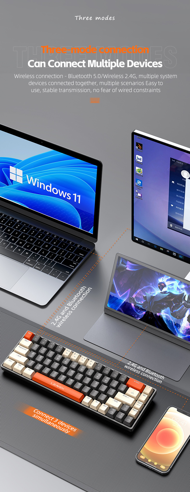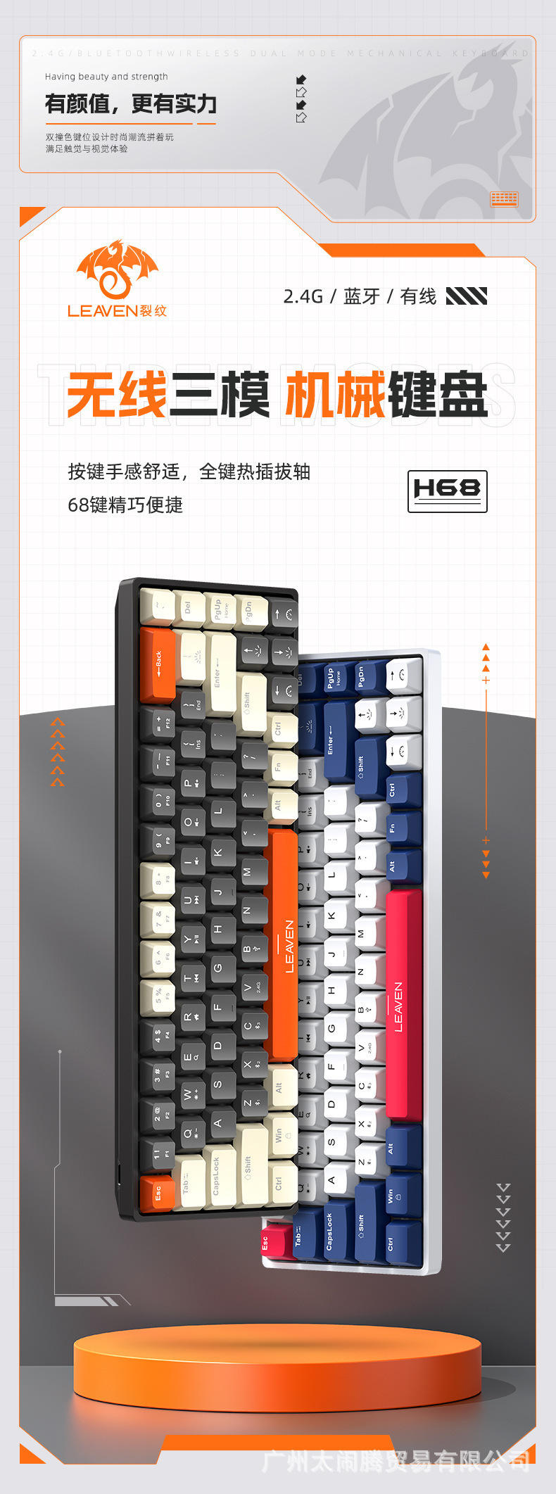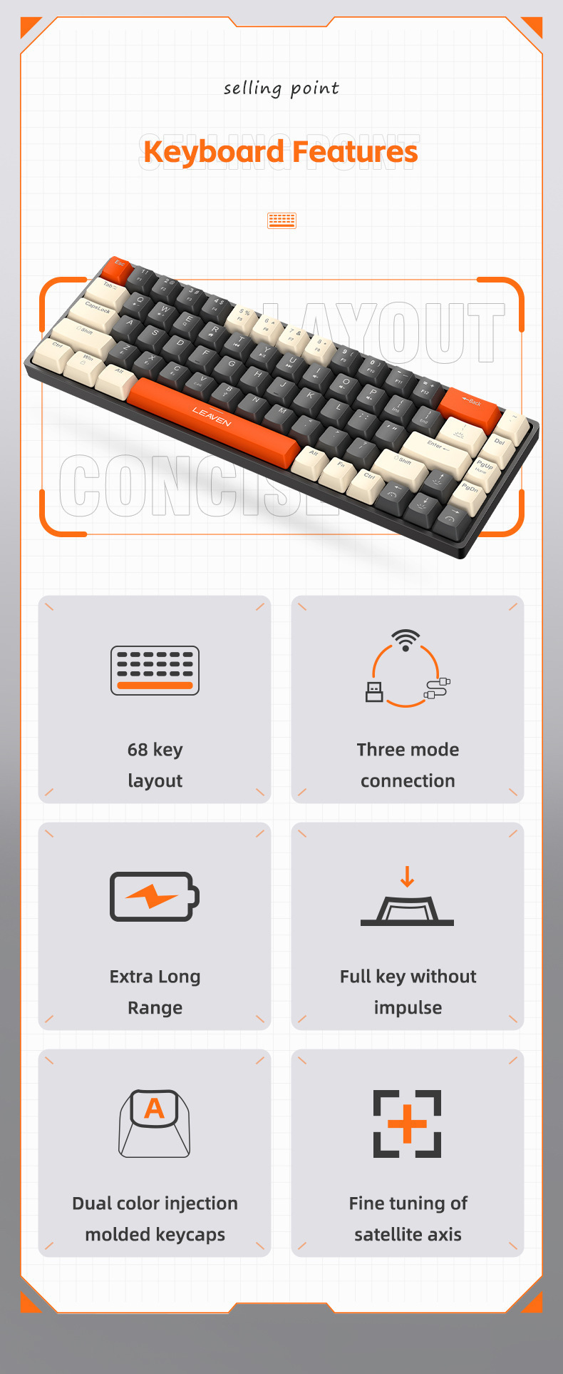 • H68 화이트 그레이 오렌지 그린 샤프트 업그레이드 에디션 (BT5.0 무선 2.4G 유선 유형-c 세 모듈)