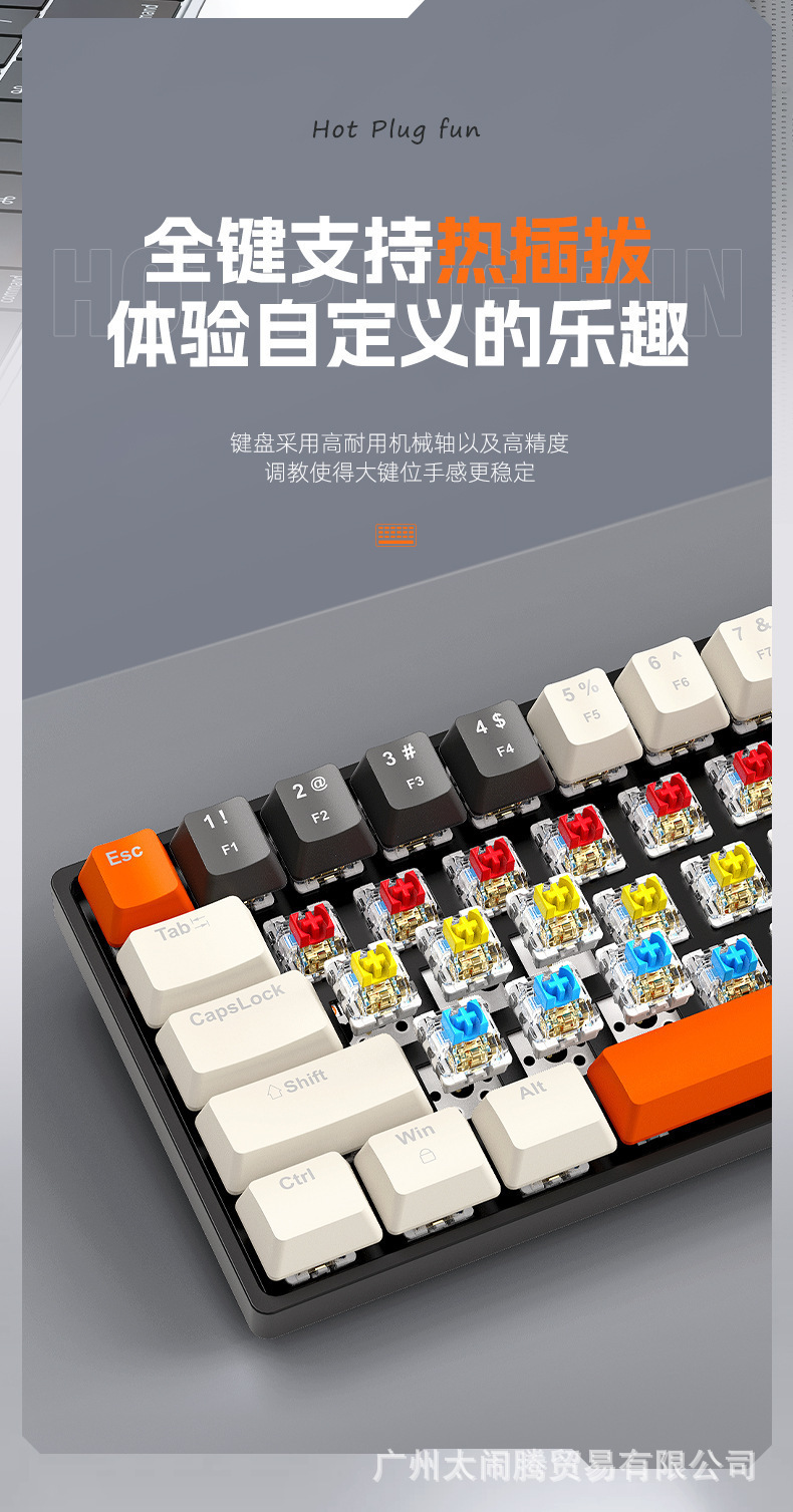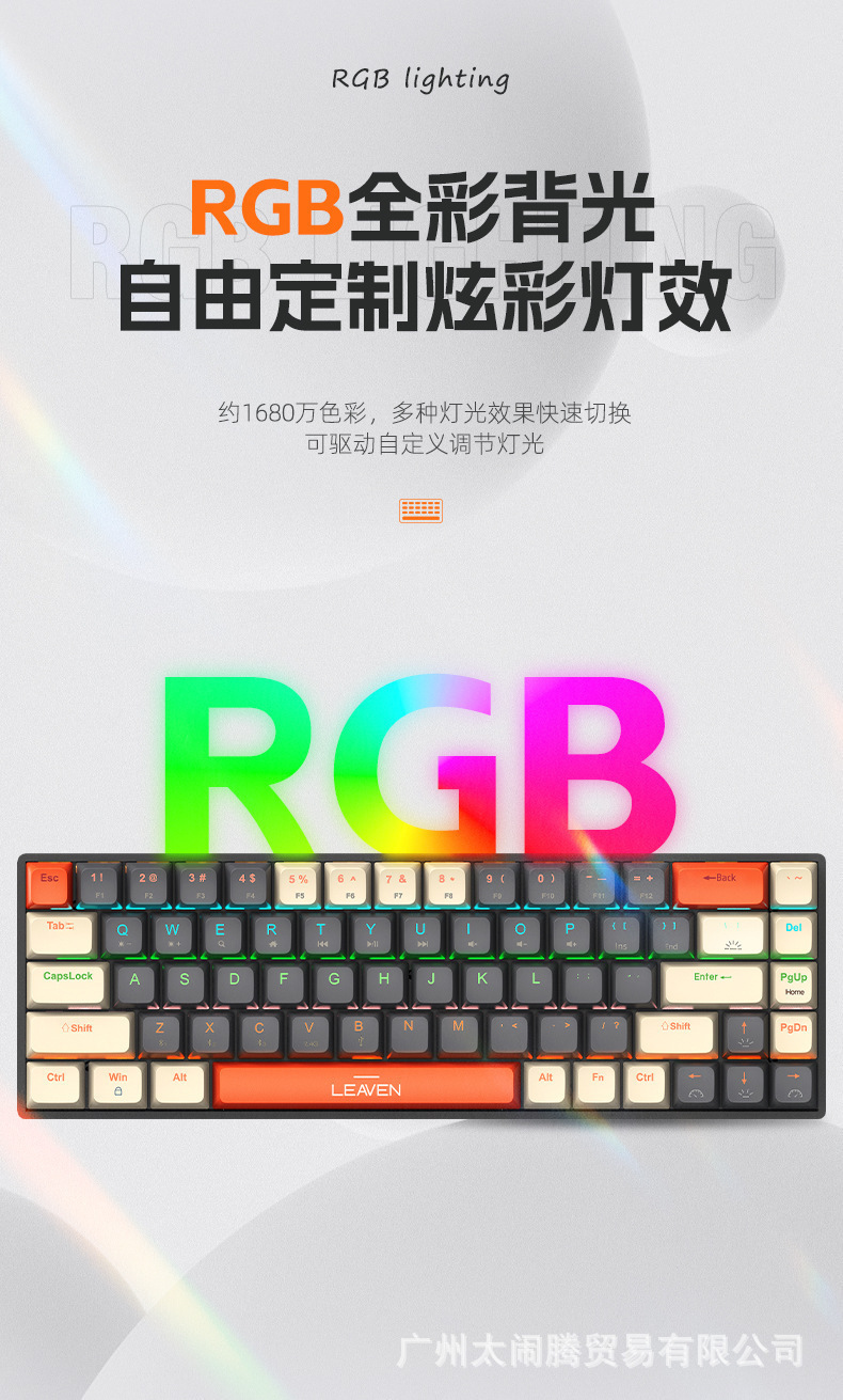 균열 H68 무선 3 모드 기계 키보드 RGB 핫 플러그 컴퓨터 사무실 게임 블루투스 키보드 머리카락 세대