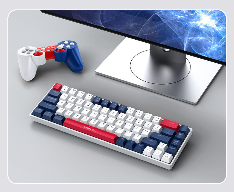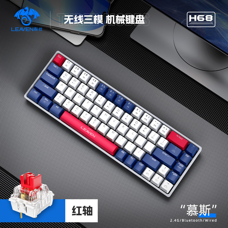 • H68 안개 블루 레드 축 업그레이드 (BT5.0 무선 2.4G 유선 유형-c 트리플 모드)